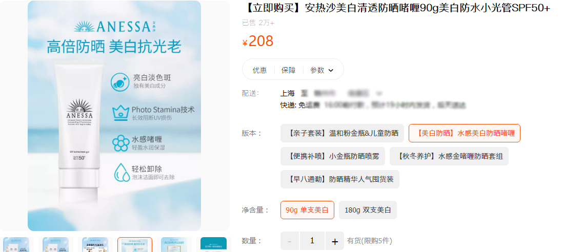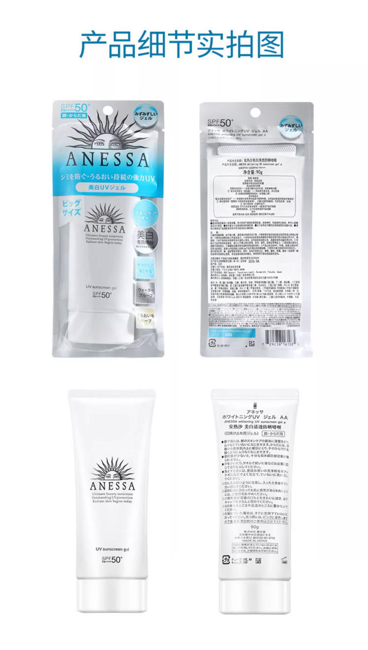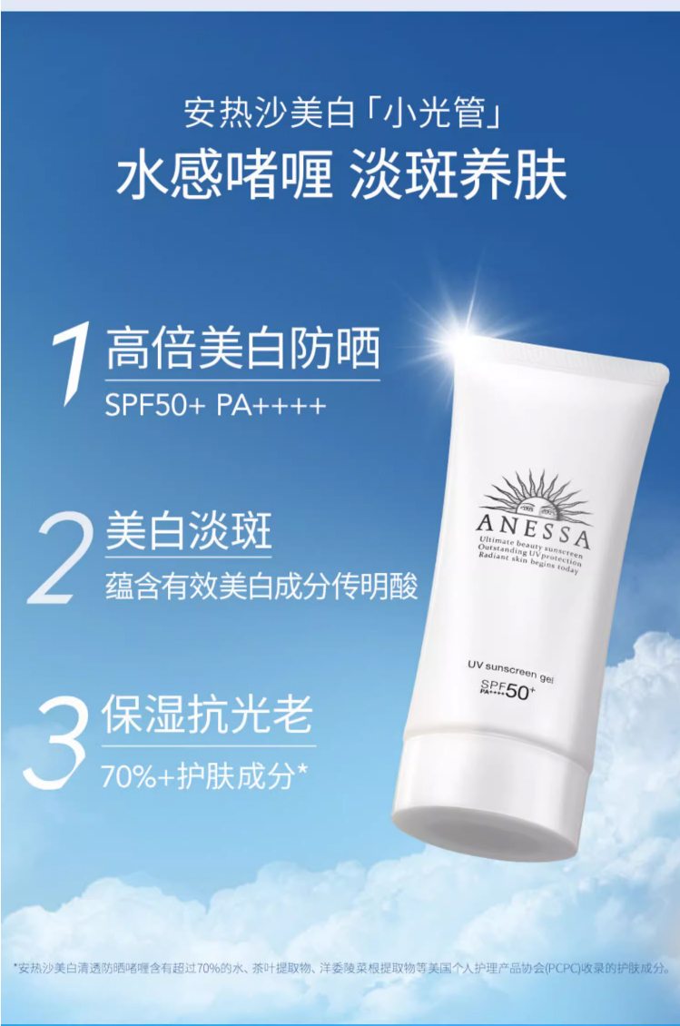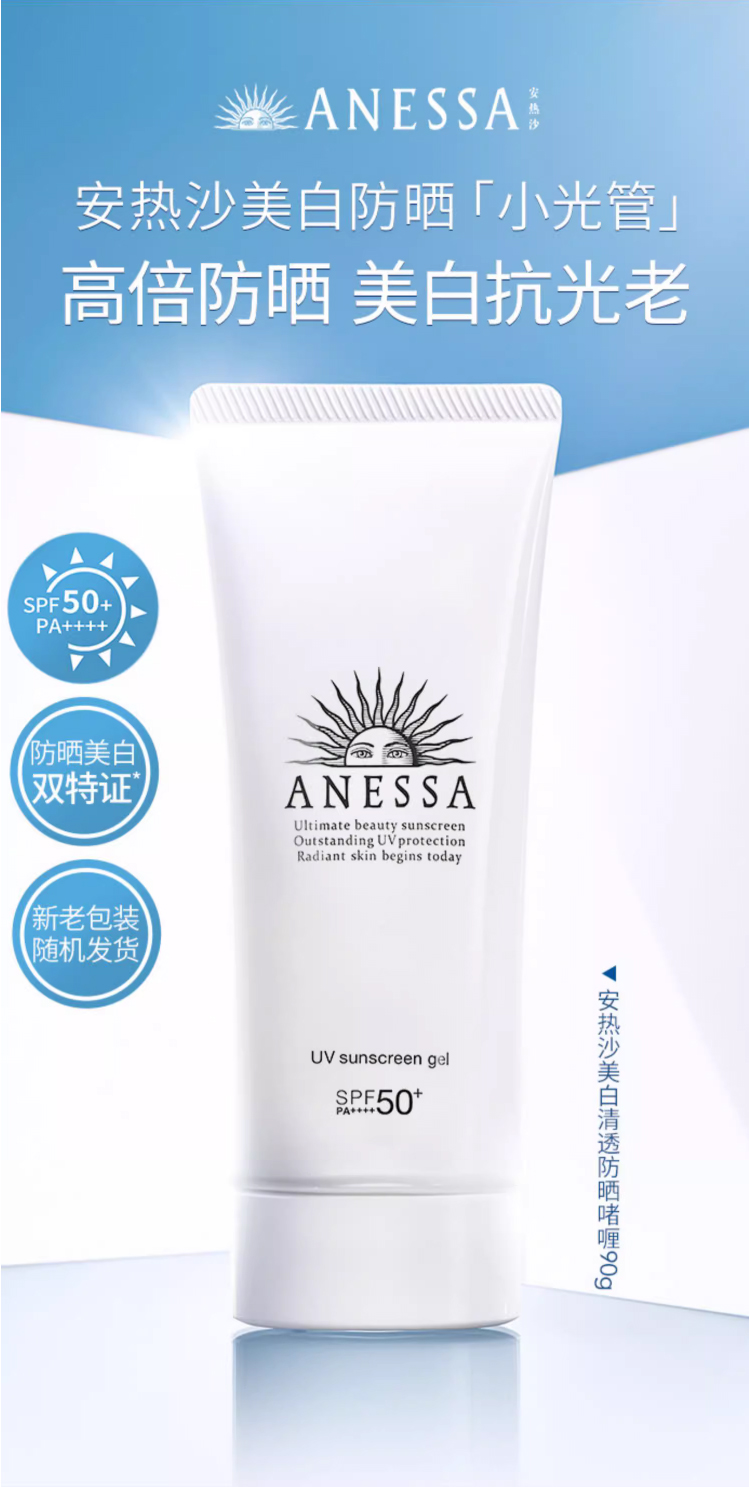 【品名】资生堂AENSSA安耐晒美白清透防晒啫喱15g