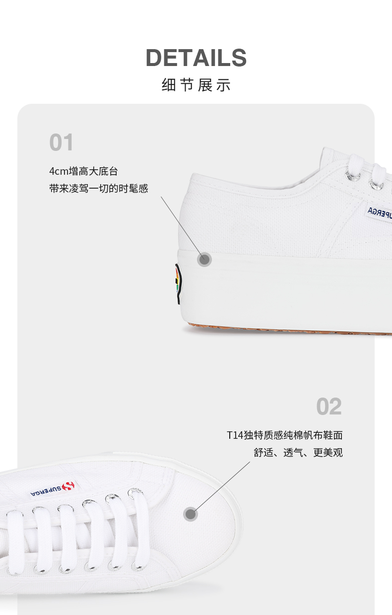 SUPERGA 22新款小白鞋 女松糕厚底百搭休闲鞋板鞋秋季低帮帆布鞋