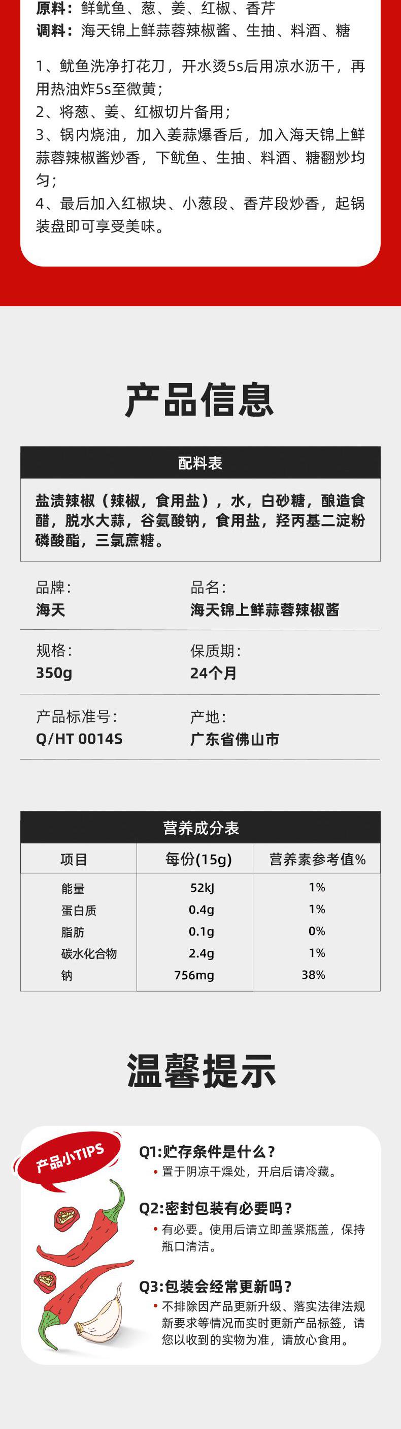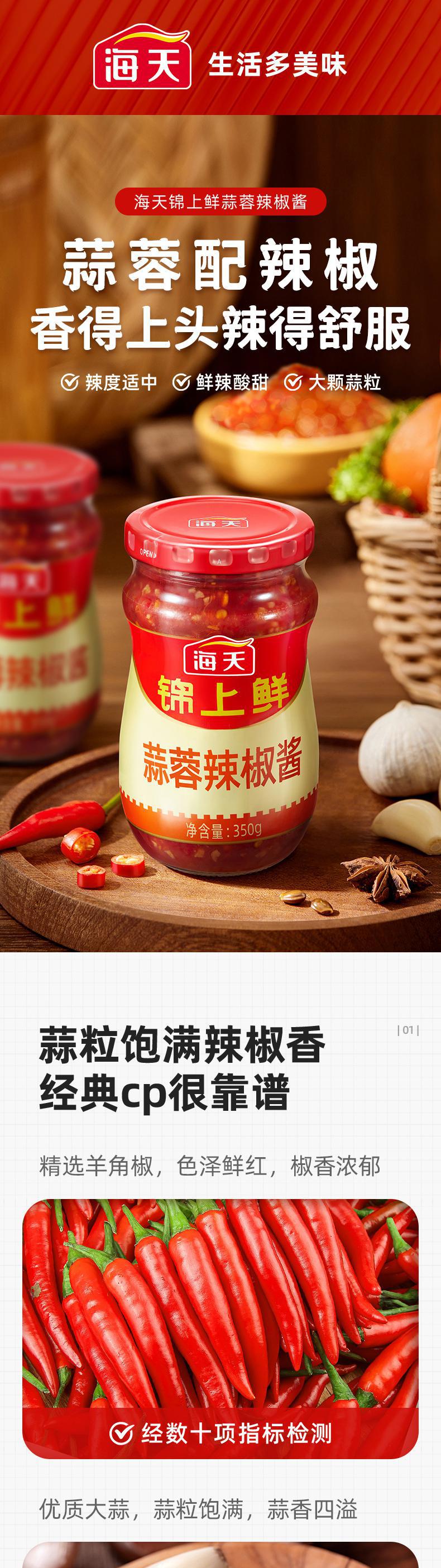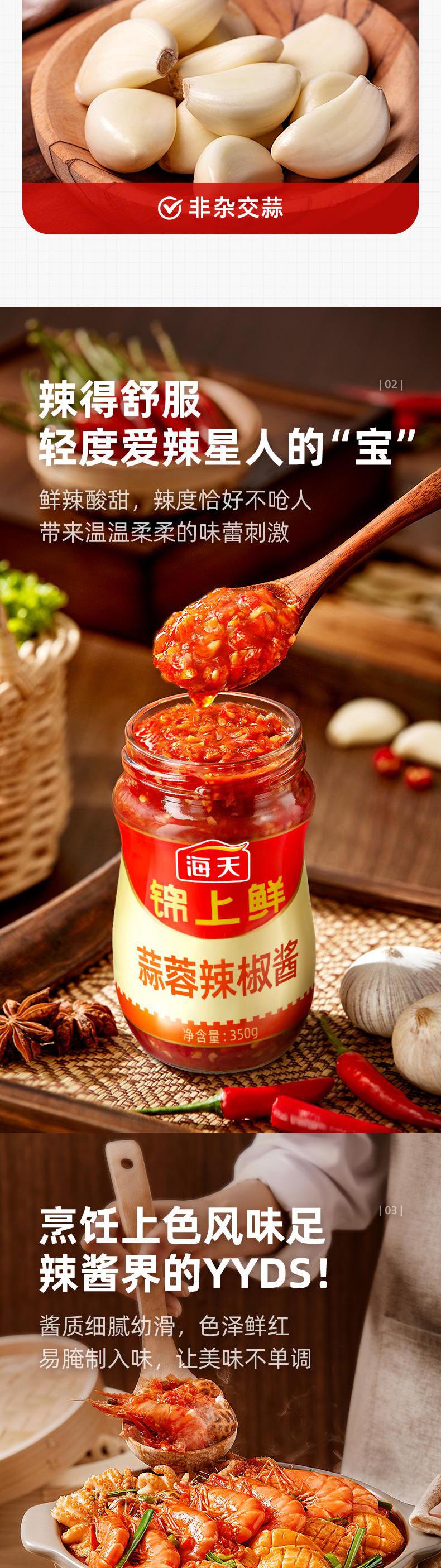 【自营】海天 锦上鲜蒜蓉辣椒酱350g*1罐新鲜健康美味 KJDF-20230314-08