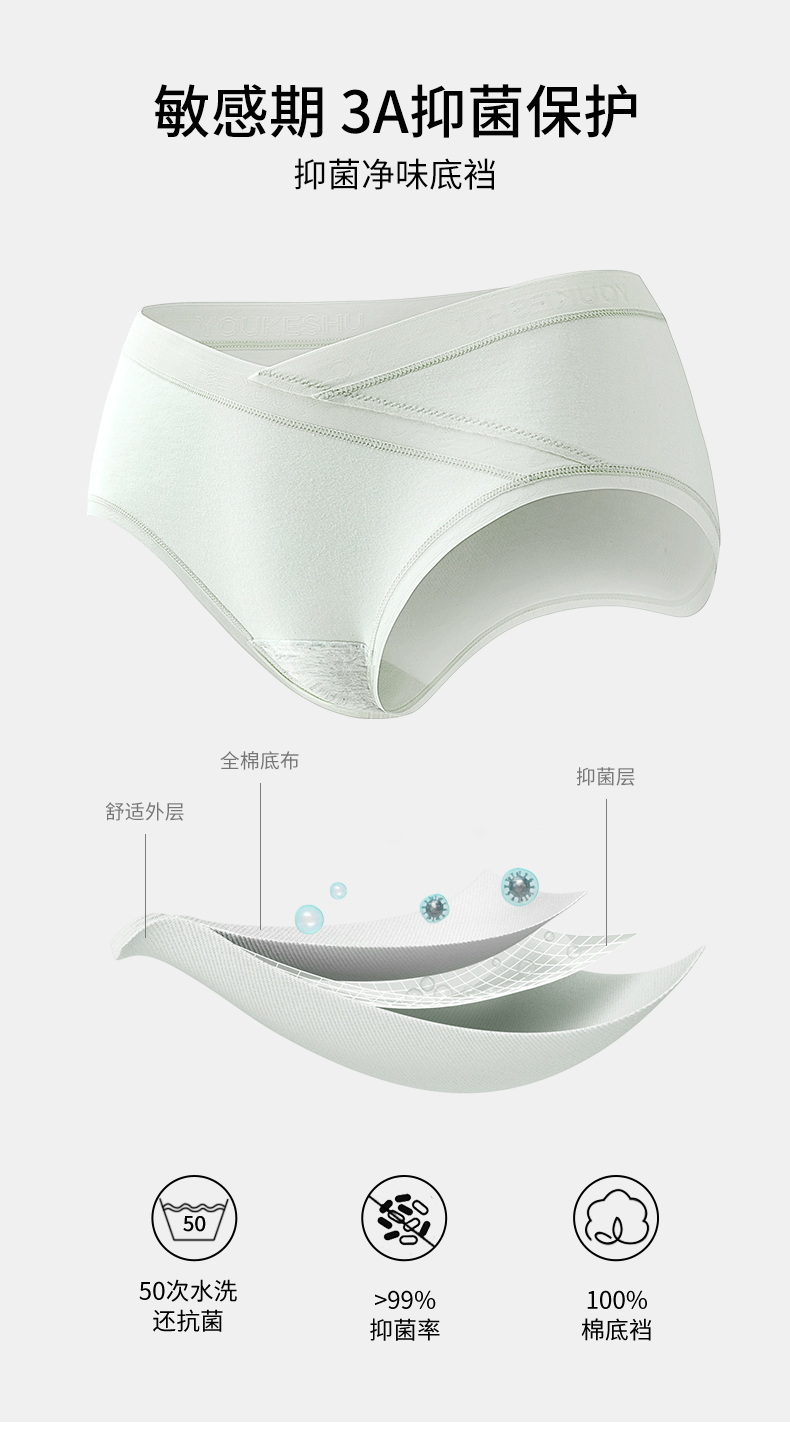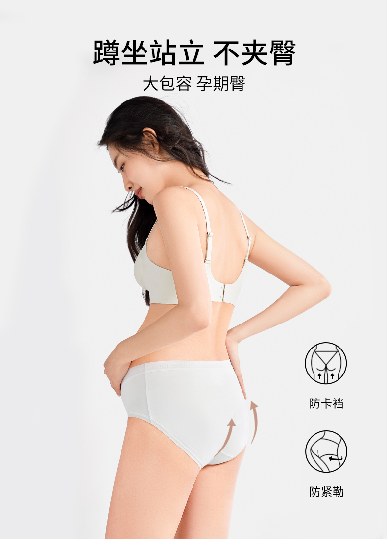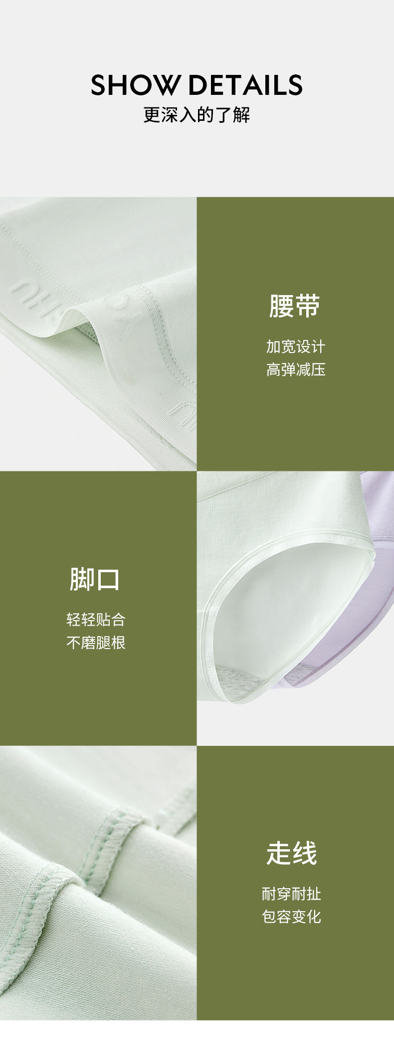 【新品上新】有棵树10A级抗菌纯棉全棉裆无痕中高腰运动健身女士内裤3条装-S047C