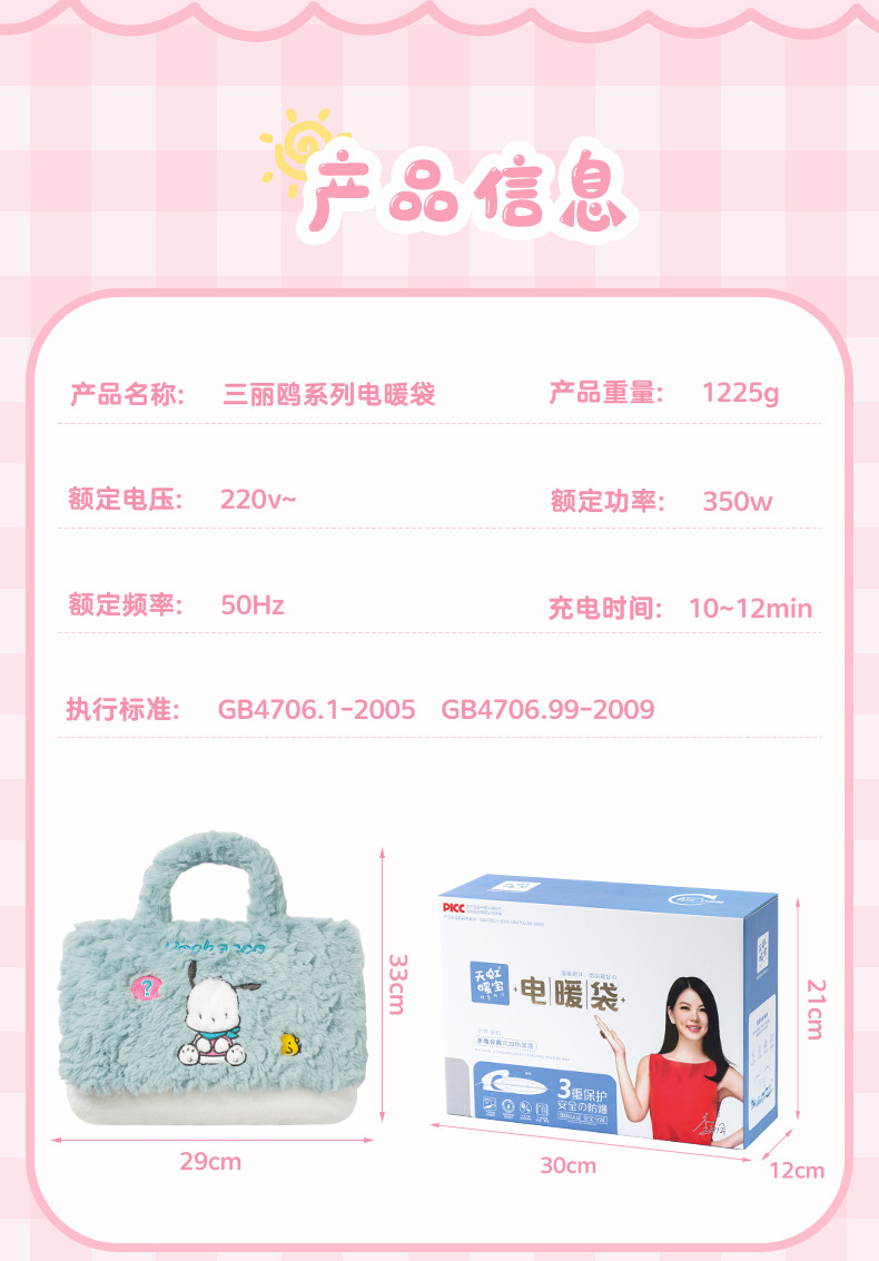三丽鸥联名款❗️电热水袋】可当包用 自动断电 正版美乐蒂库洛米国标电暖宝防爆暖手宝新款