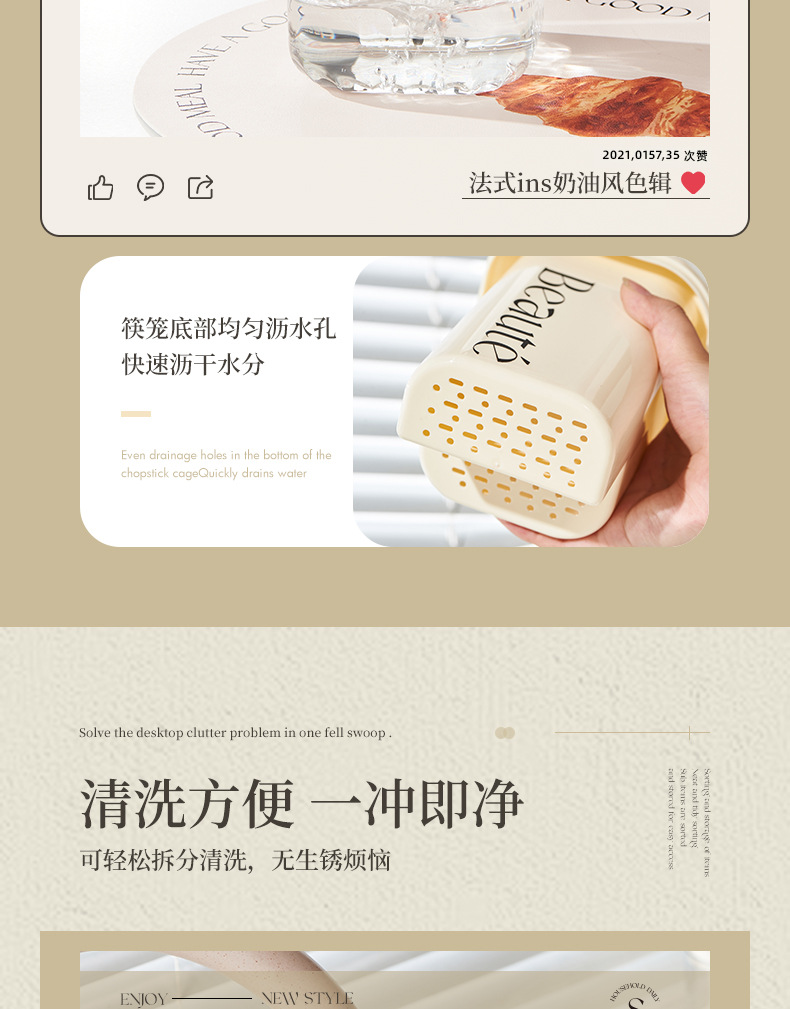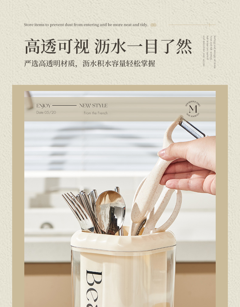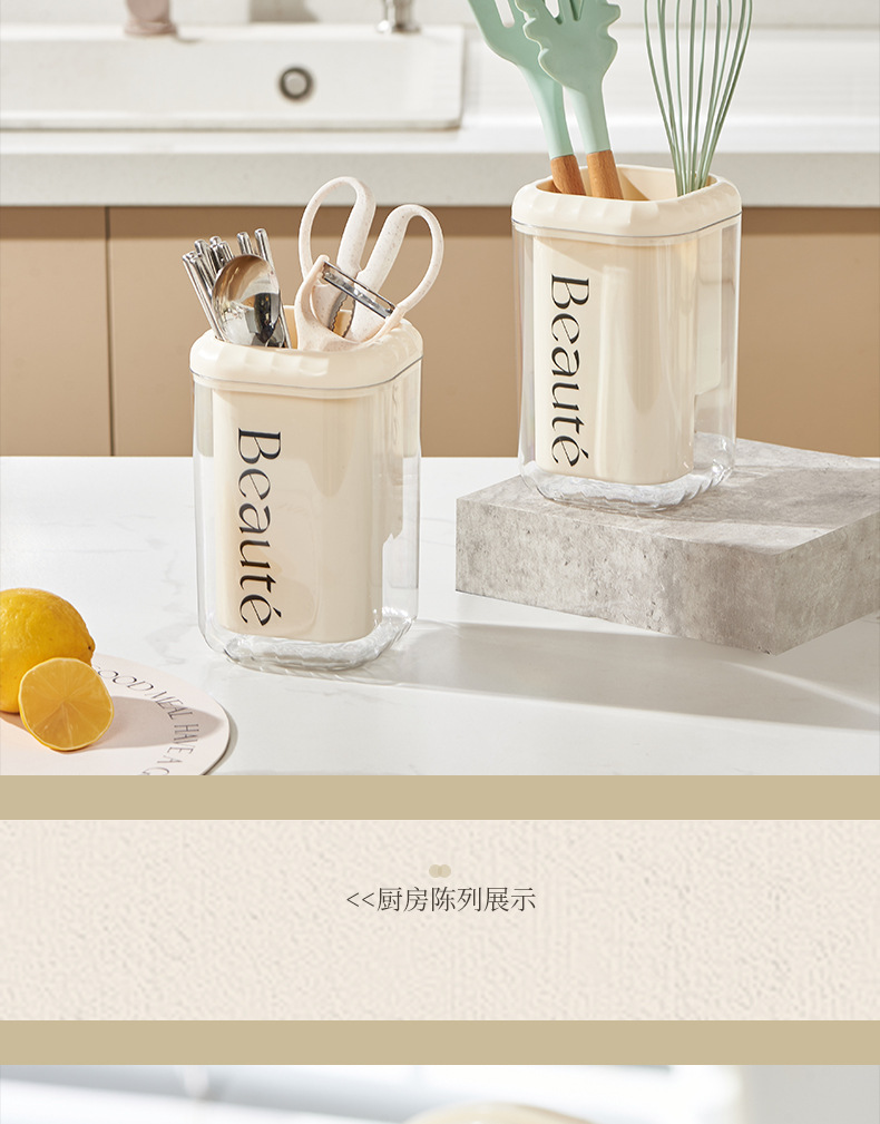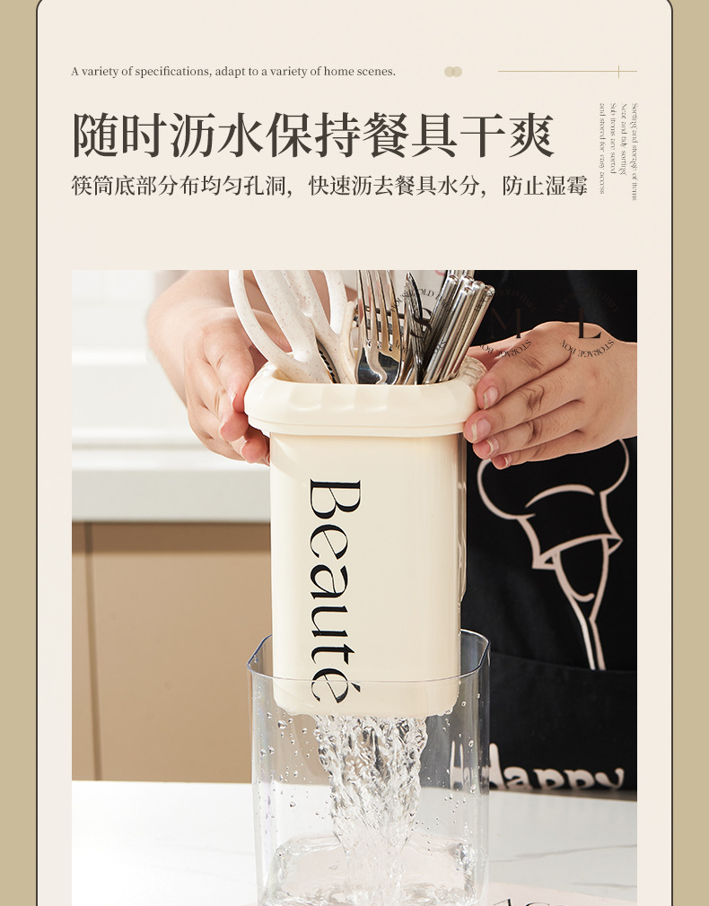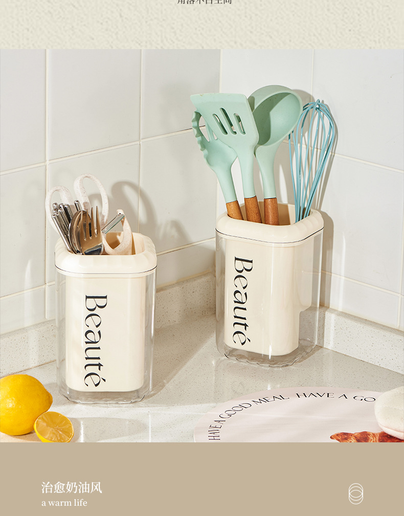 「法式奶油风」奶油风筷子筒厨房用品好物沥水筷笼筷子桶刀叉勺收纳筷子收纳整理盒