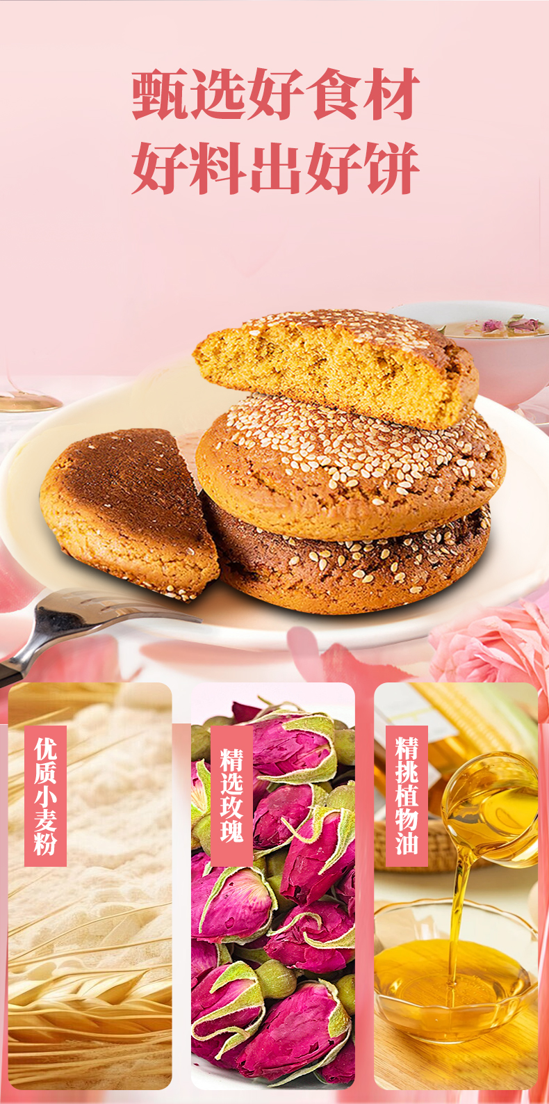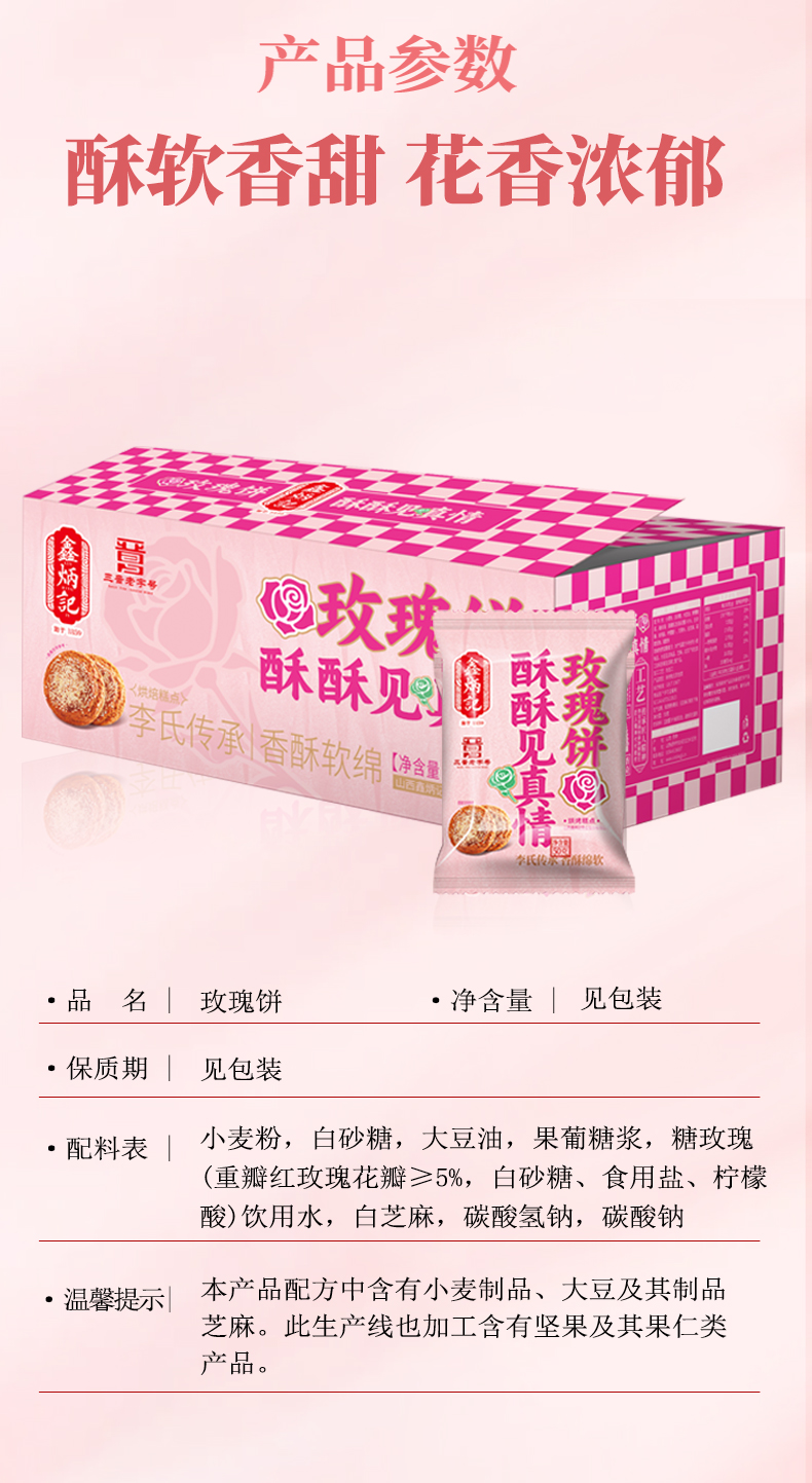 鑫炳记玫瑰饼1500g整箱山西特产糕点美食