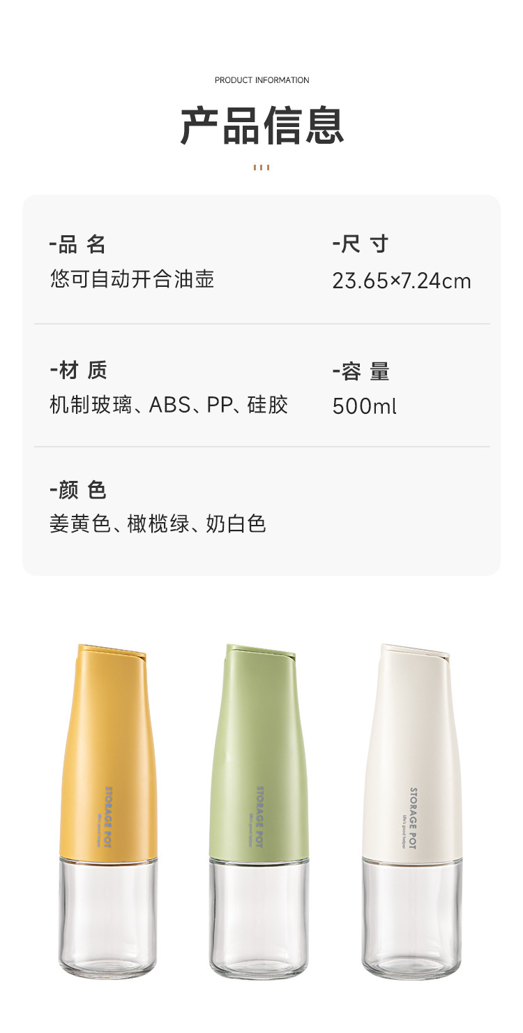 【自动玻璃油壶】厨房家用重力开合油壶 500ML·sp