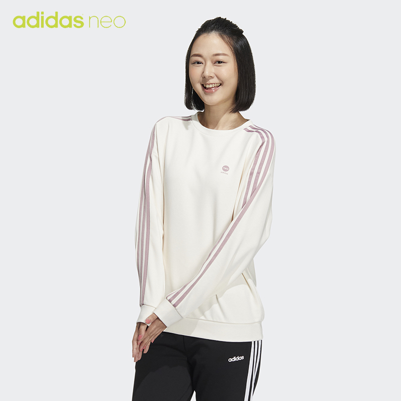 Adidas阿迪达斯NEO女卫衣2022春季新款圆领休闲运动套头衫HM7416