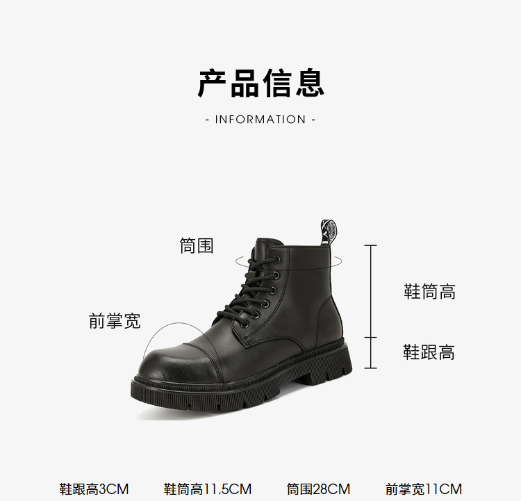 西遇马丁靴男冬季新款复古潮男英伦风短靴厚底增高工装靴22125656