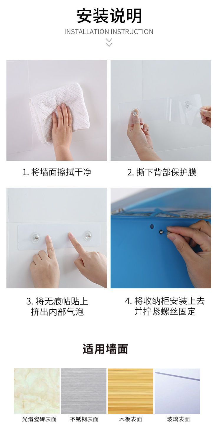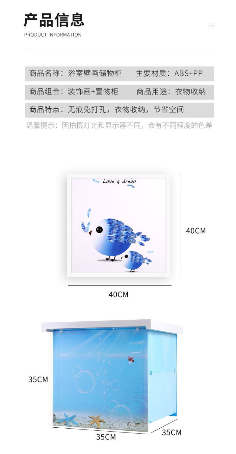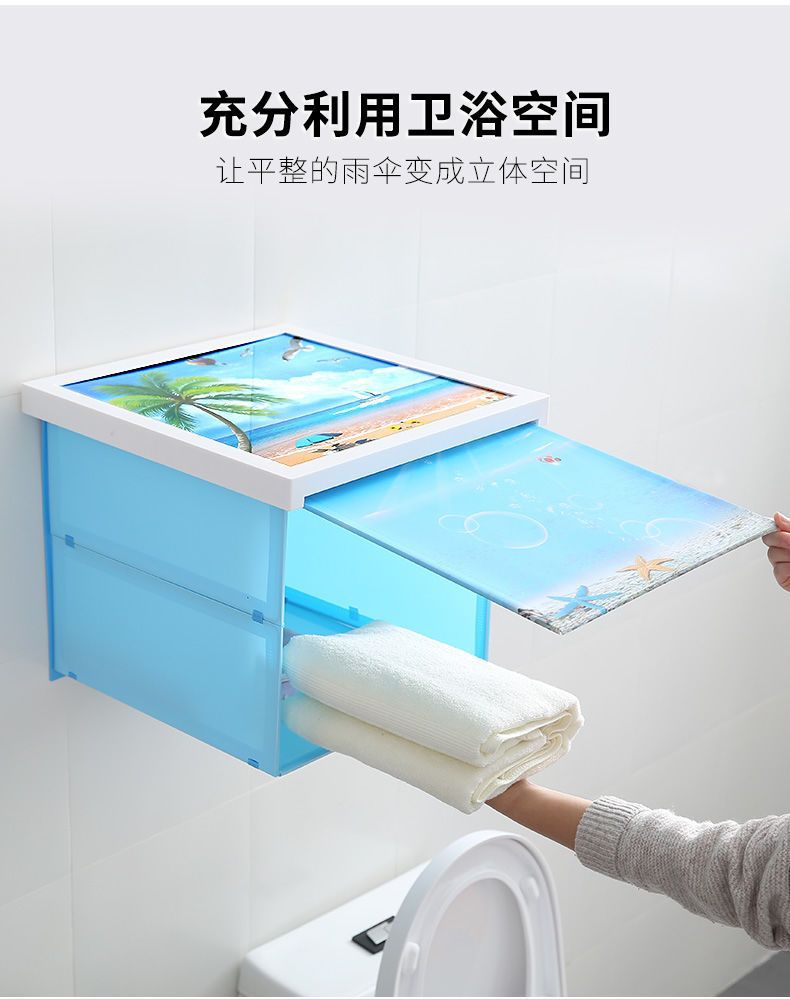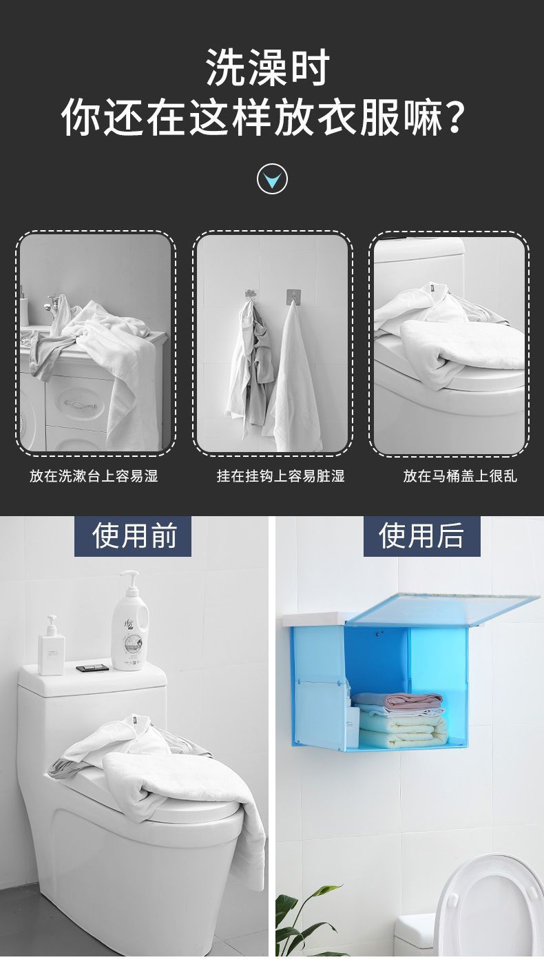 【防水防潮!多功能速开储物收纳箱!】浴室折叠收纳柜置物架 卫生间放衣服储物柜 厕所壁画 免打孔壁挂式超便捷