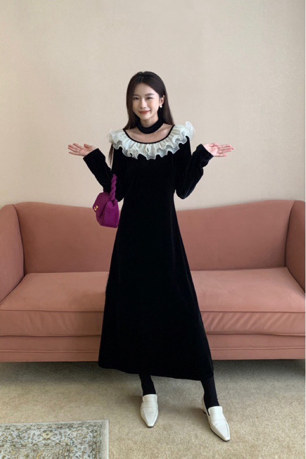 ELLA JADE 丝绒蕾丝拼接choke连衣裙 19704