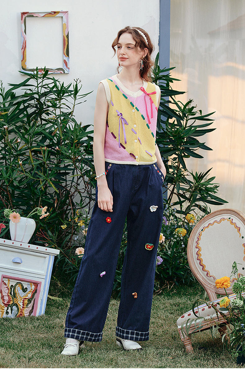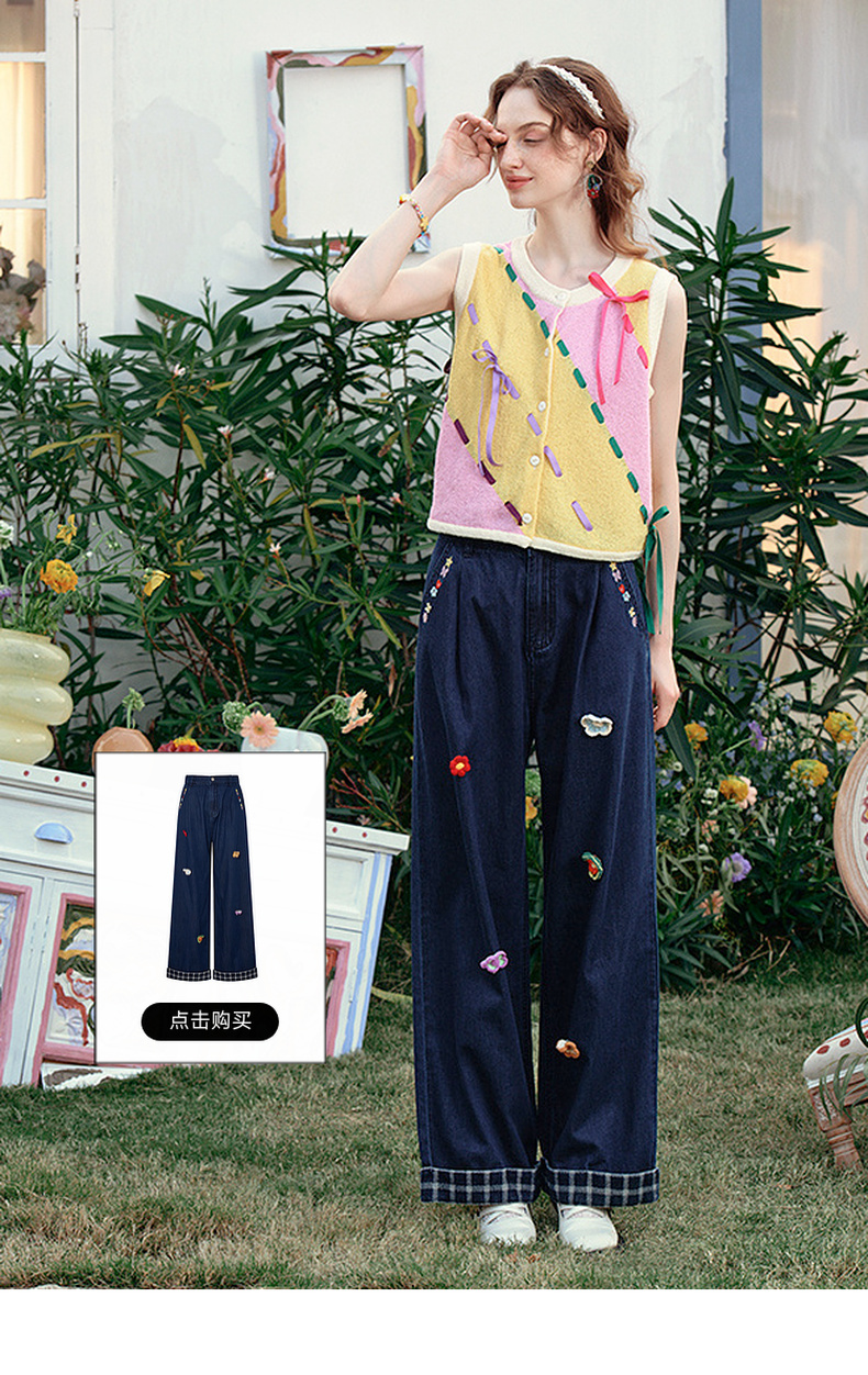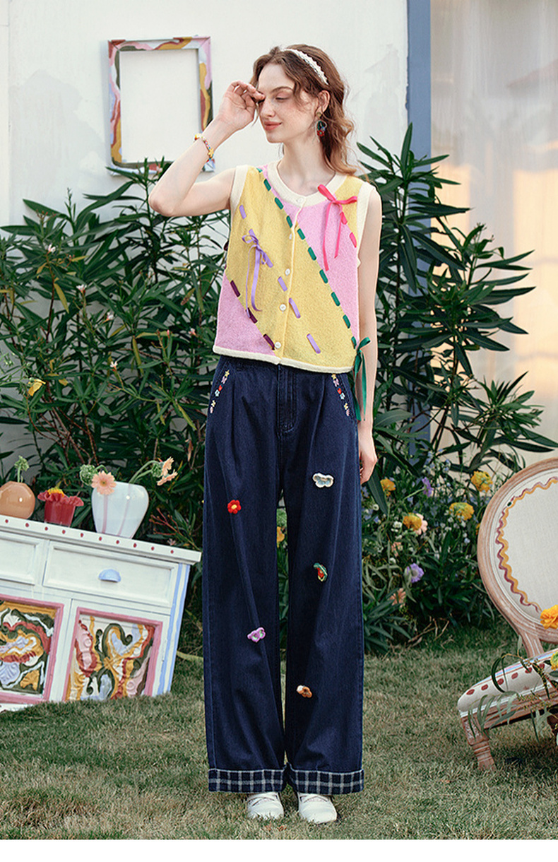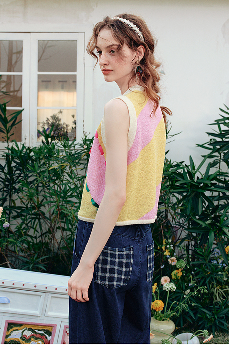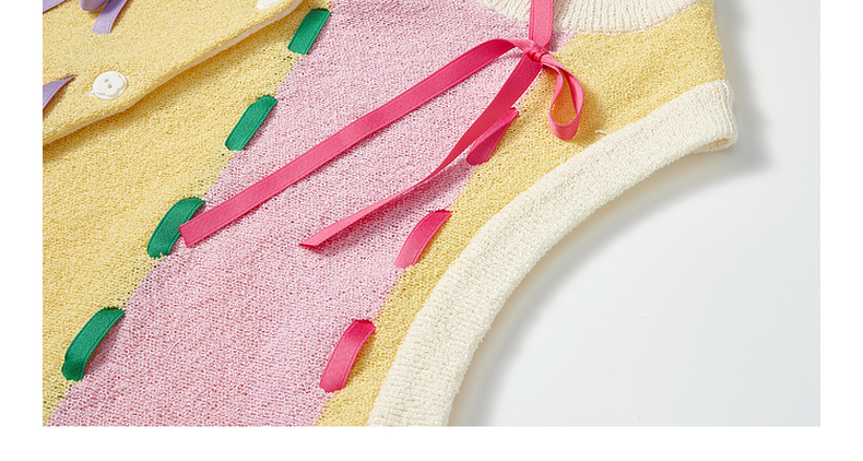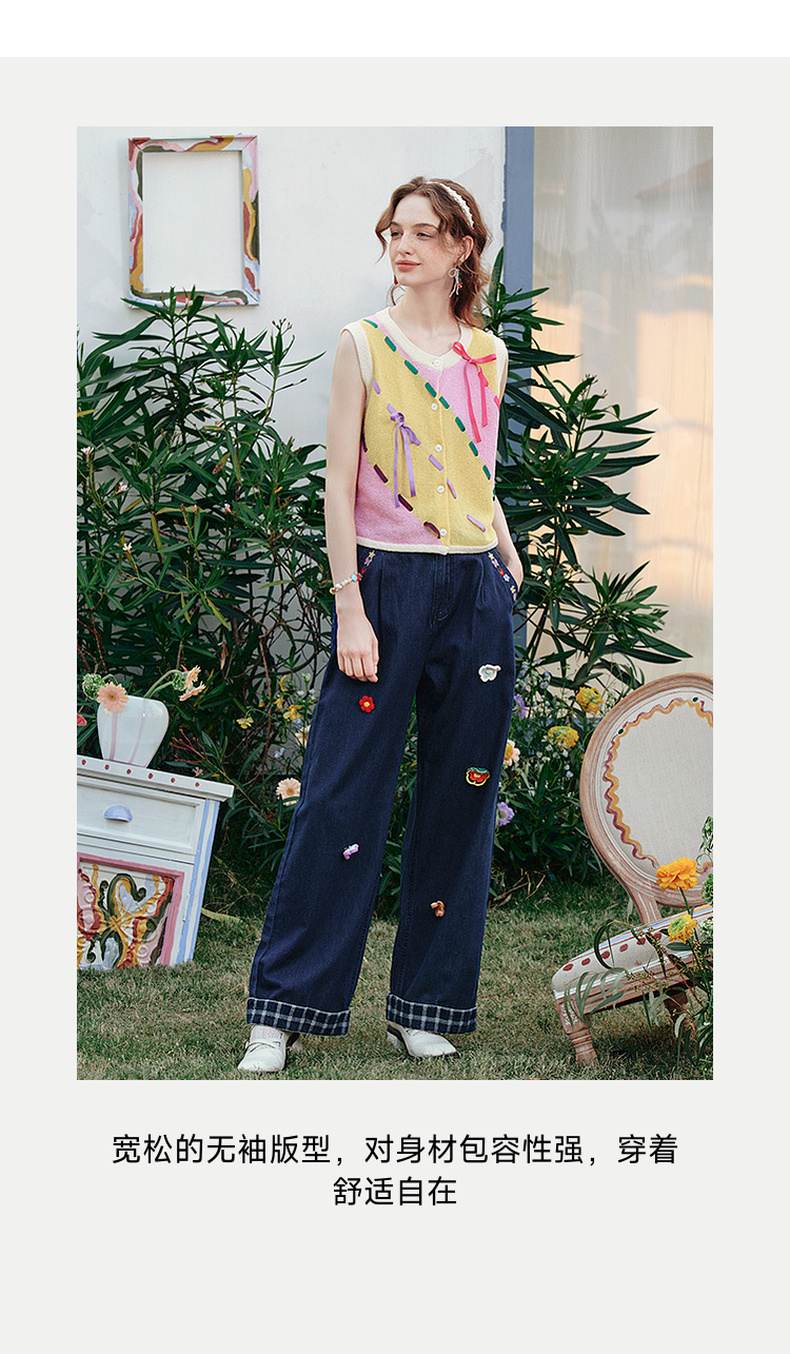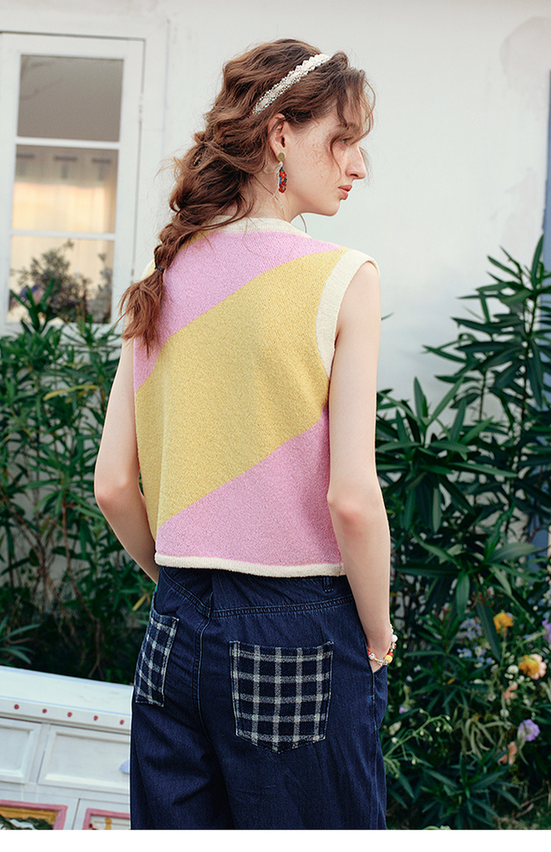 两三事 蝶翼梦境 2025夏季新款抽绳绑带拼色无袖针织开衫女宽松