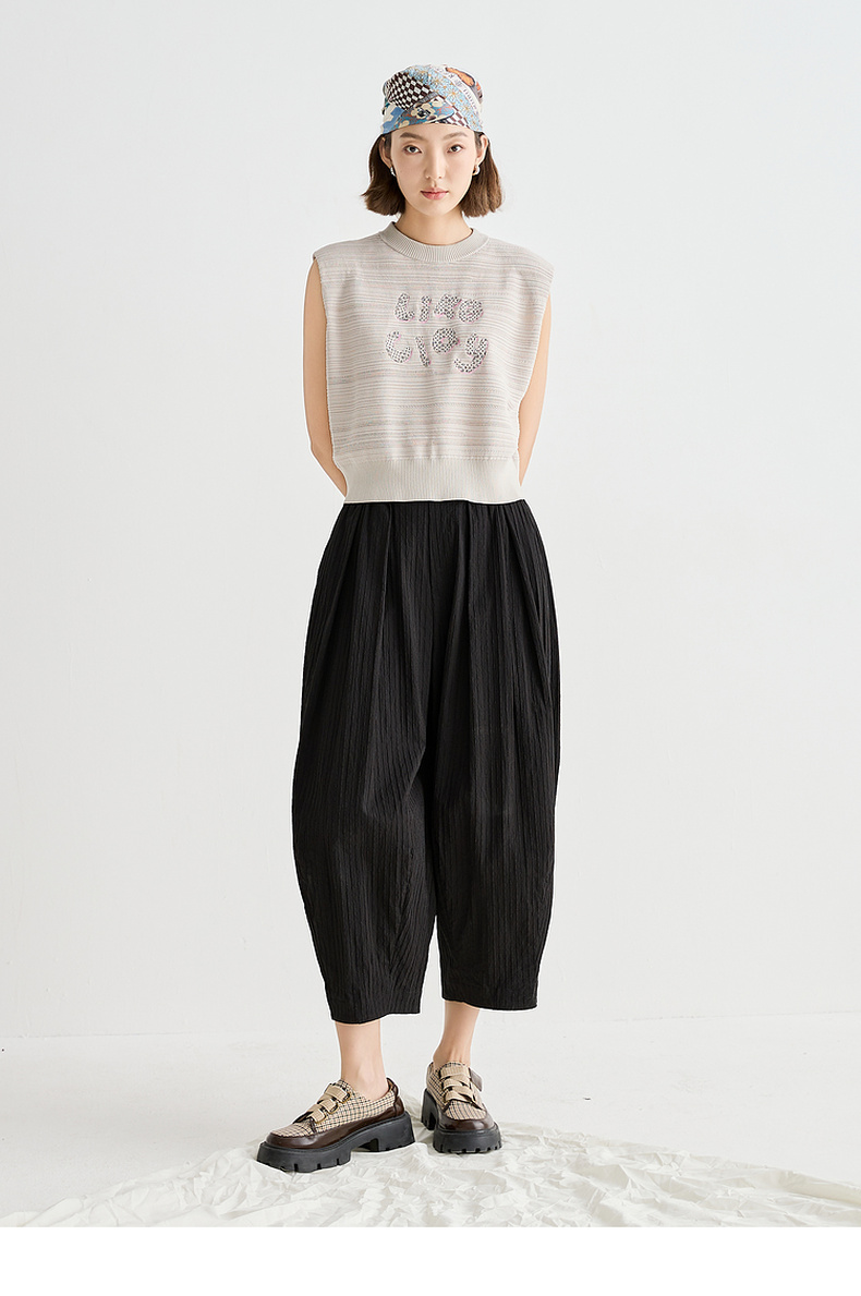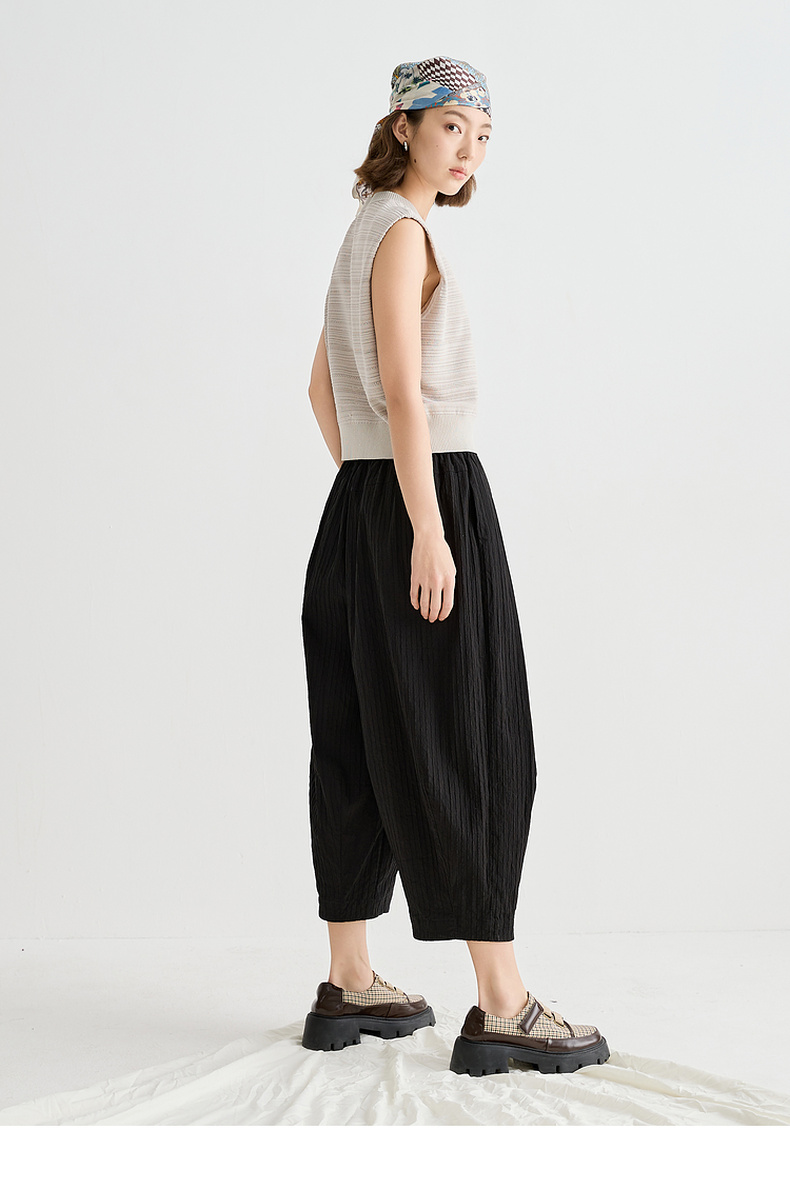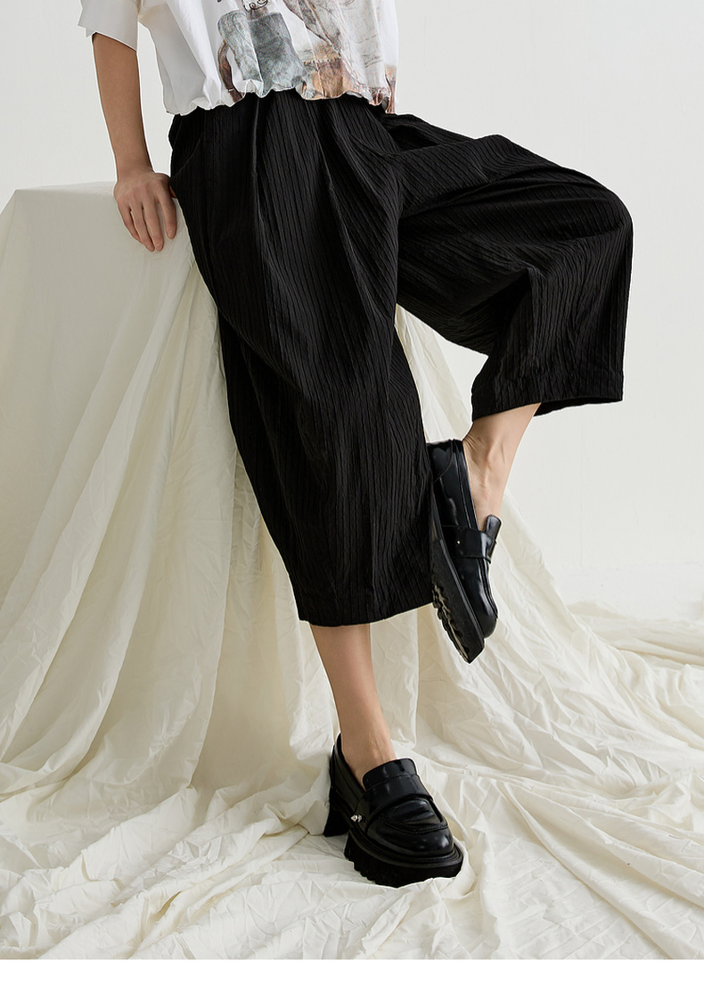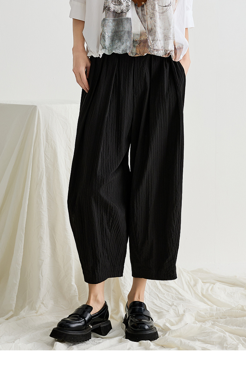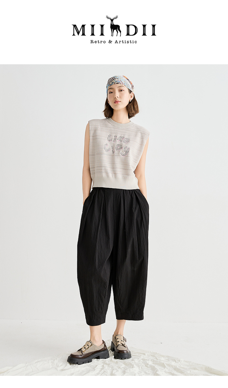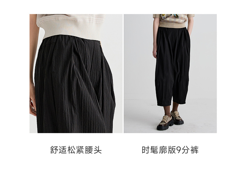 谜底休闲裤女2025夏季新品通勤造型感大廓形哈伦九分裤252MK0680
