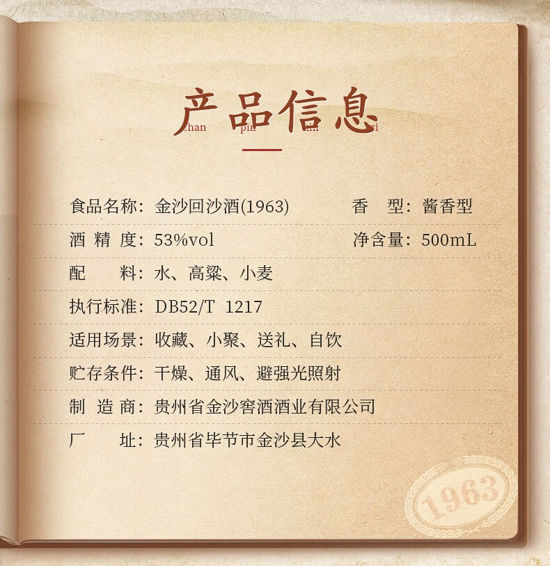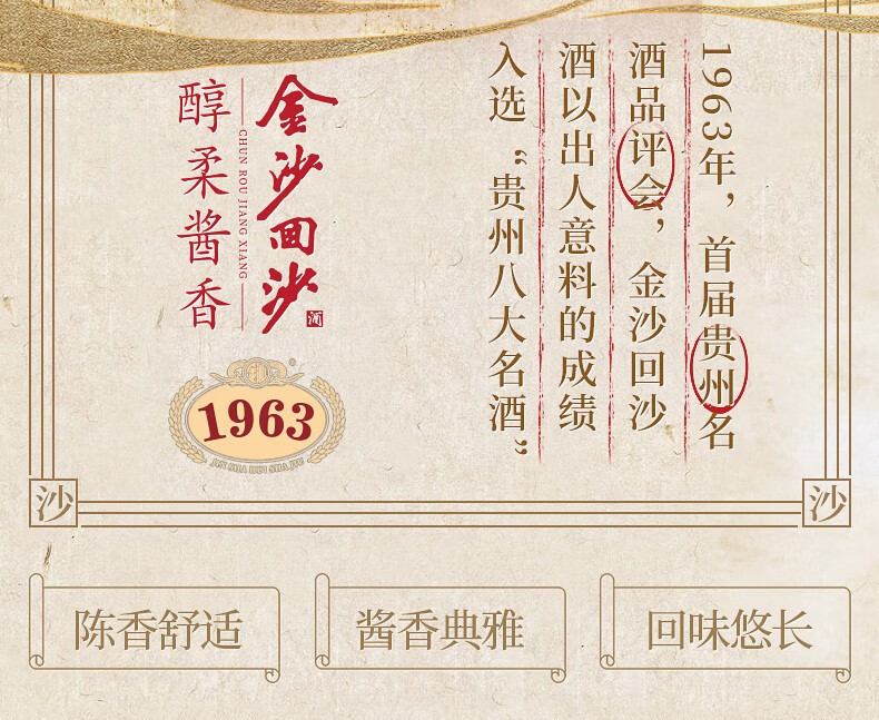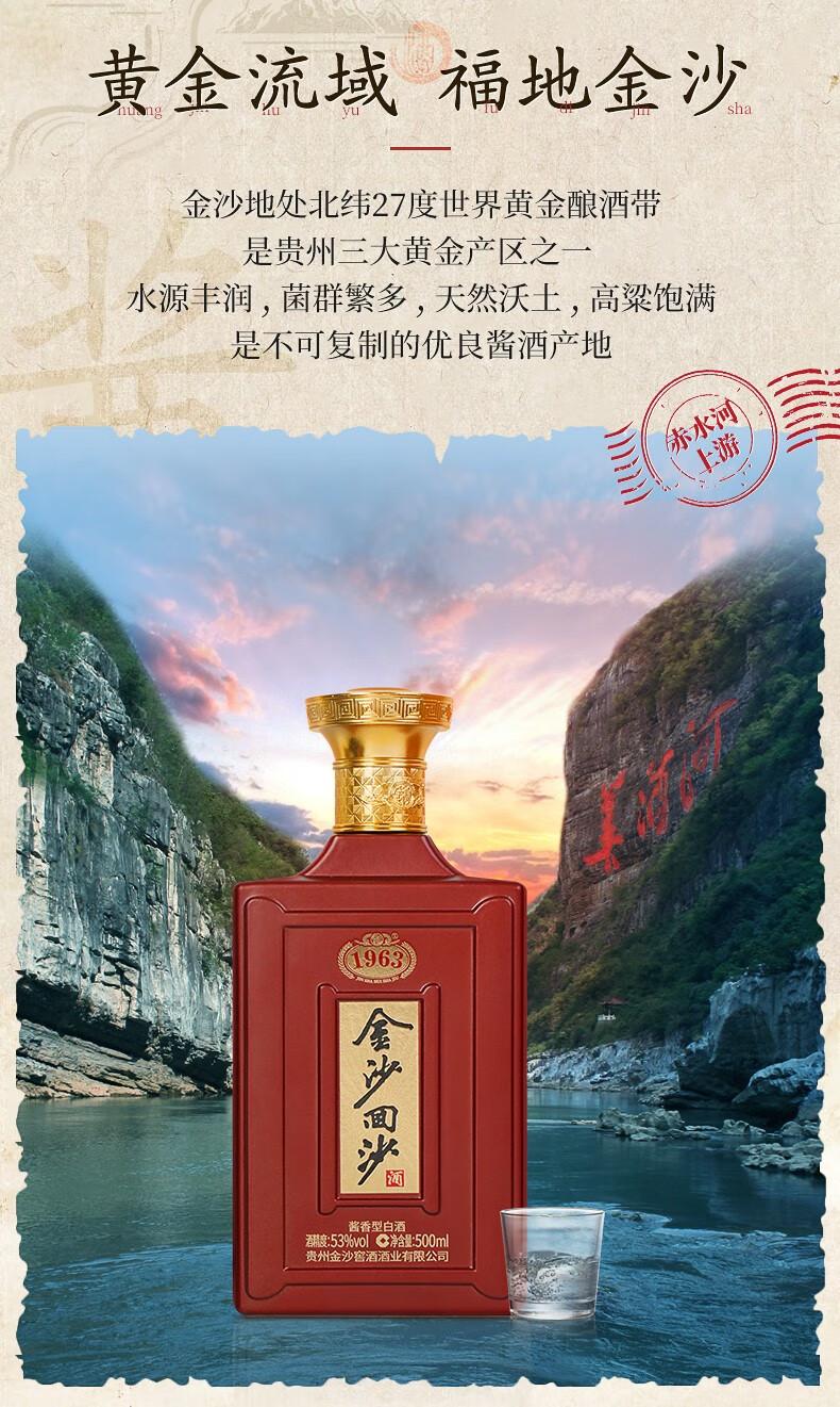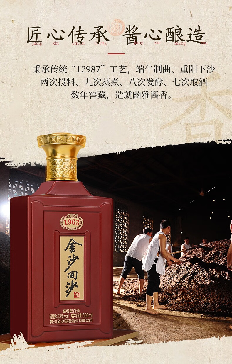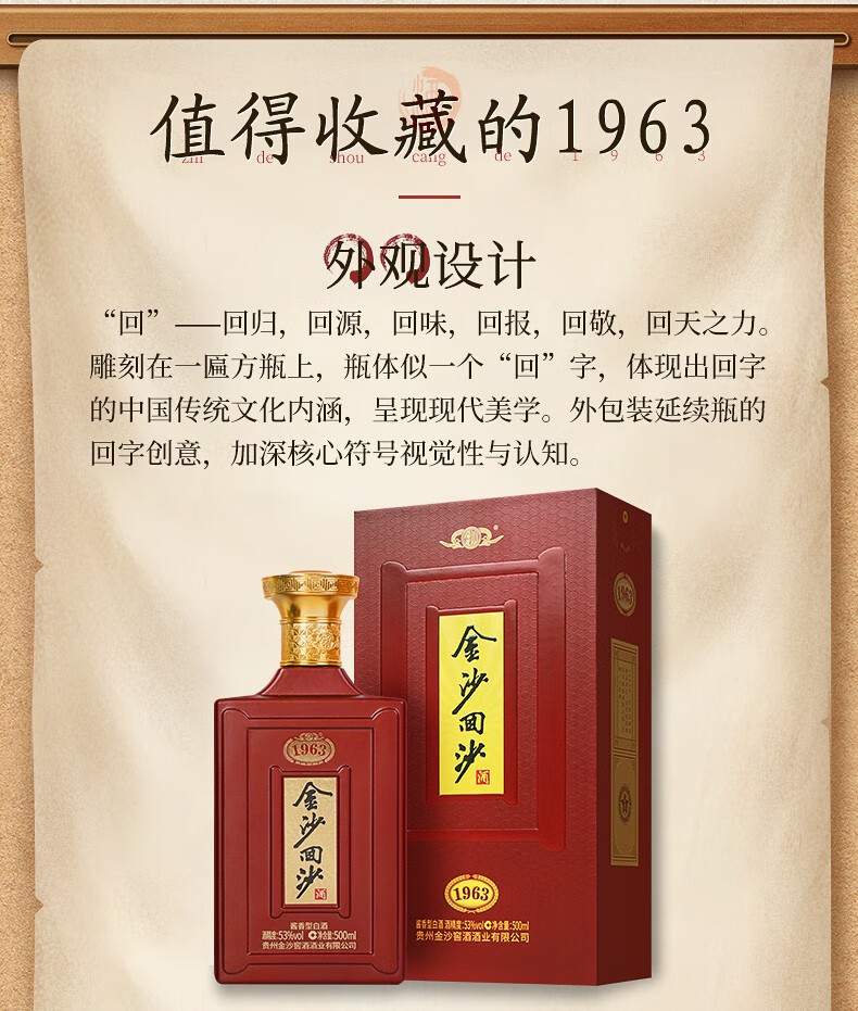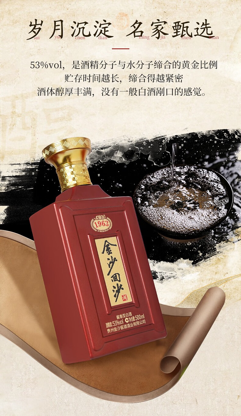 金沙回沙酒金沙纪年酒1963 53度酱香型白酒 整箱500ml*6瓶包邮