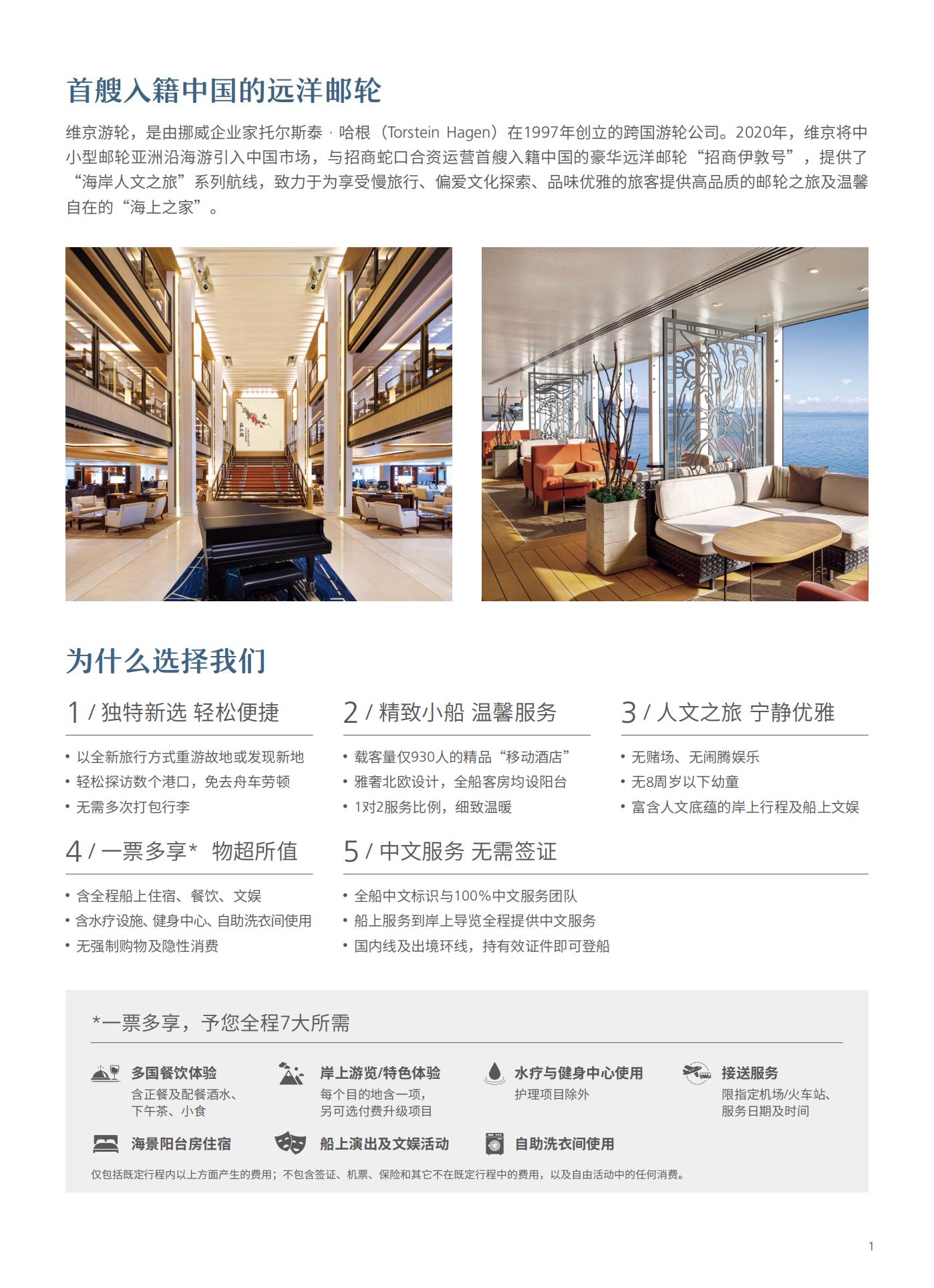 *船票仅包括既定行程内产生的费用; 不包含签证、机票、保险和其它不在既定行程中的费用, 以及自由活动中的任何消费。