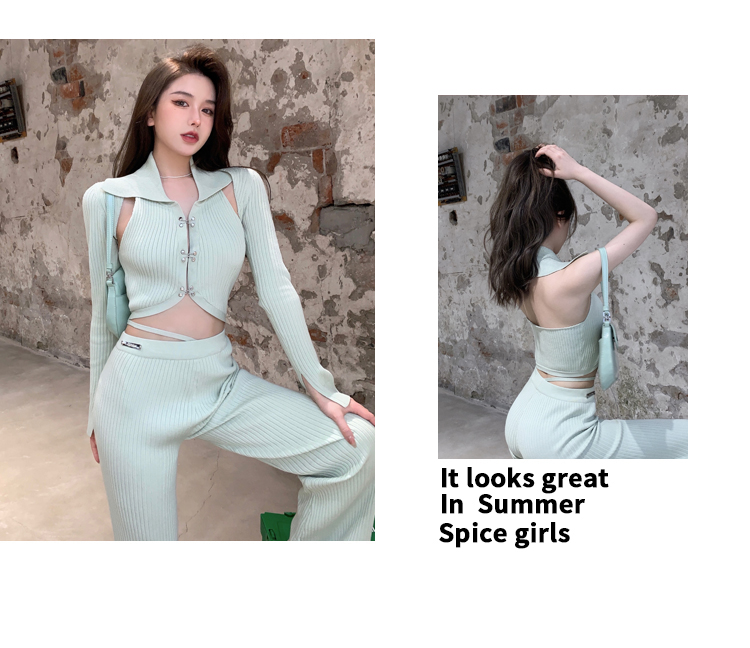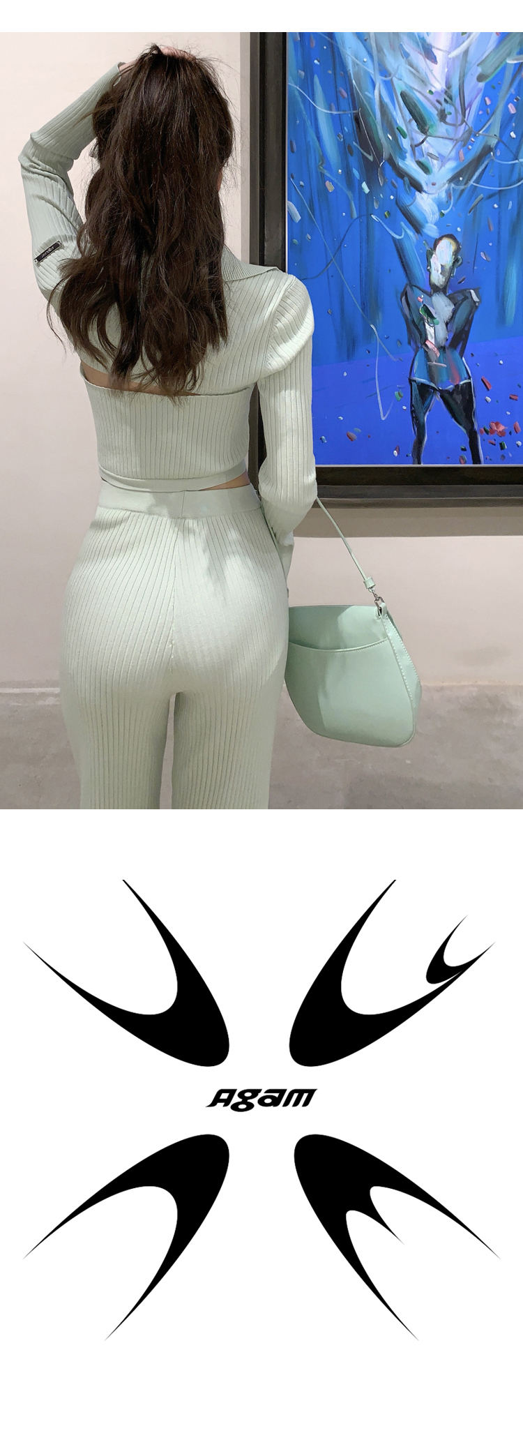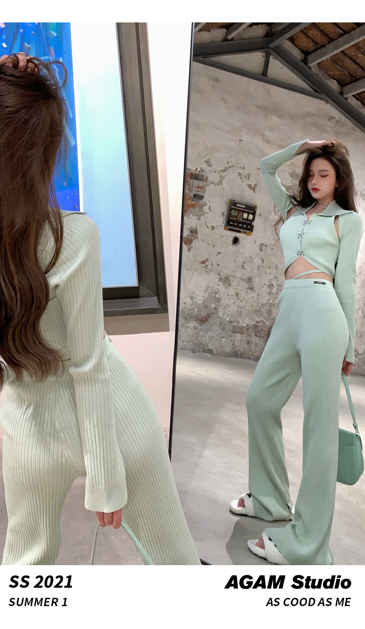 AGAMSTUDIO原创 小众设计高级感针织翻领背心+开衫短款上衣两件套