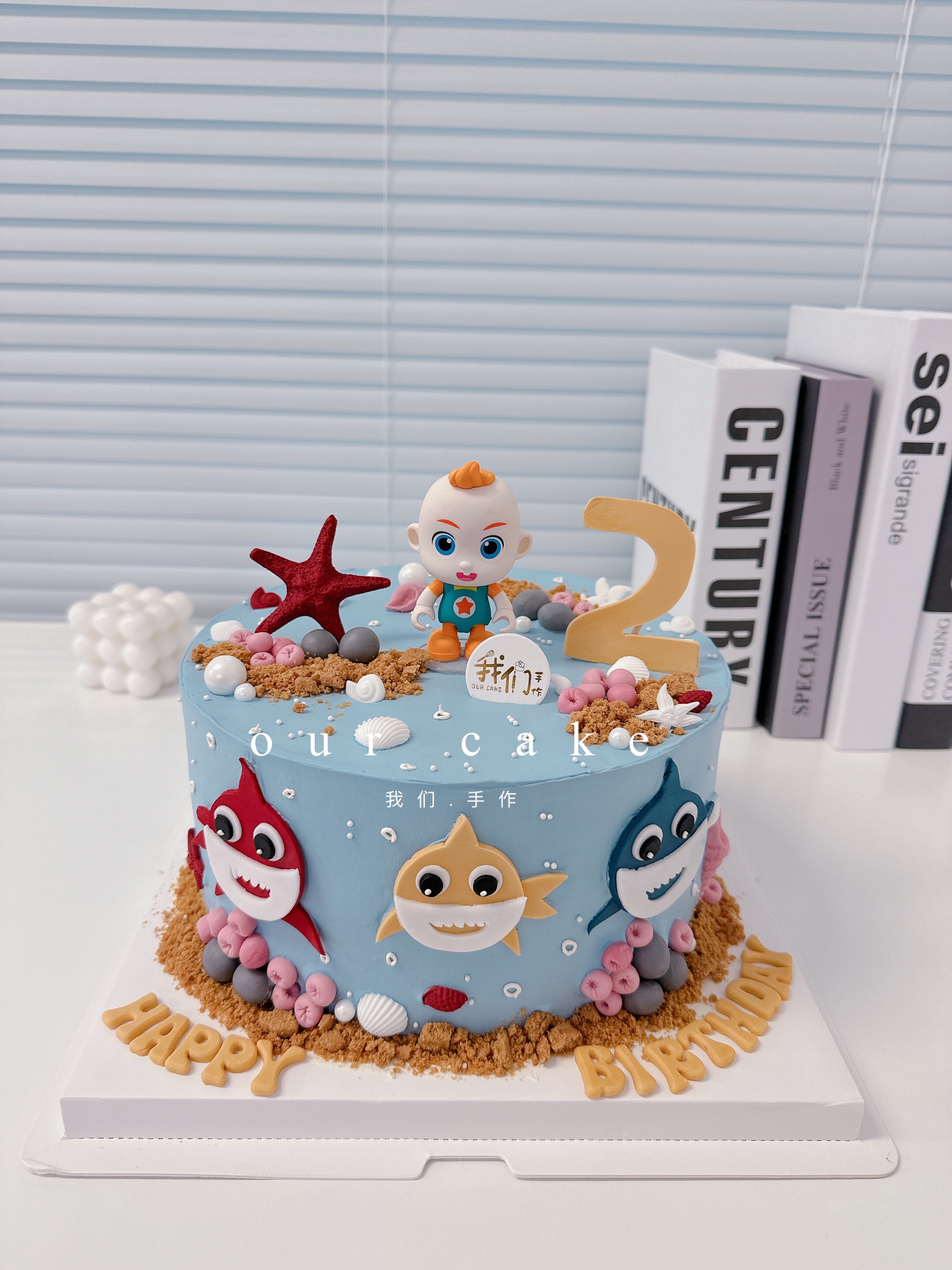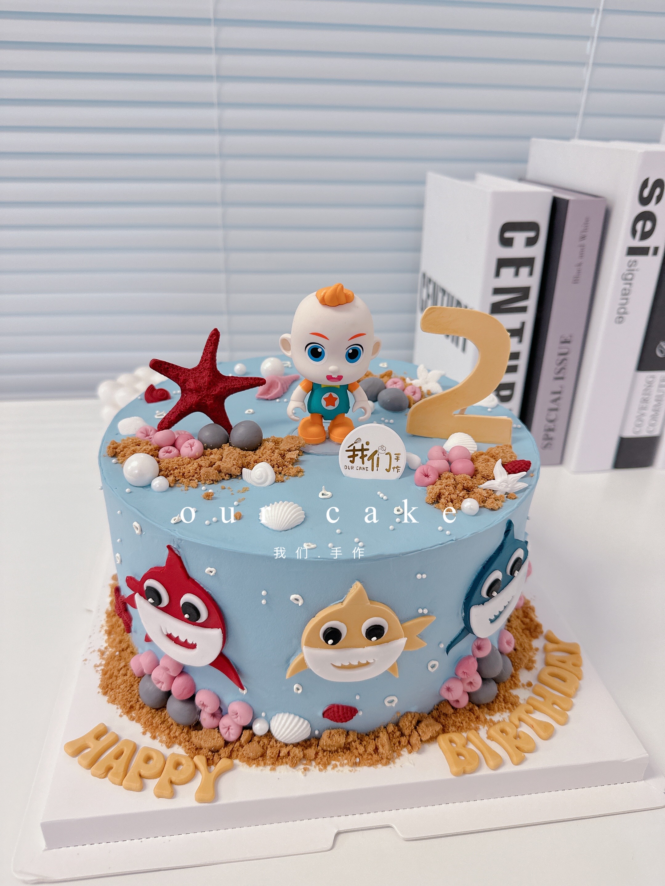 鲨鱼宝宝与jojo卡通可爱蛋糕(备注需要改的数字)-低糖处理无添加
