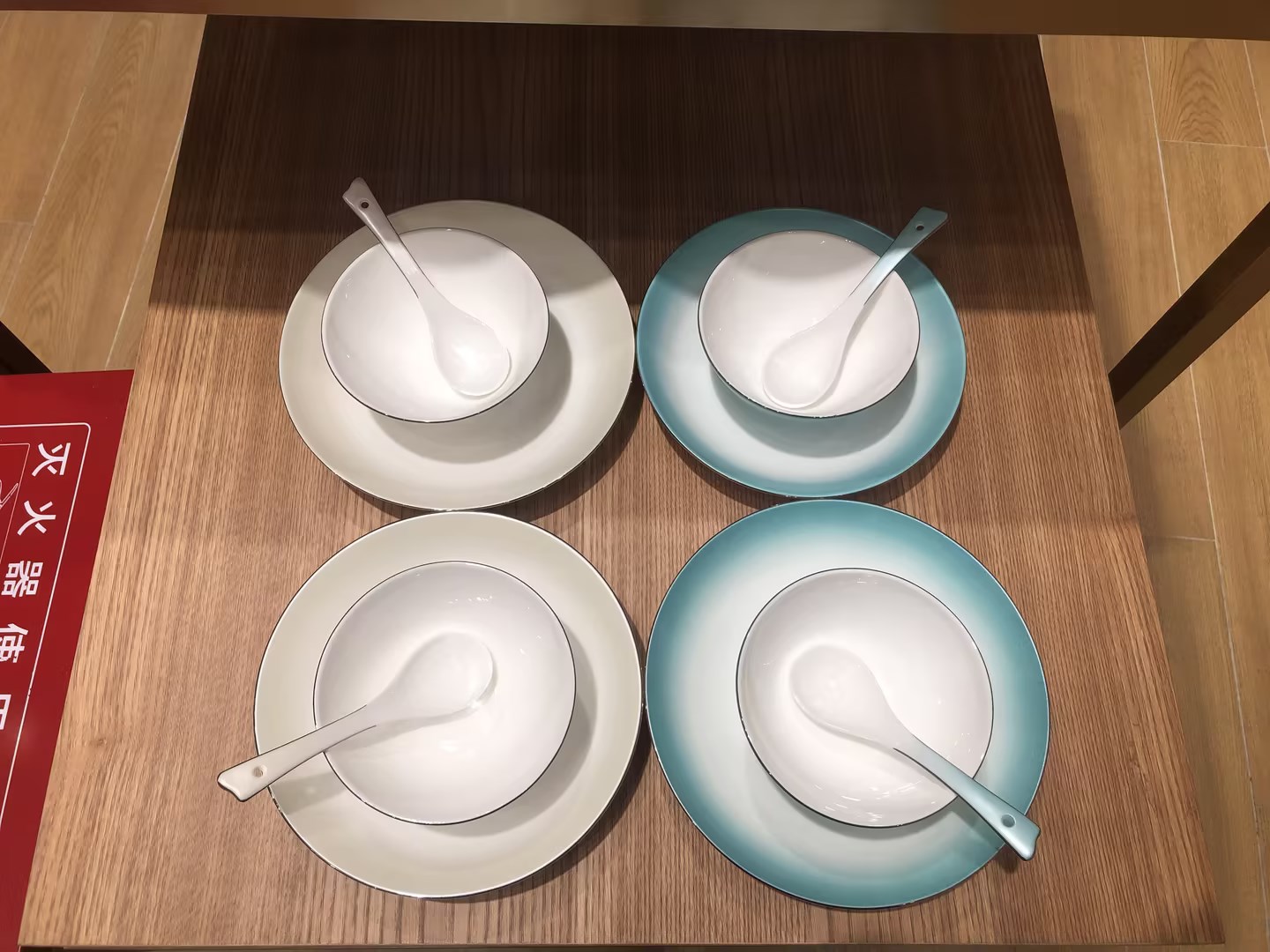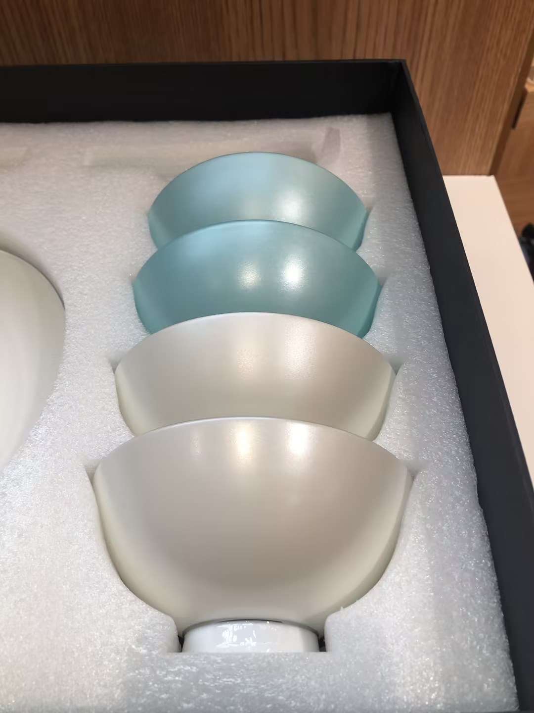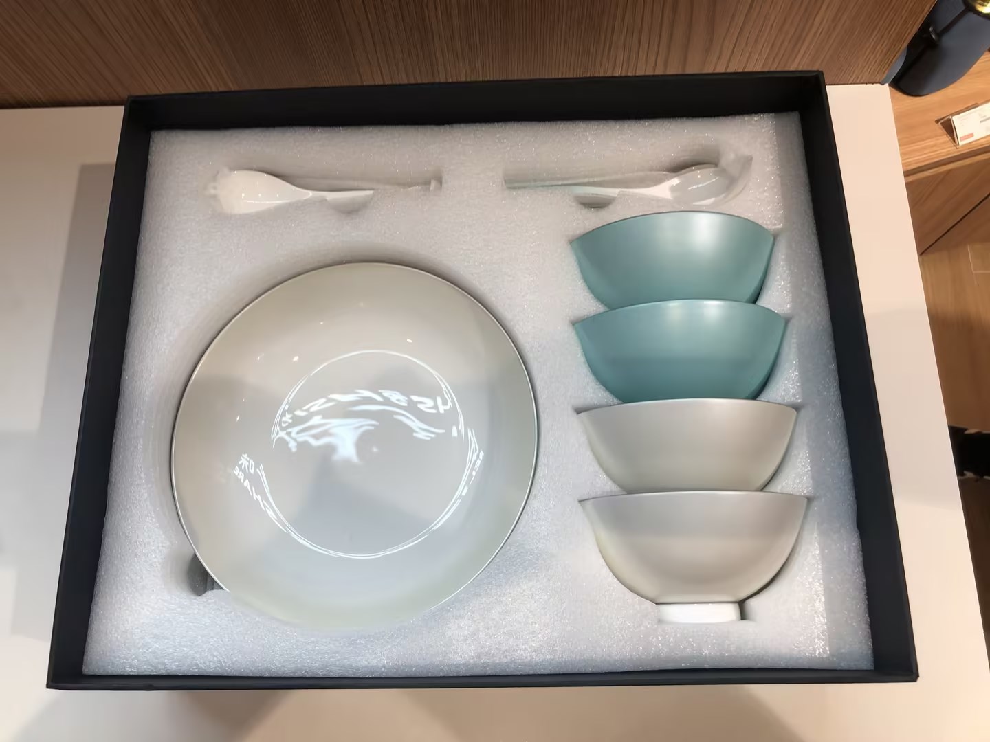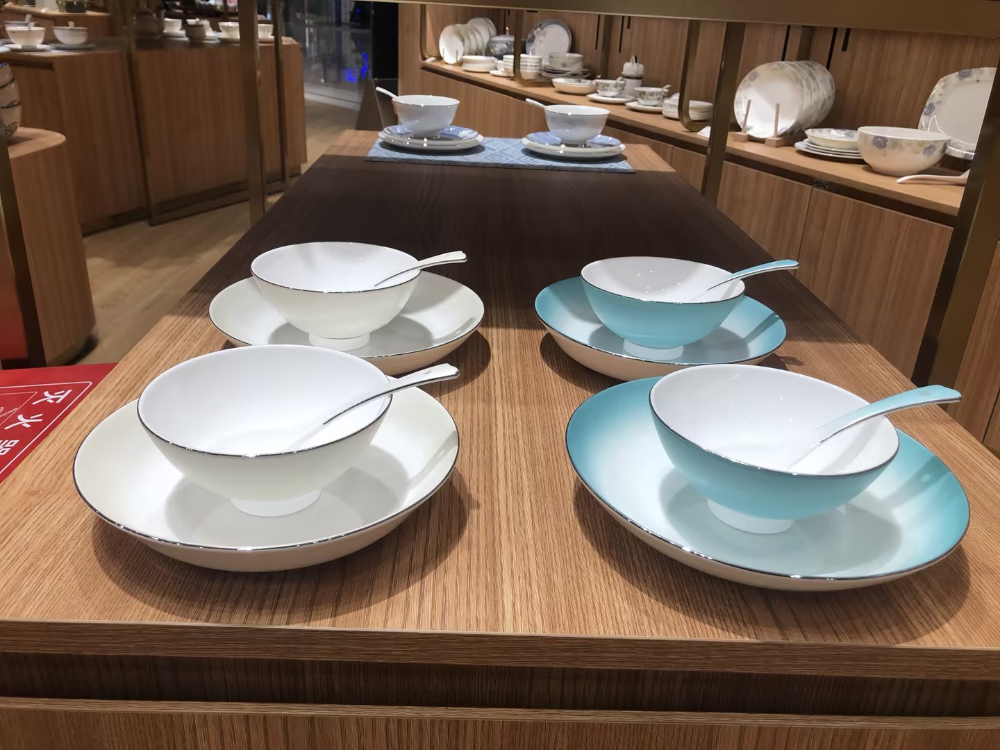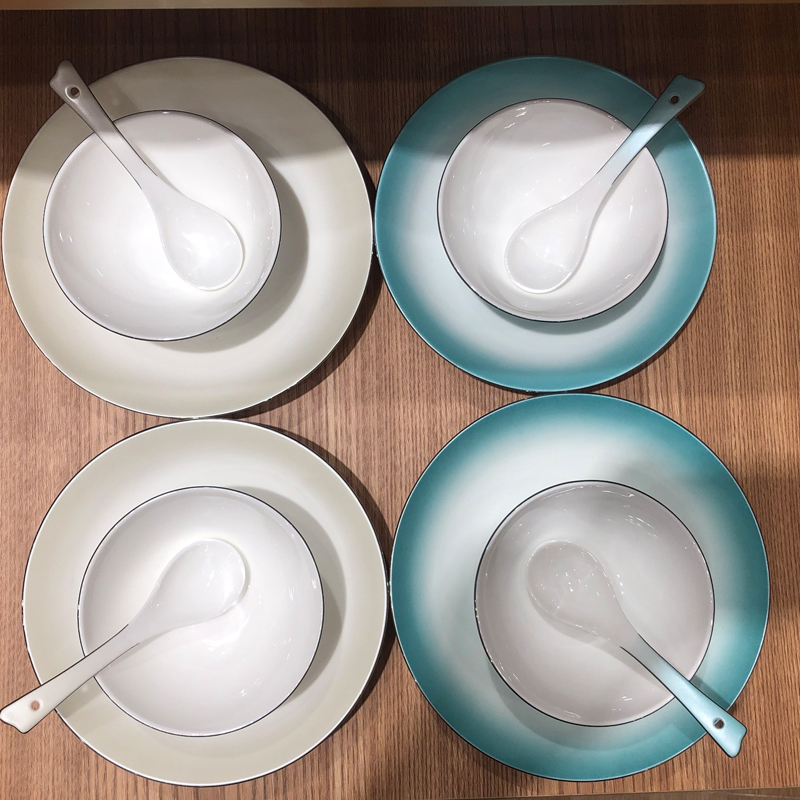 品物攸宜唐山骨瓷手绘素锦4人用12头中式套装餐具(蓝绿+白)礼盒装