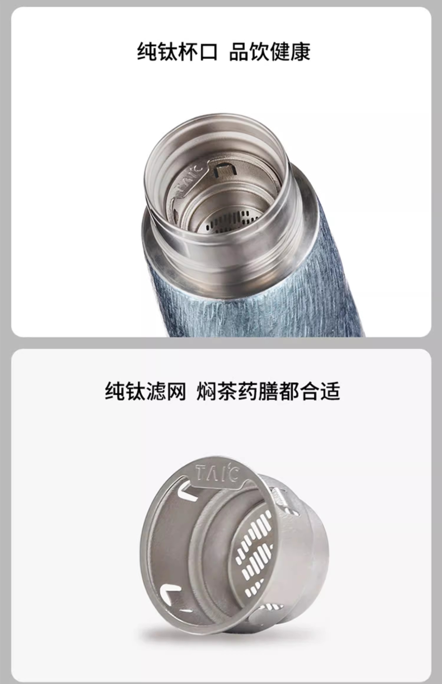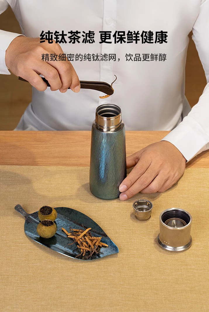 TAIC太可钛艺T型钛杯纯钛保温杯商务送礼轻奢高端茶水分离杯礼盒装