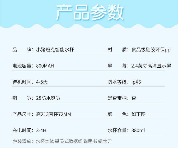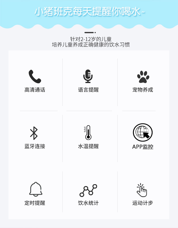 小猪班克智能水杯可爱提醒儿童幼儿园小学生大容量便携水壶男女孩