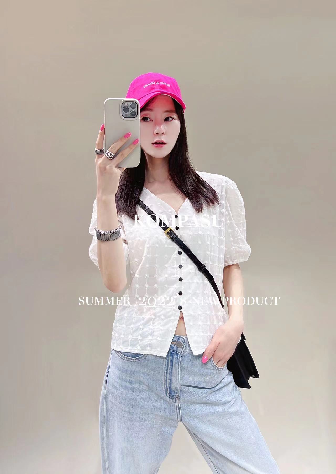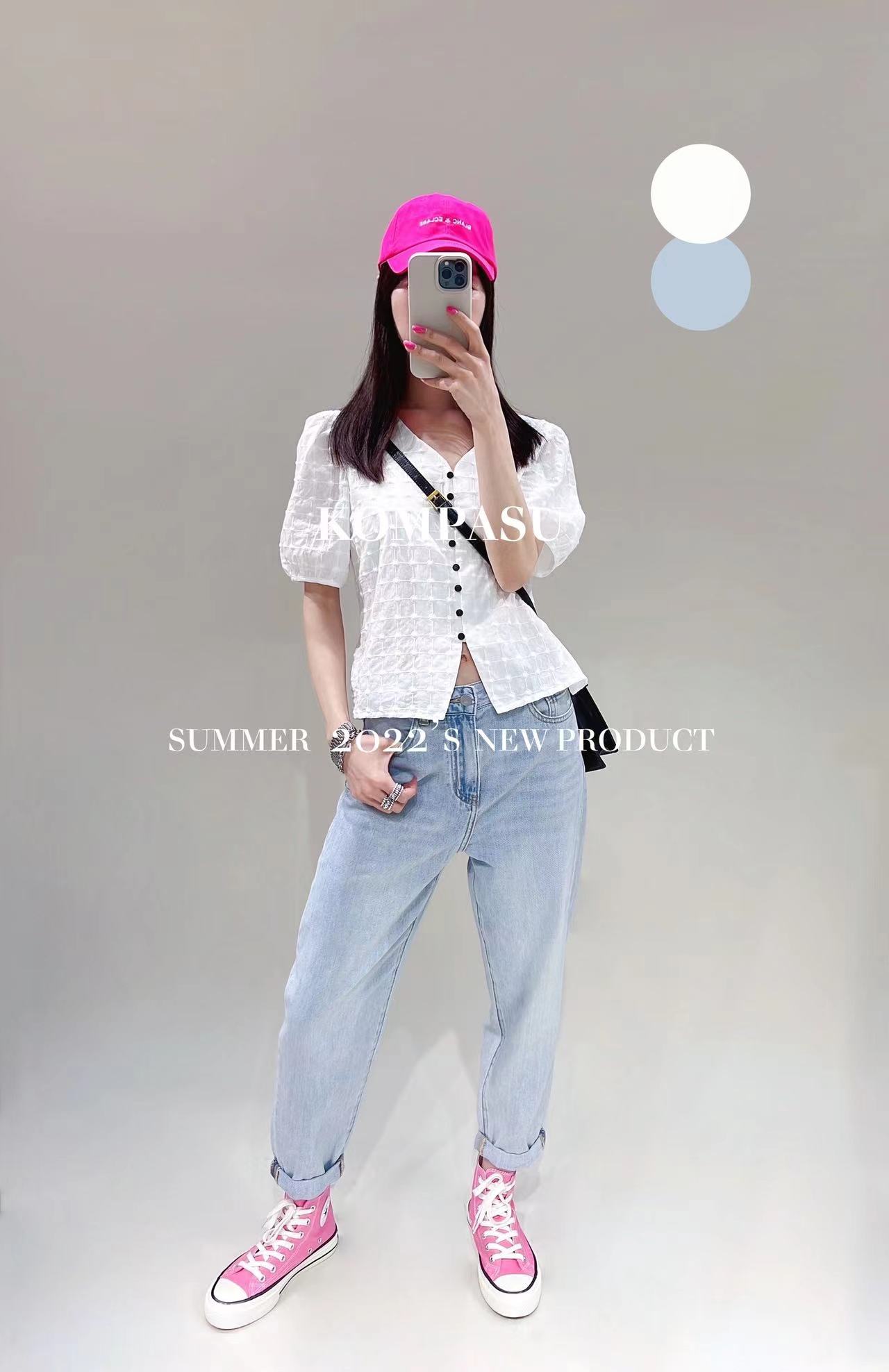 卡帕苏纯棉刺绣短打衬衫 K211023