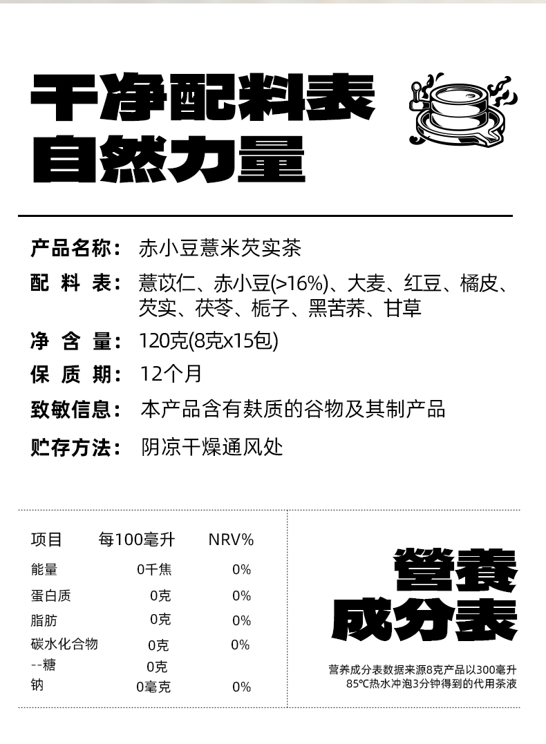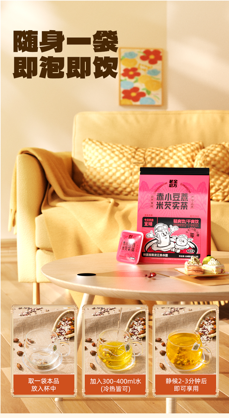 老金磨方红豆薏米茶芡实茶祛湿茶赤小豆茯苓薏仁苦荞大麦泡水茶包