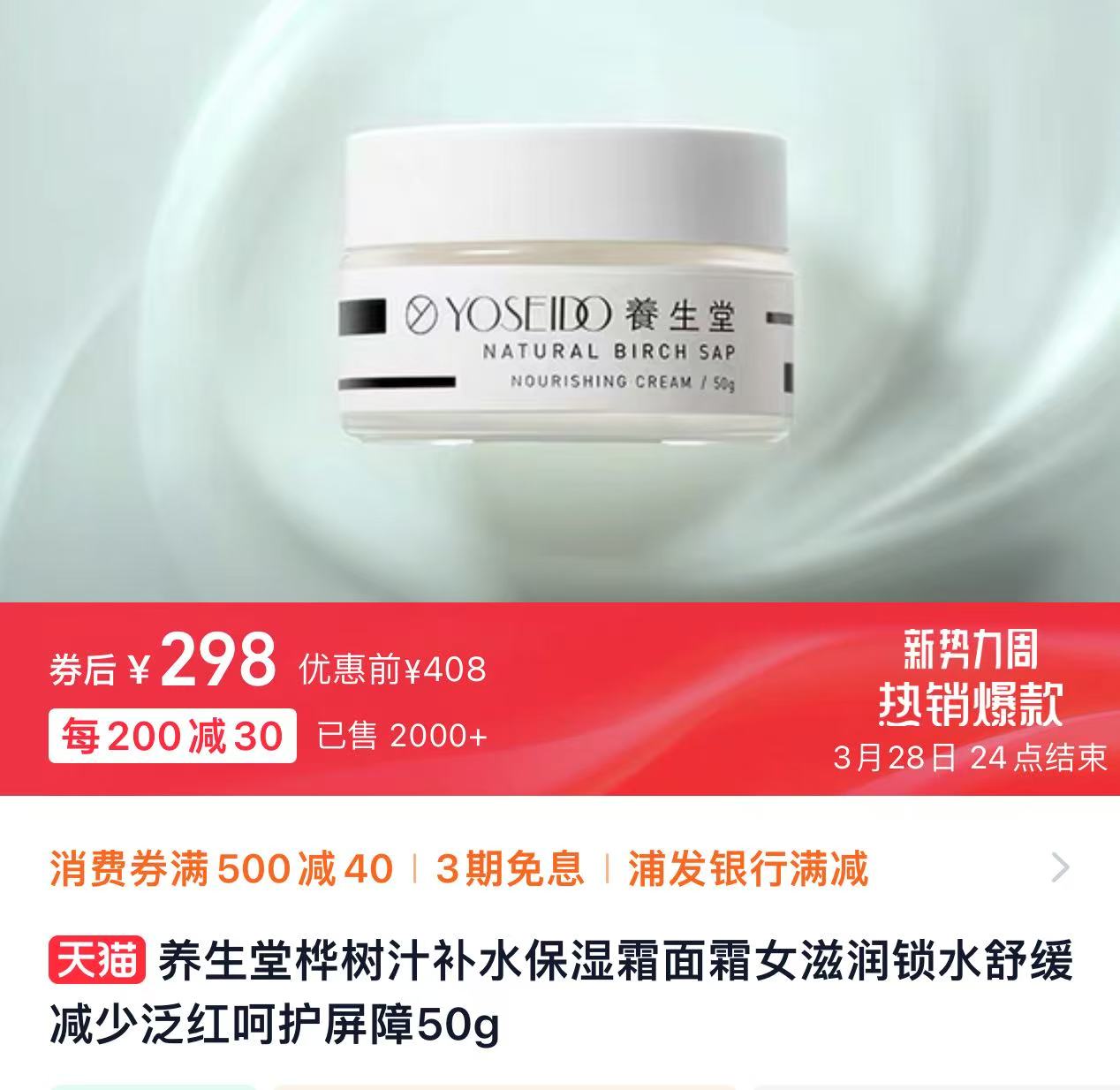 【品名】养生堂桦树汁养生堂桦树汁水凝霜面霜50g