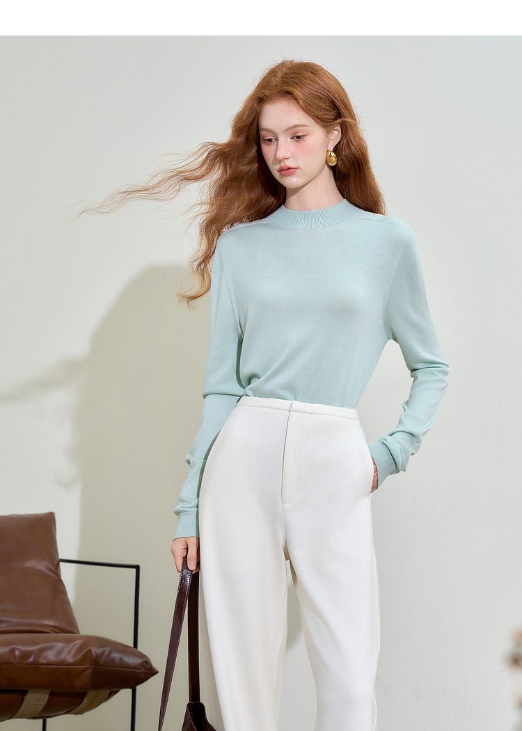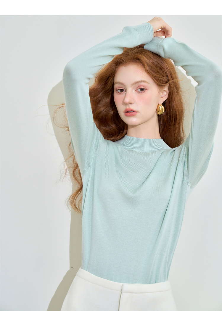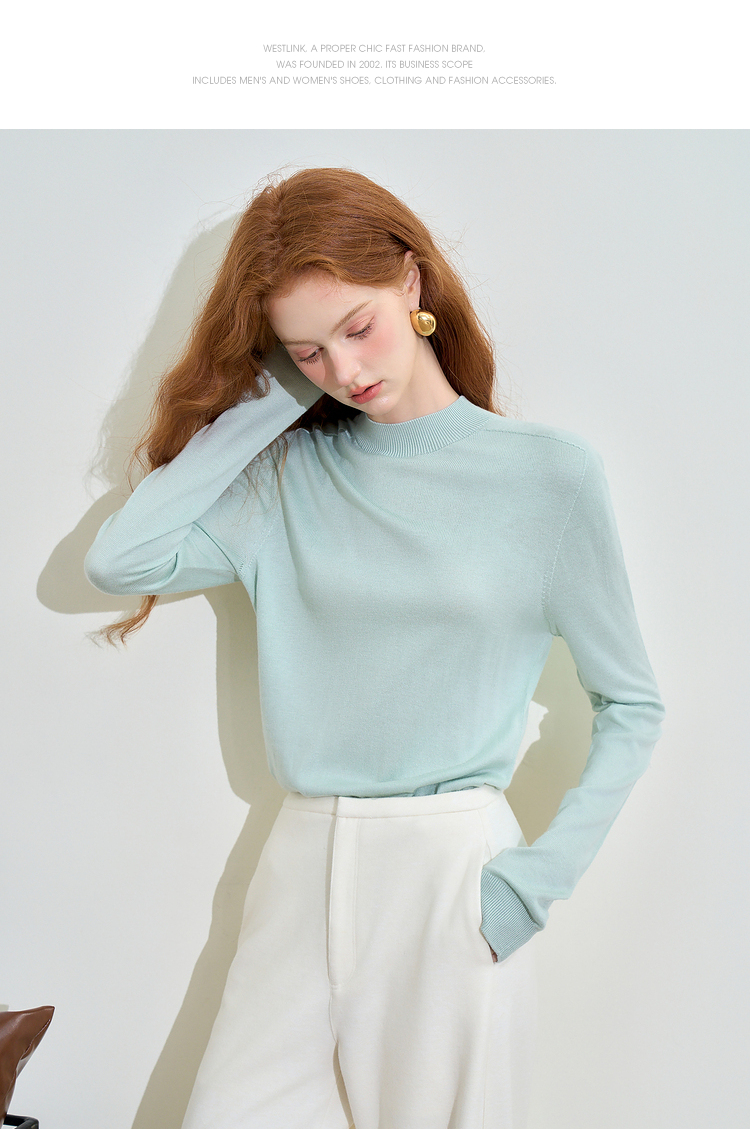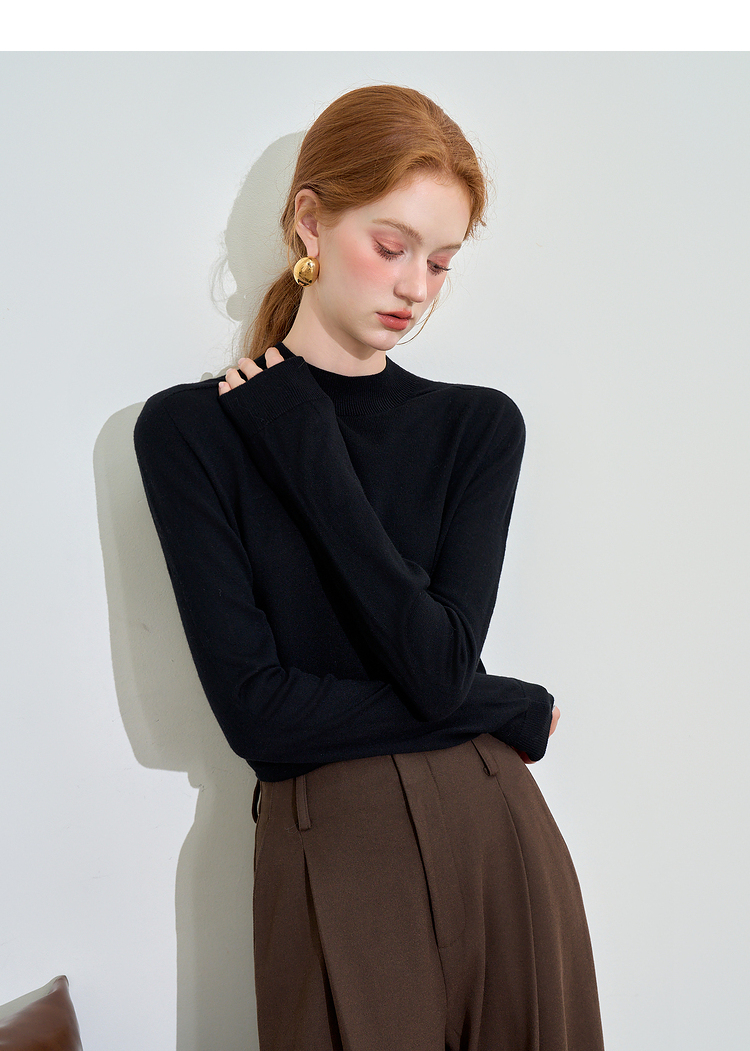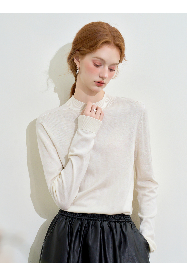 山羊绒半高领长袖毛衣女秋季轻薄保暖修身内搭上衣SS140286