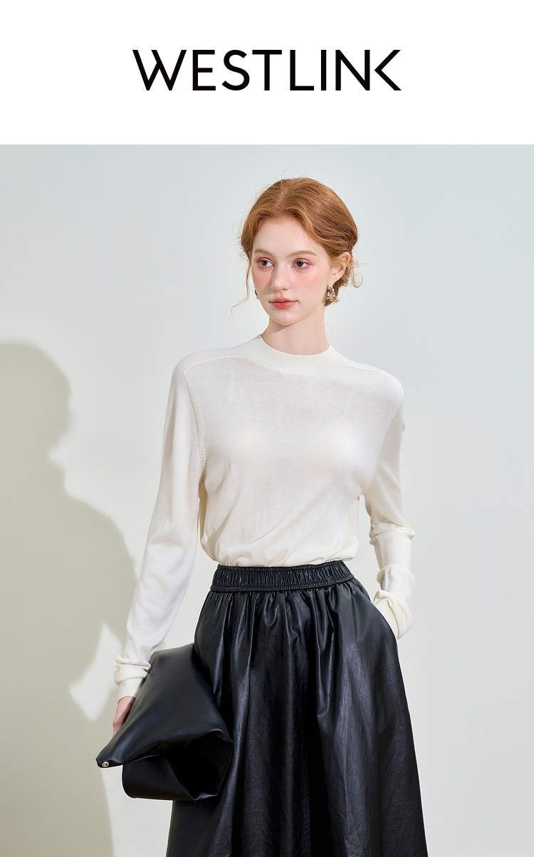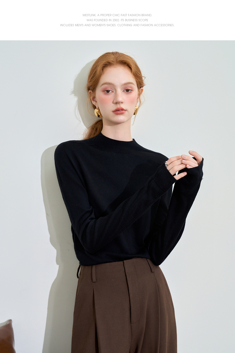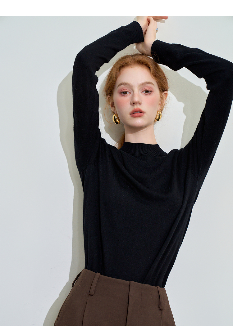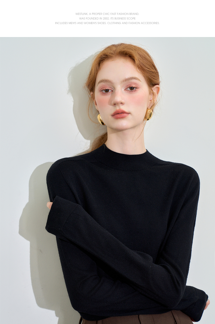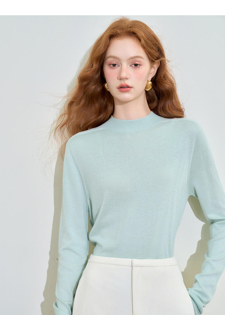 山羊绒半高领长袖毛衣女秋季轻薄保暖修身内搭上衣SS140286