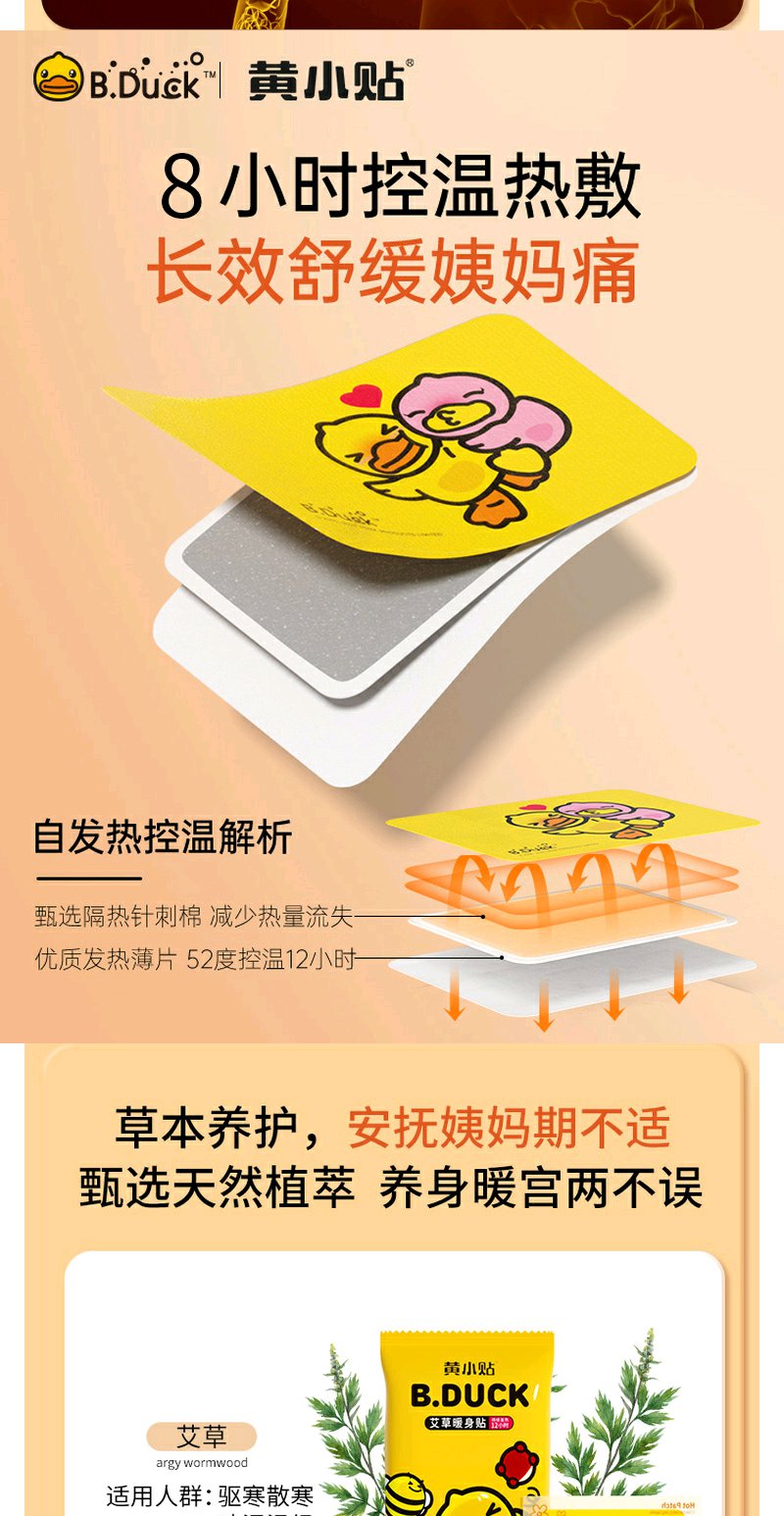 【小黄鸭正版暖贴】持久发热12小时,防烫伤,撕开即发热,保暖御寒,缓解痛经(50片装)2种规格,益母草/艾草