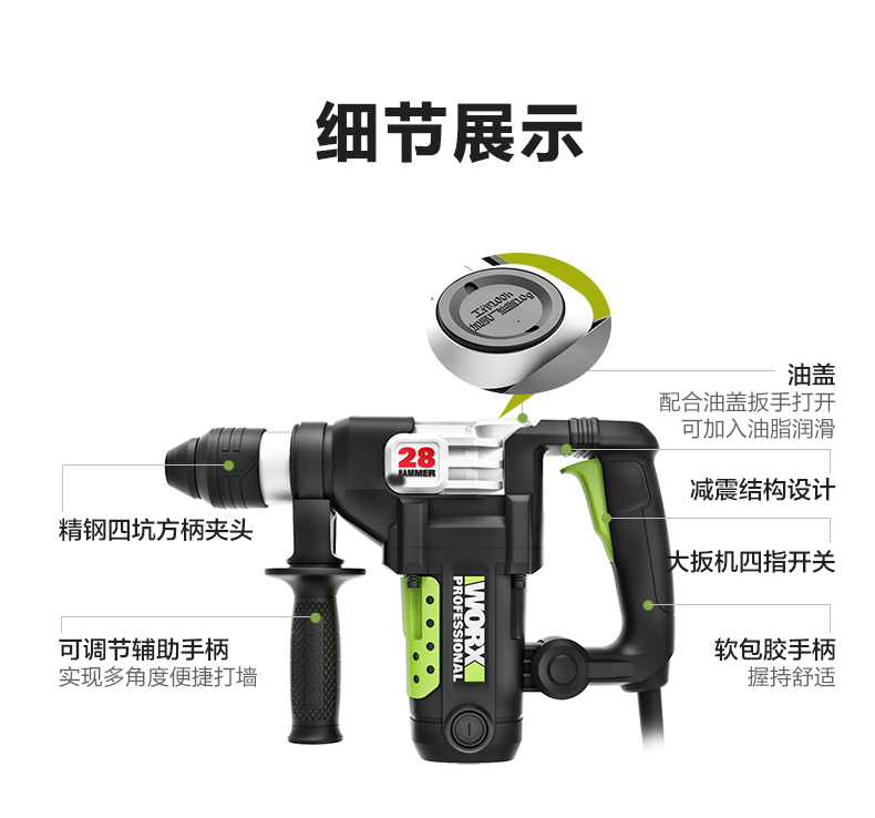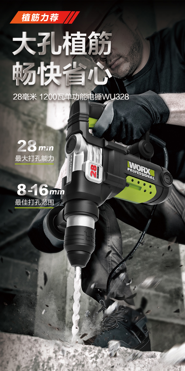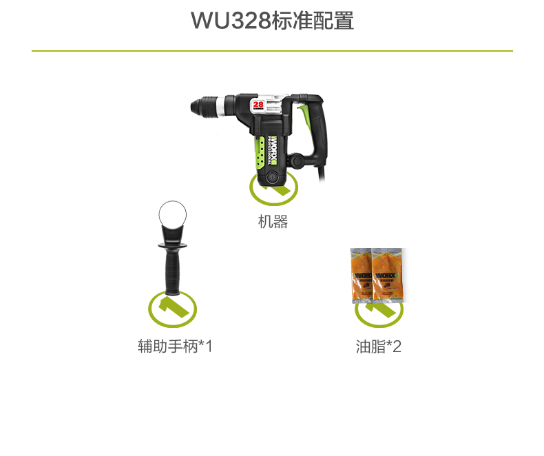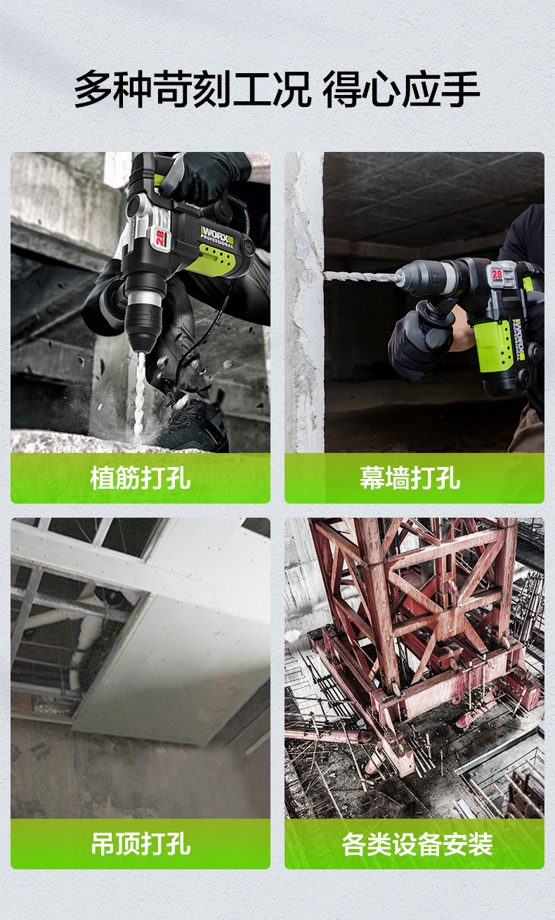 威克士工业级电锤电镐大功率WU328 冲击钻混凝土多功能电动工具