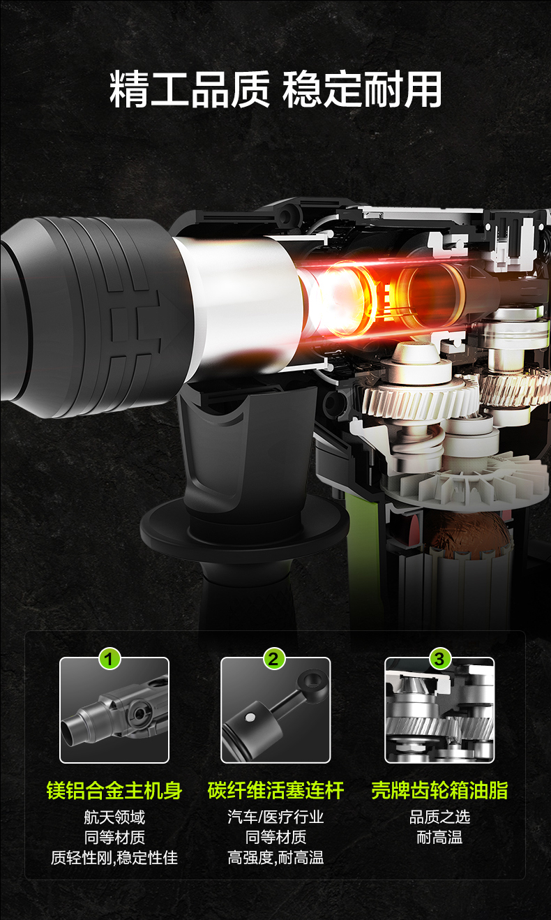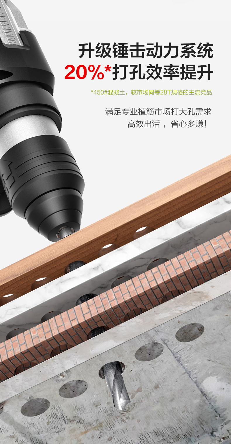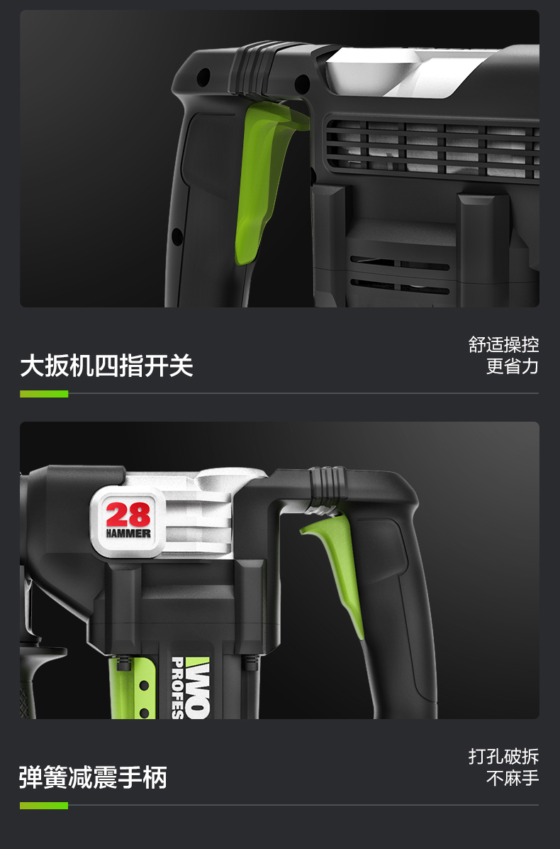 威克士工业级电锤电镐大功率WU328 冲击钻混凝土多功能电动工具