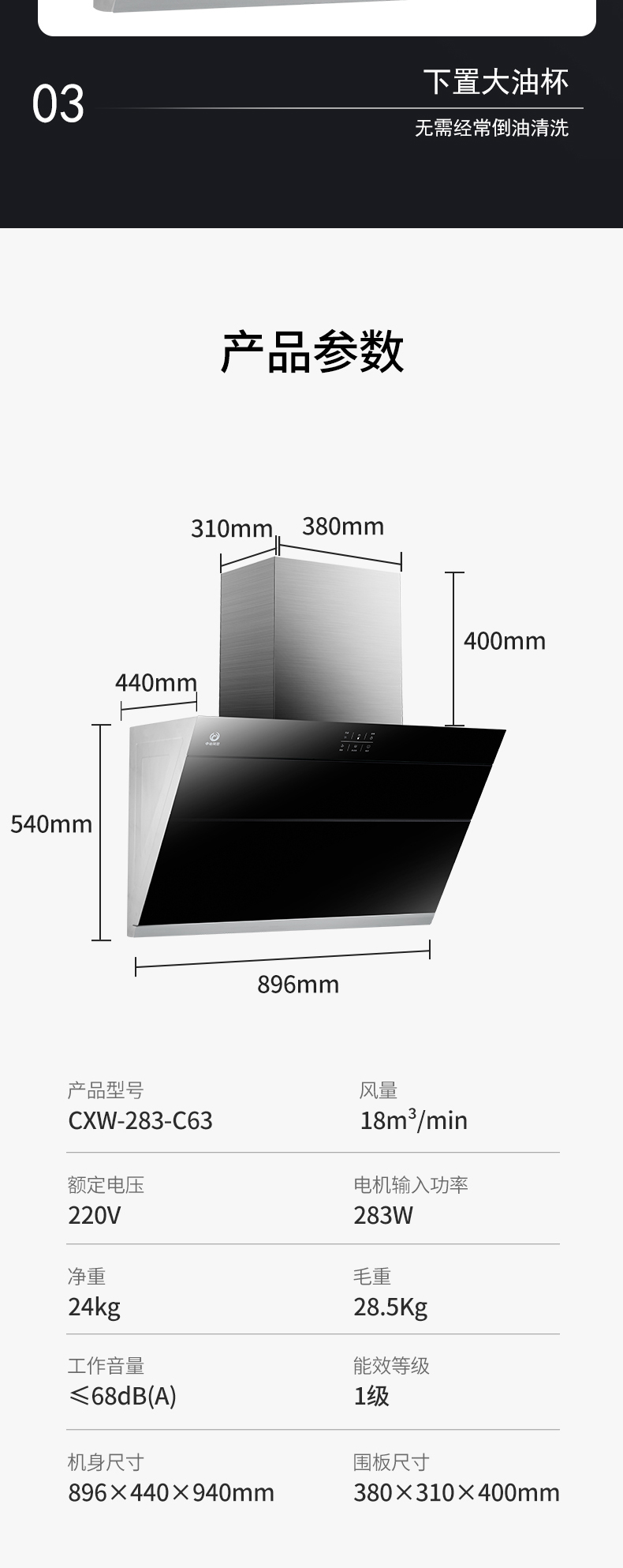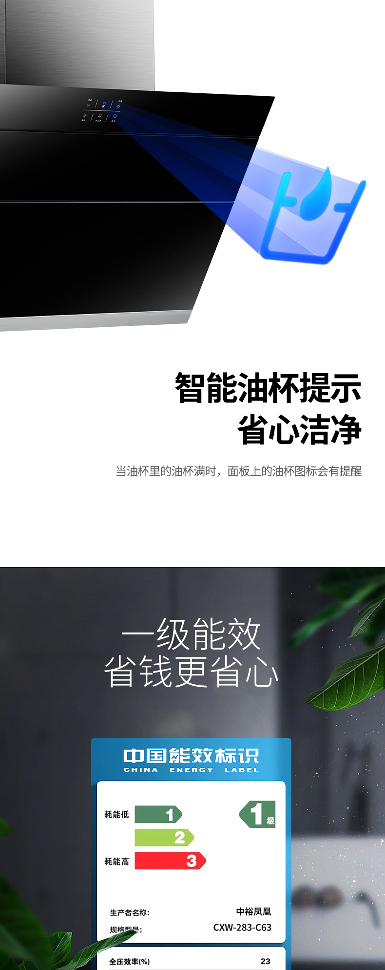 中裕凤凰侧式吸油烟机CXW-283-C63(手感智控)