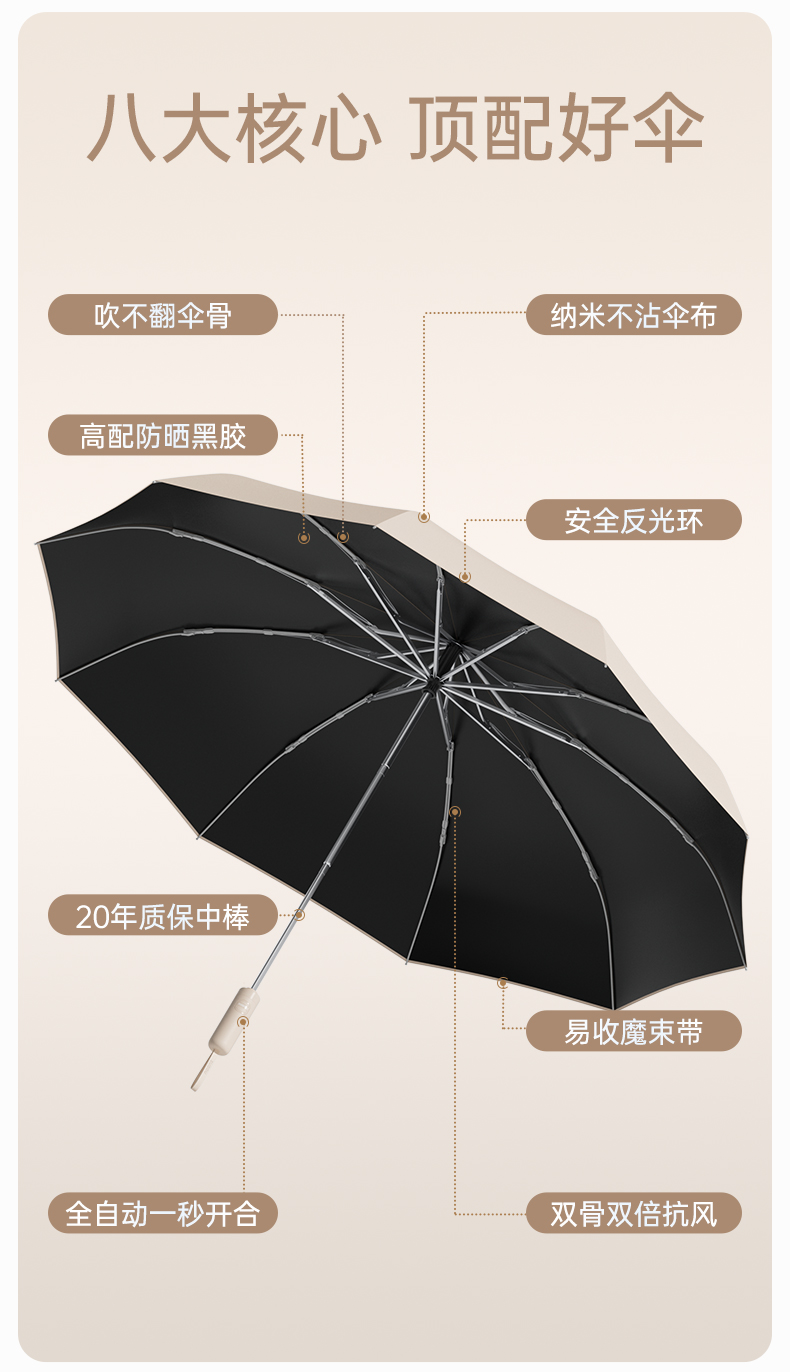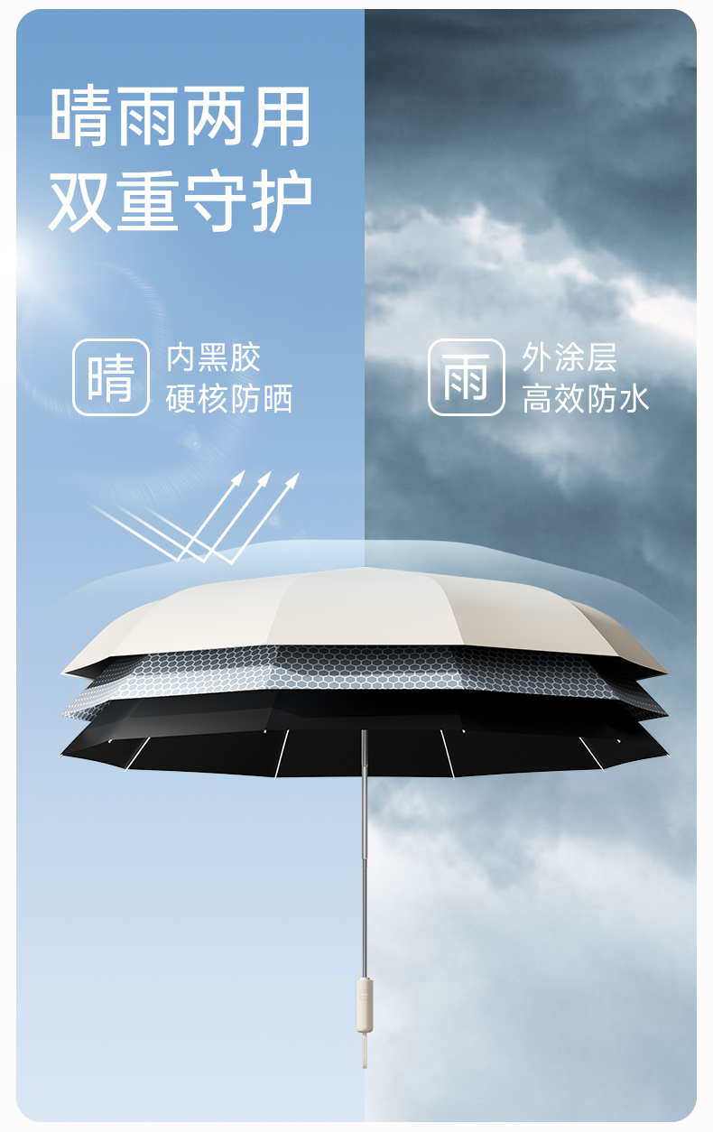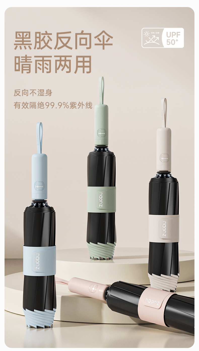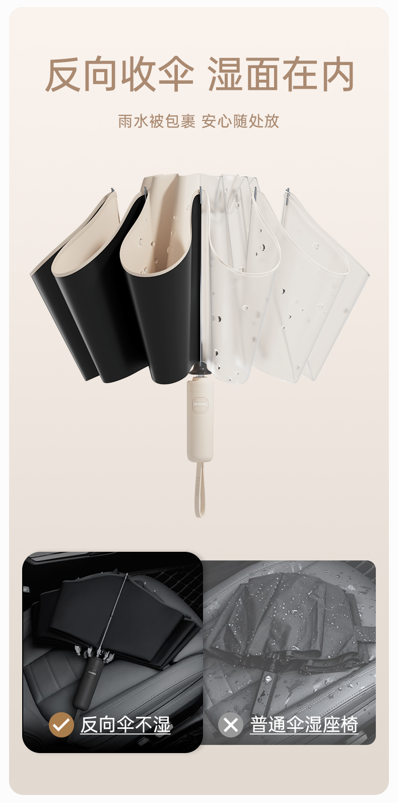 左都透明圈反向双龙骨晴雨伞