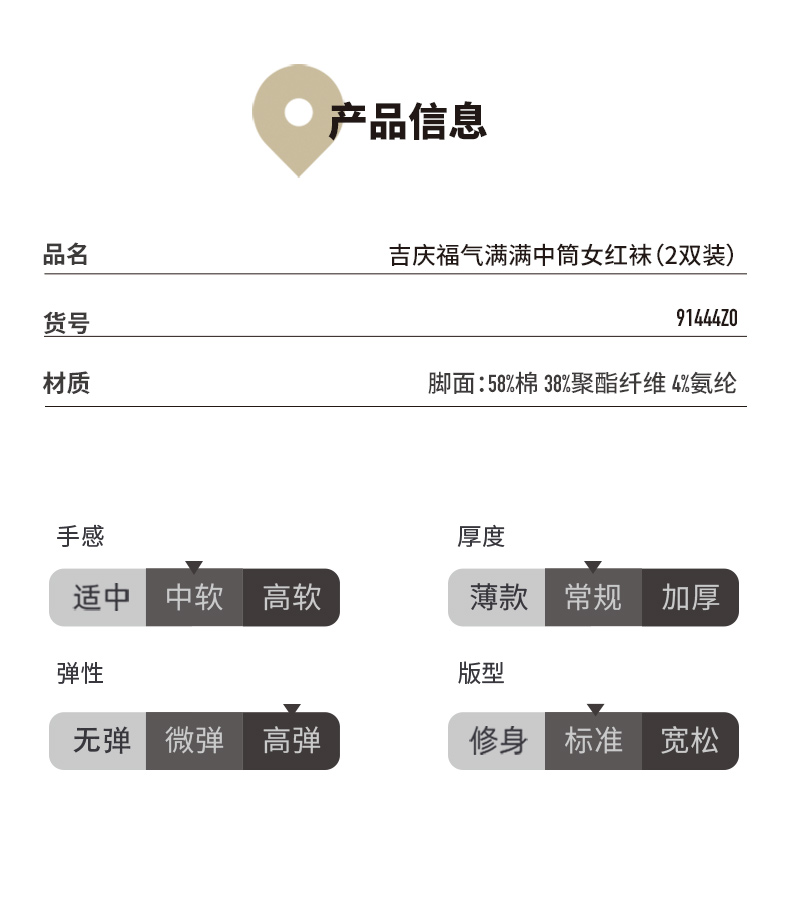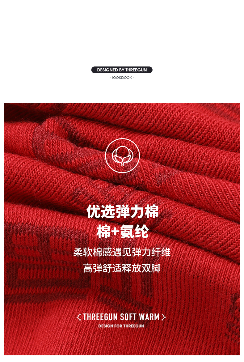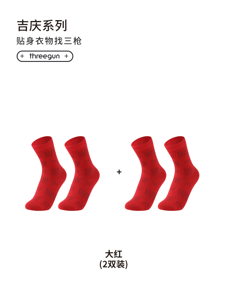 Threegun三枪 吉庆福气满满中筒女红袜(2双装)-91444Z021
