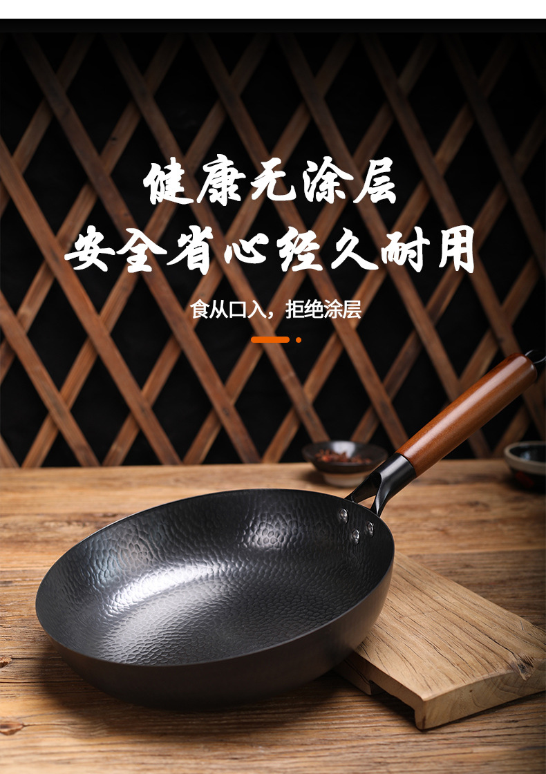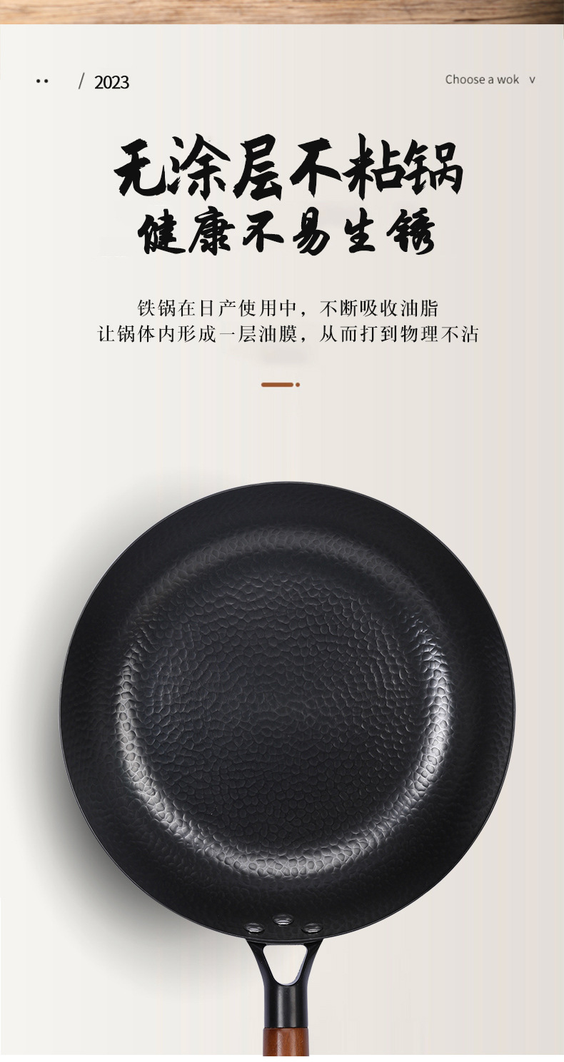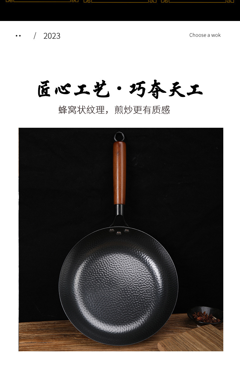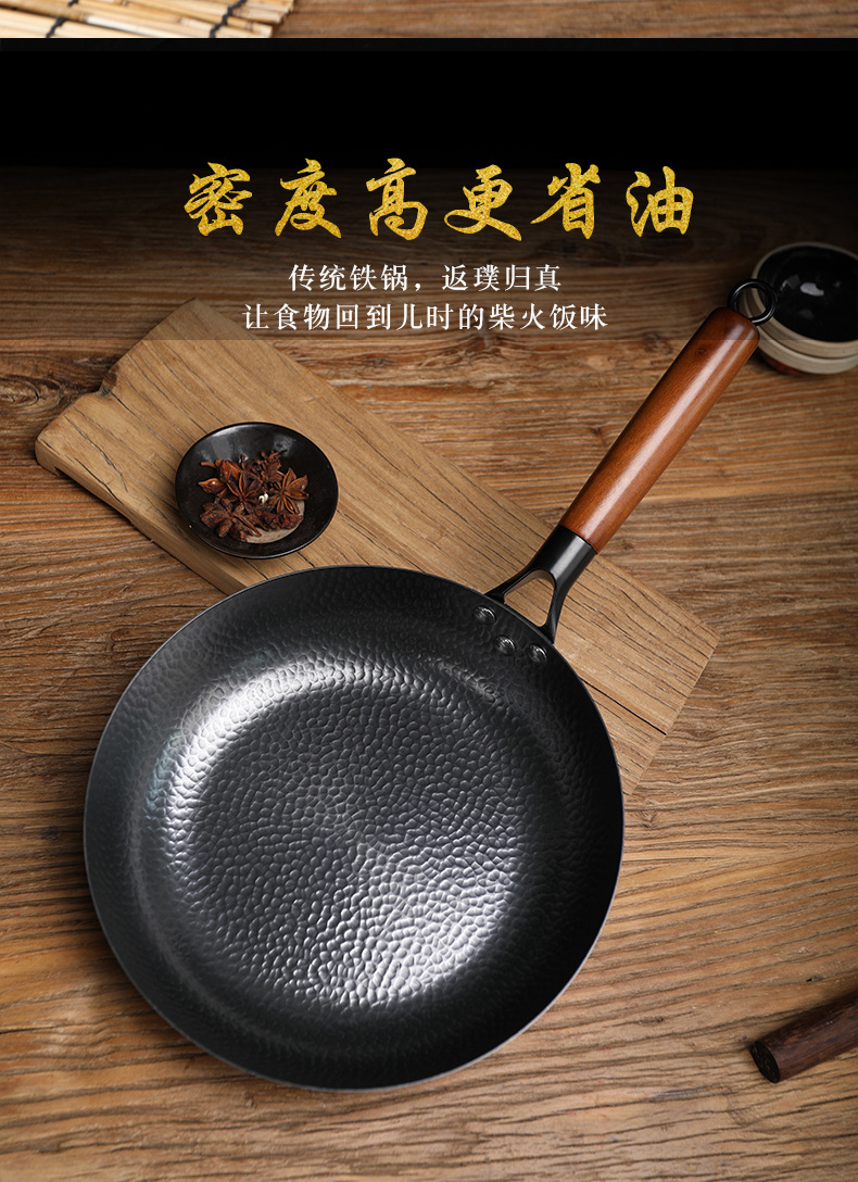 日式极铁煎锅 纯手工锻打不粘锅 家用牛排鸡蛋烙饼锅 辅食平底锅鱼鳞纹无涂层不粘煎锅