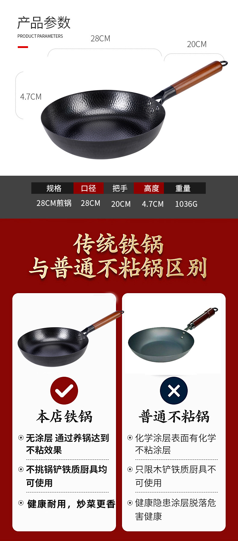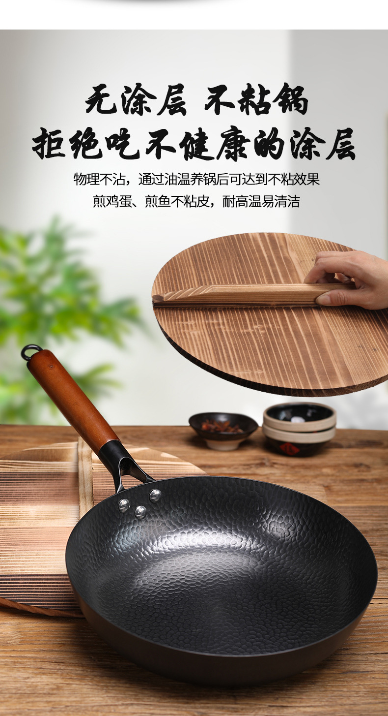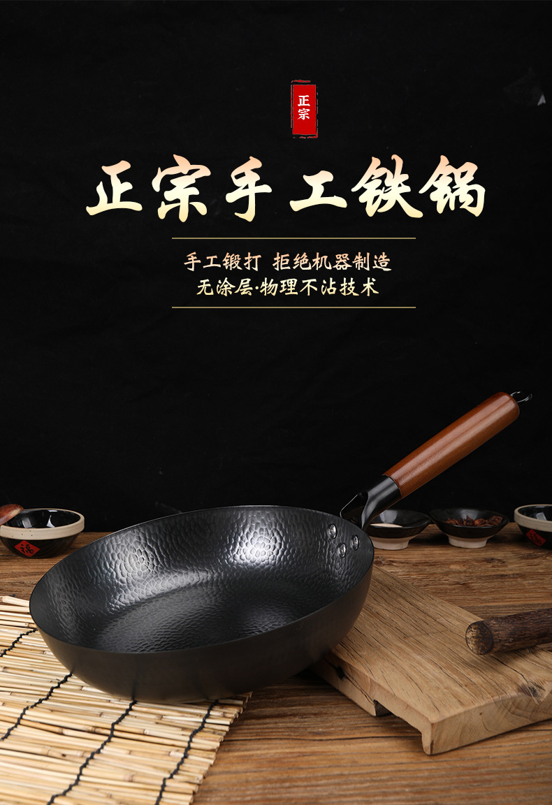 日式极铁煎锅 纯手工锻打不粘锅 家用牛排鸡蛋烙饼锅 辅食平底锅鱼鳞纹无涂层不粘煎锅