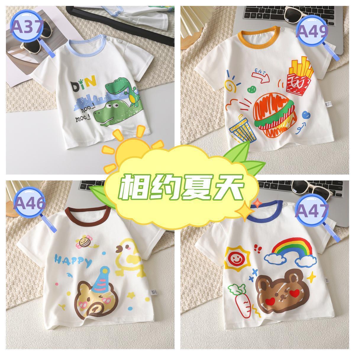 【3件/39.9】清凉夏季纯棉A类儿童短袖T恤纯棉小童夏季24个花型任选 73-130码