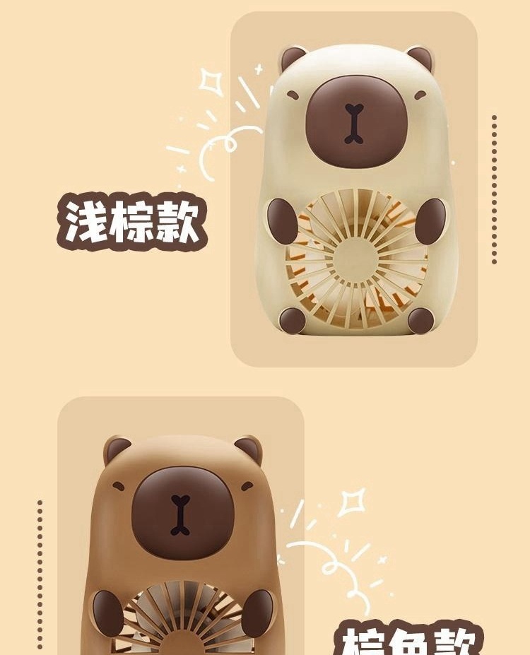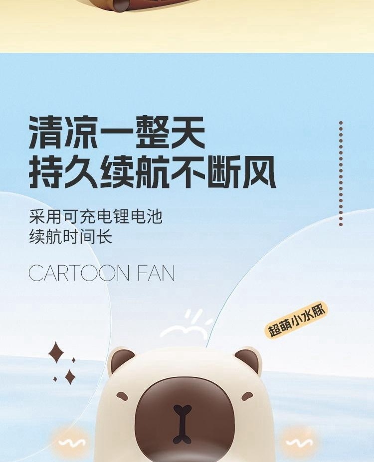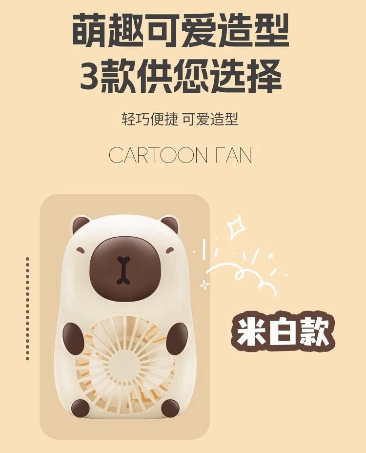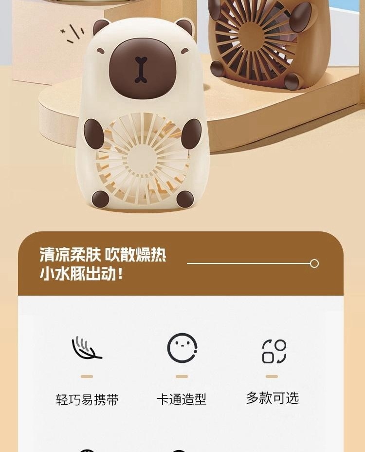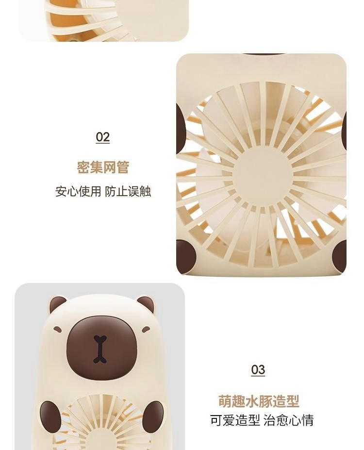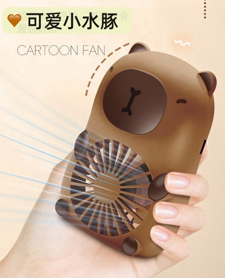 【儿童卡通水豚手持小风扇】带挂绳手持迷你便携小风扇 外出随身可爱电风扇 五一假期出行