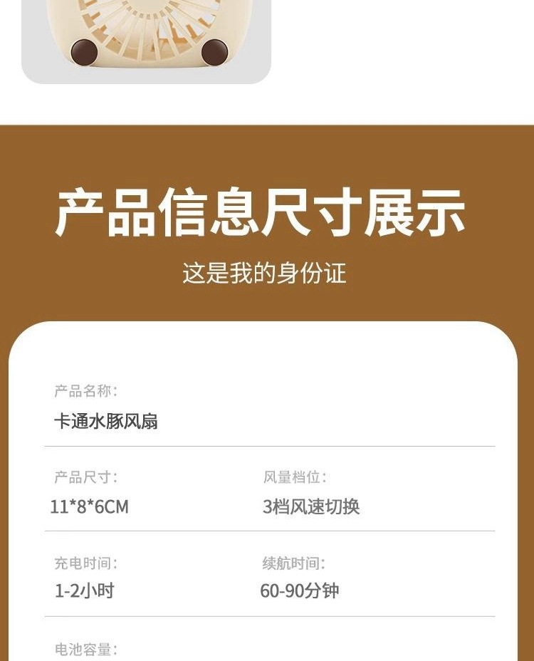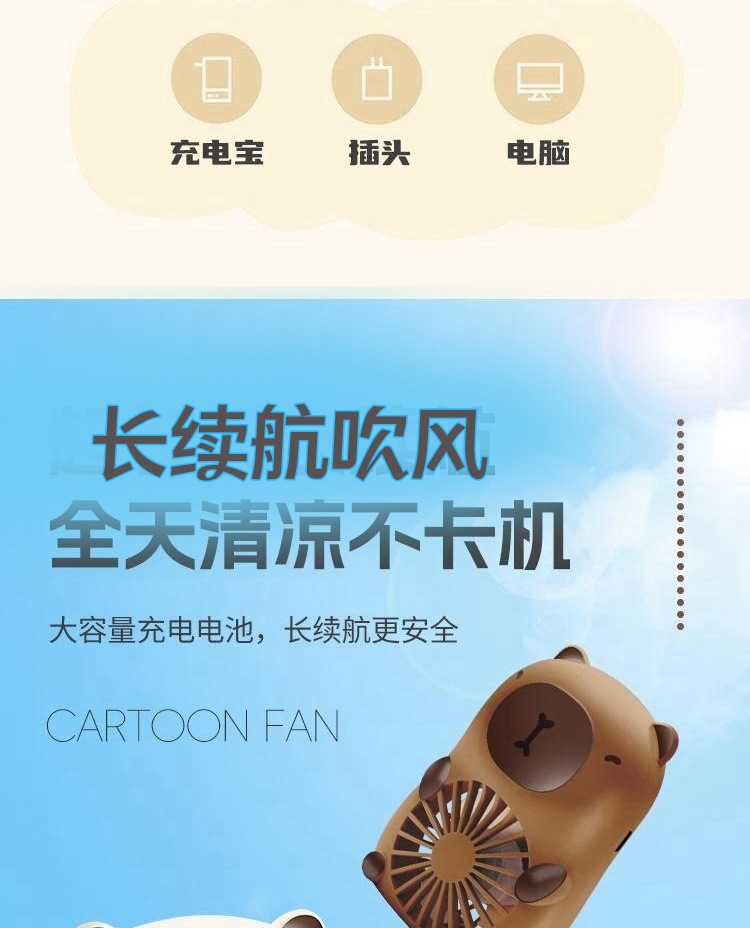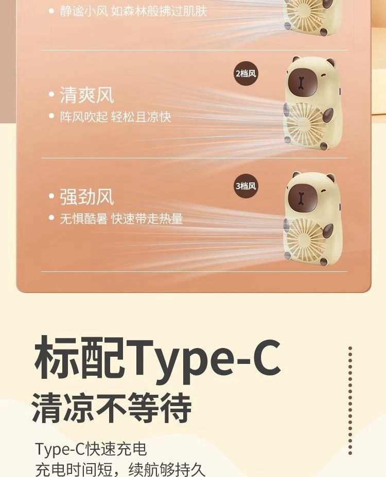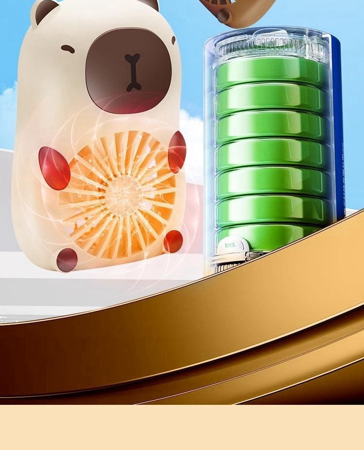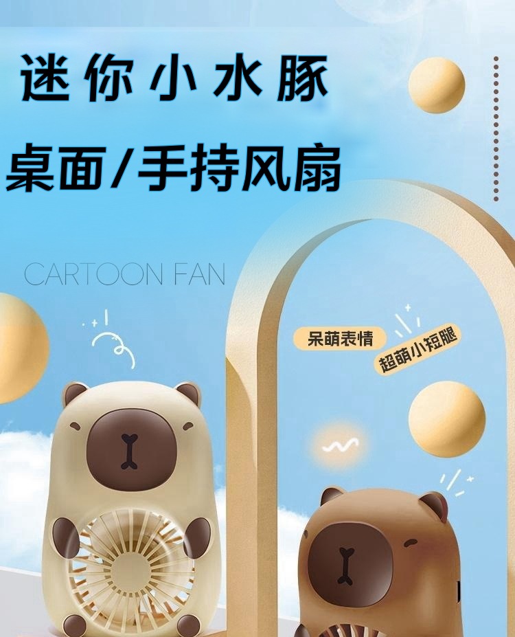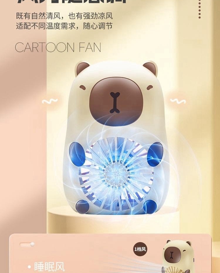 【儿童卡通水豚手持小风扇】带挂绳手持迷你便携小风扇 外出随身可爱电风扇 五一假期出行