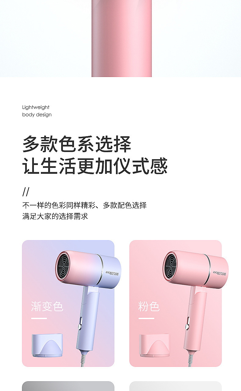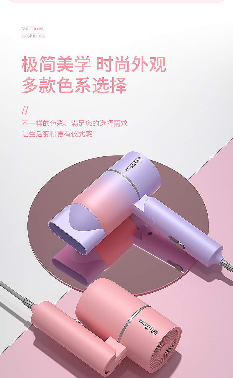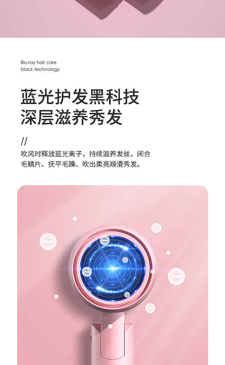新款网红渐变色折叠电吹风机家用学生宿舍蓝光吹风机便携式吹风筒