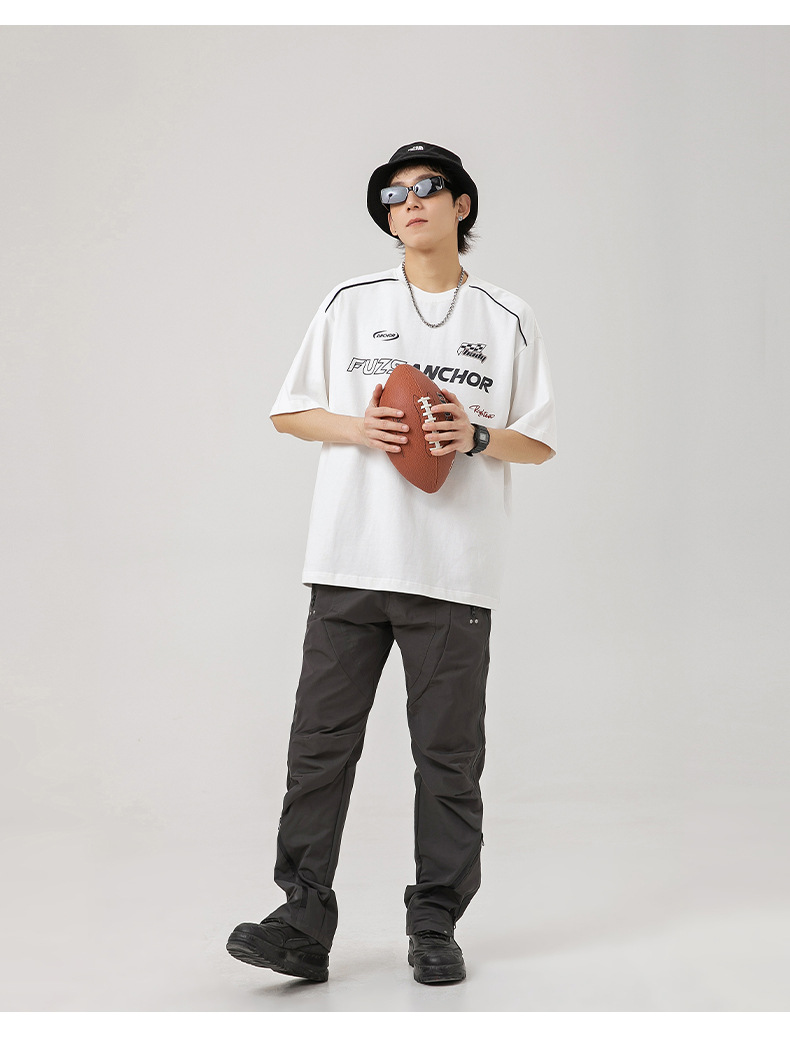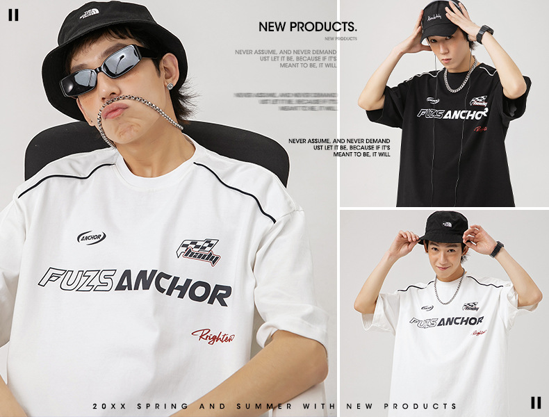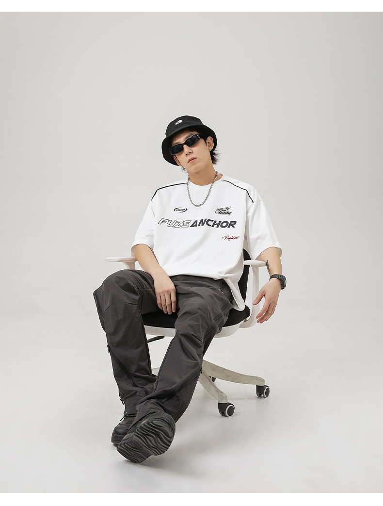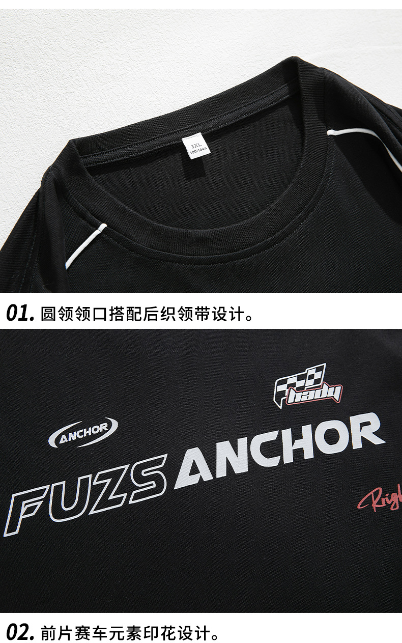 「黑白两色」韩路日系男装 潮牌高街短袖t恤男 夏新款美式复古宽松赛车元素体恤上衣