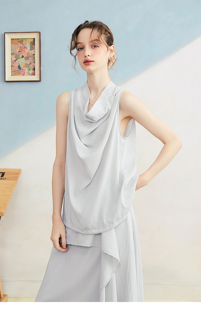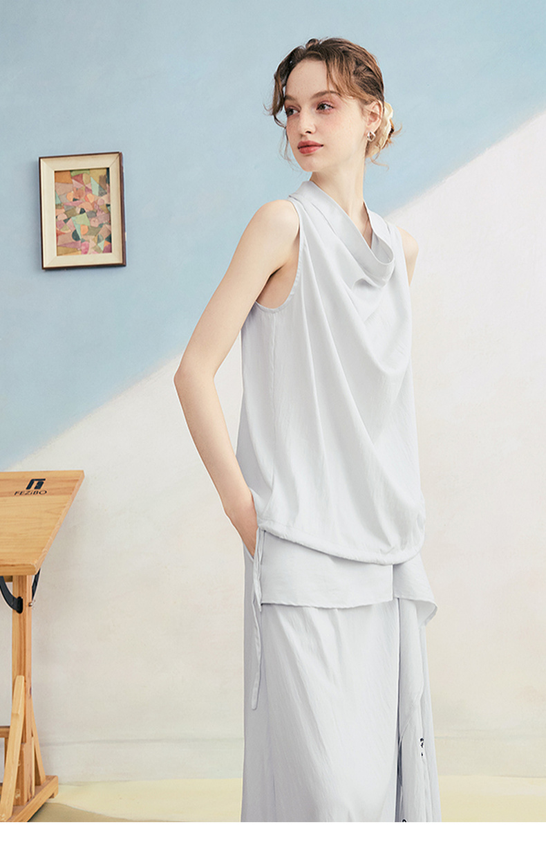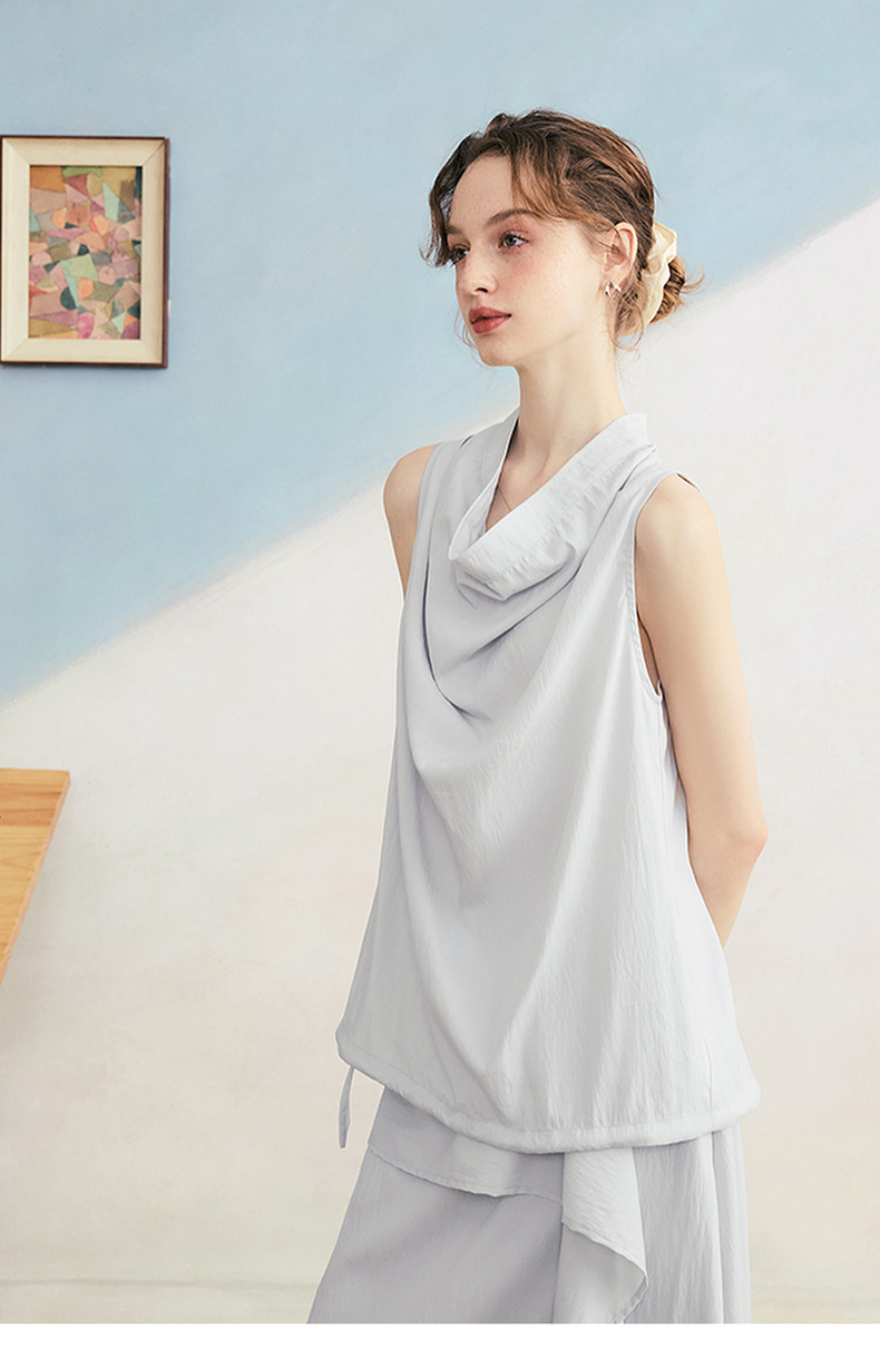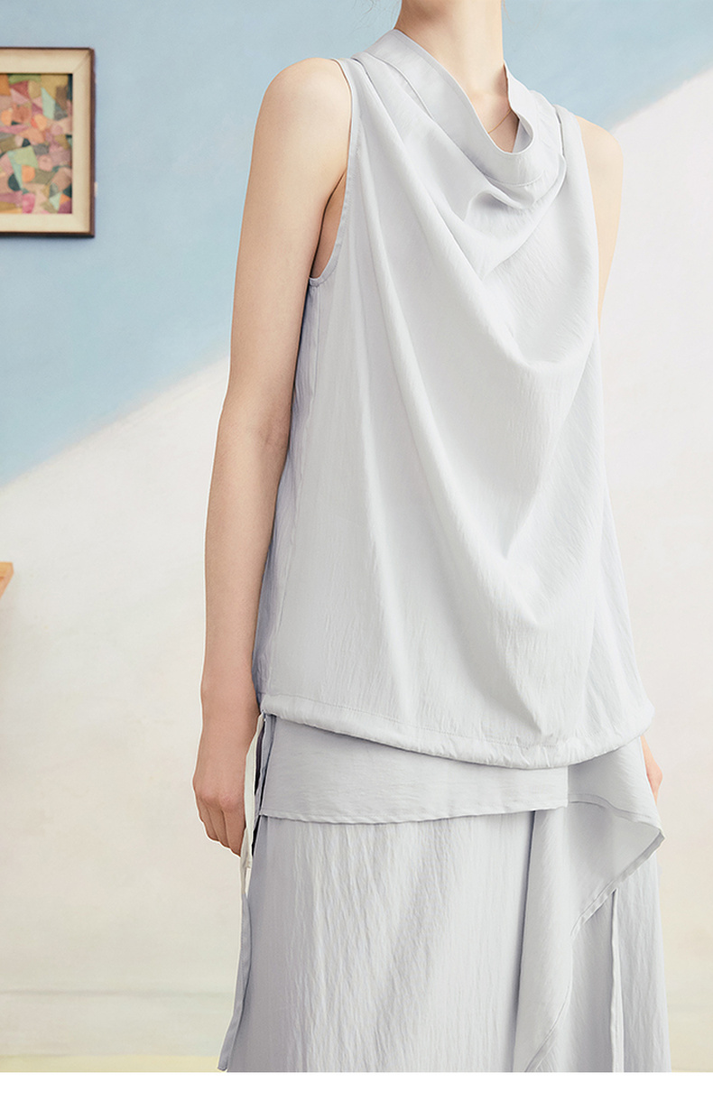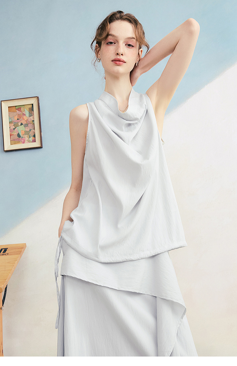 两三事 三维星河 2025夏季新款简约兜兜领下摆抽绳背心女中长款