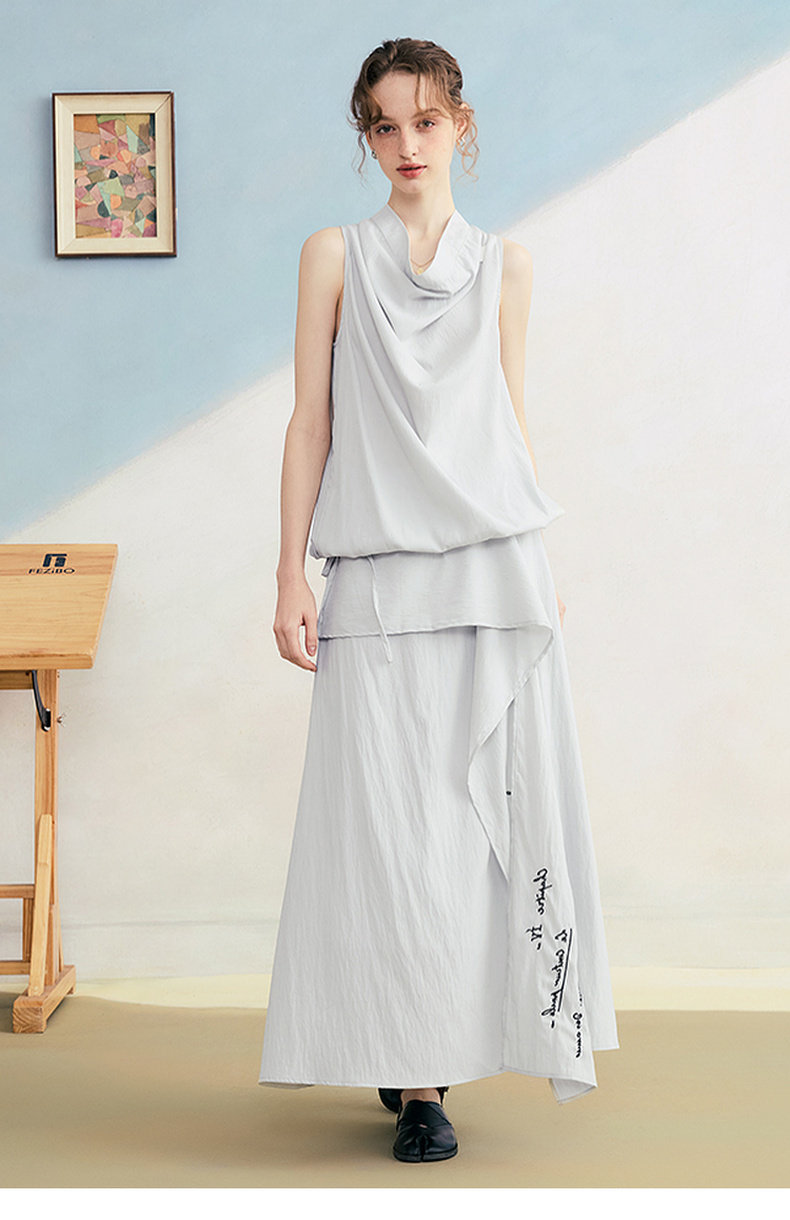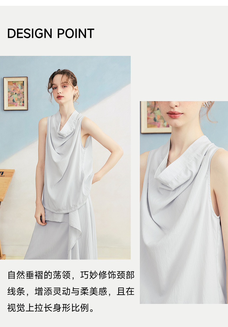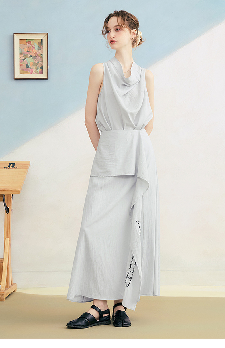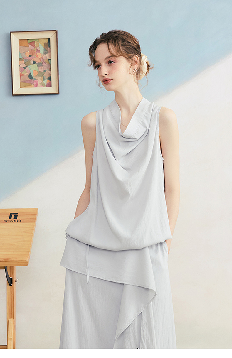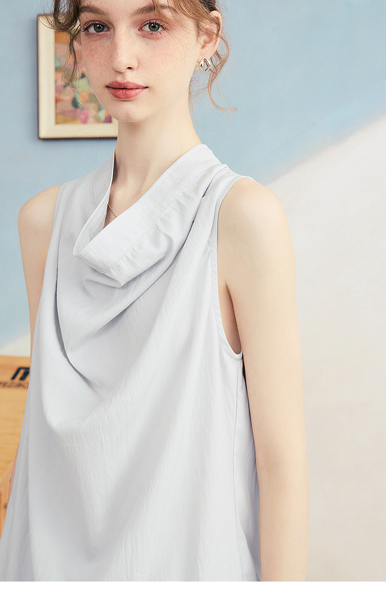 两三事 三维星河 2025夏季新款简约兜兜领下摆抽绳背心女中长款