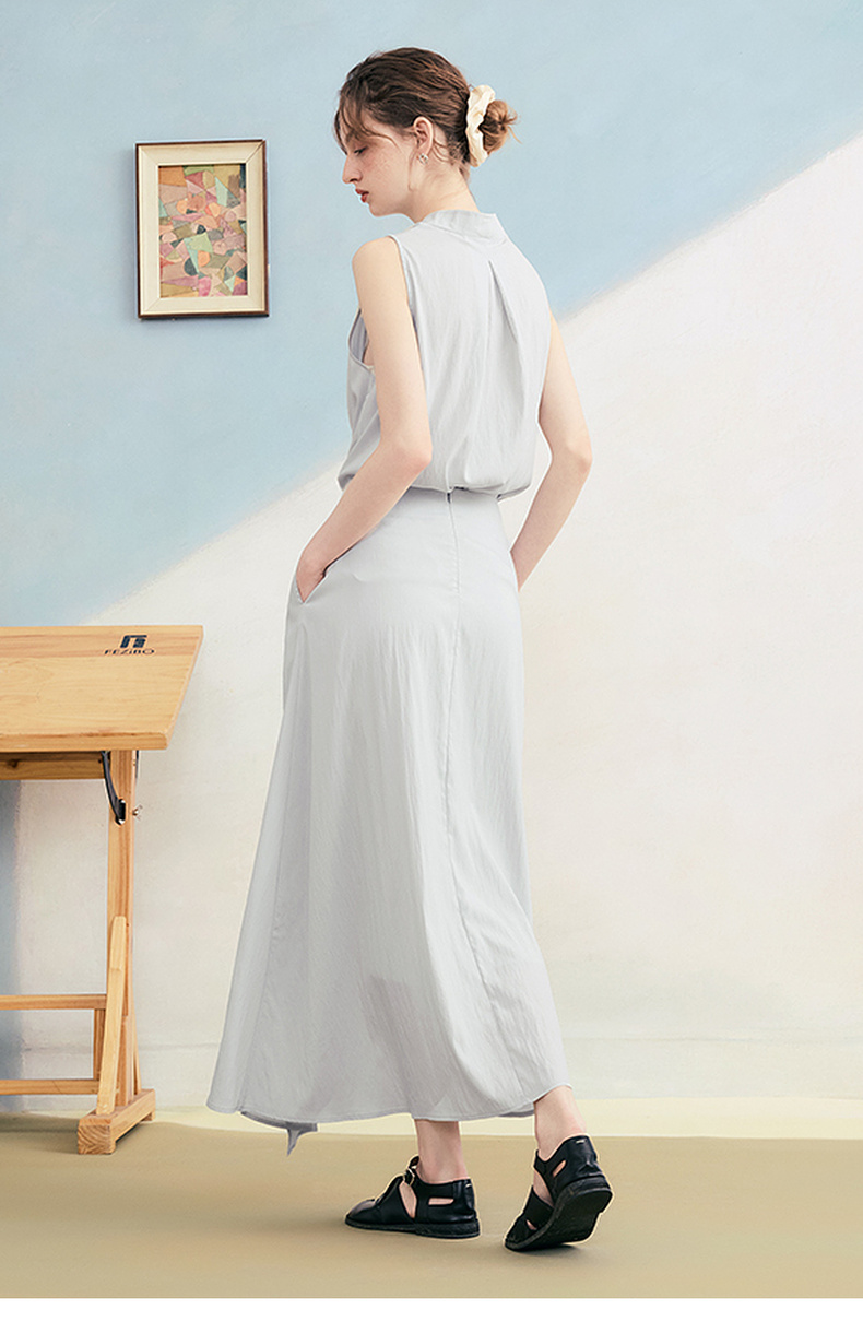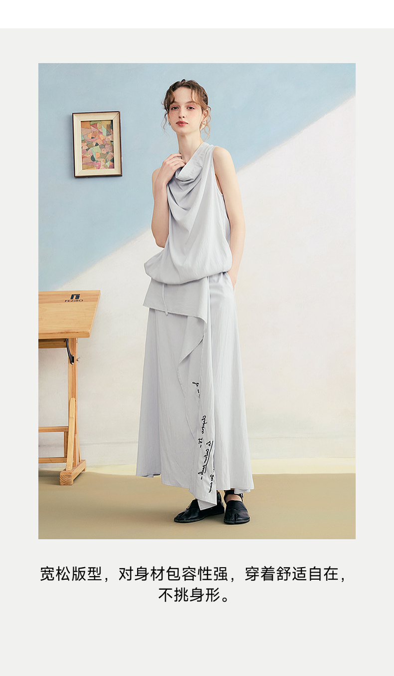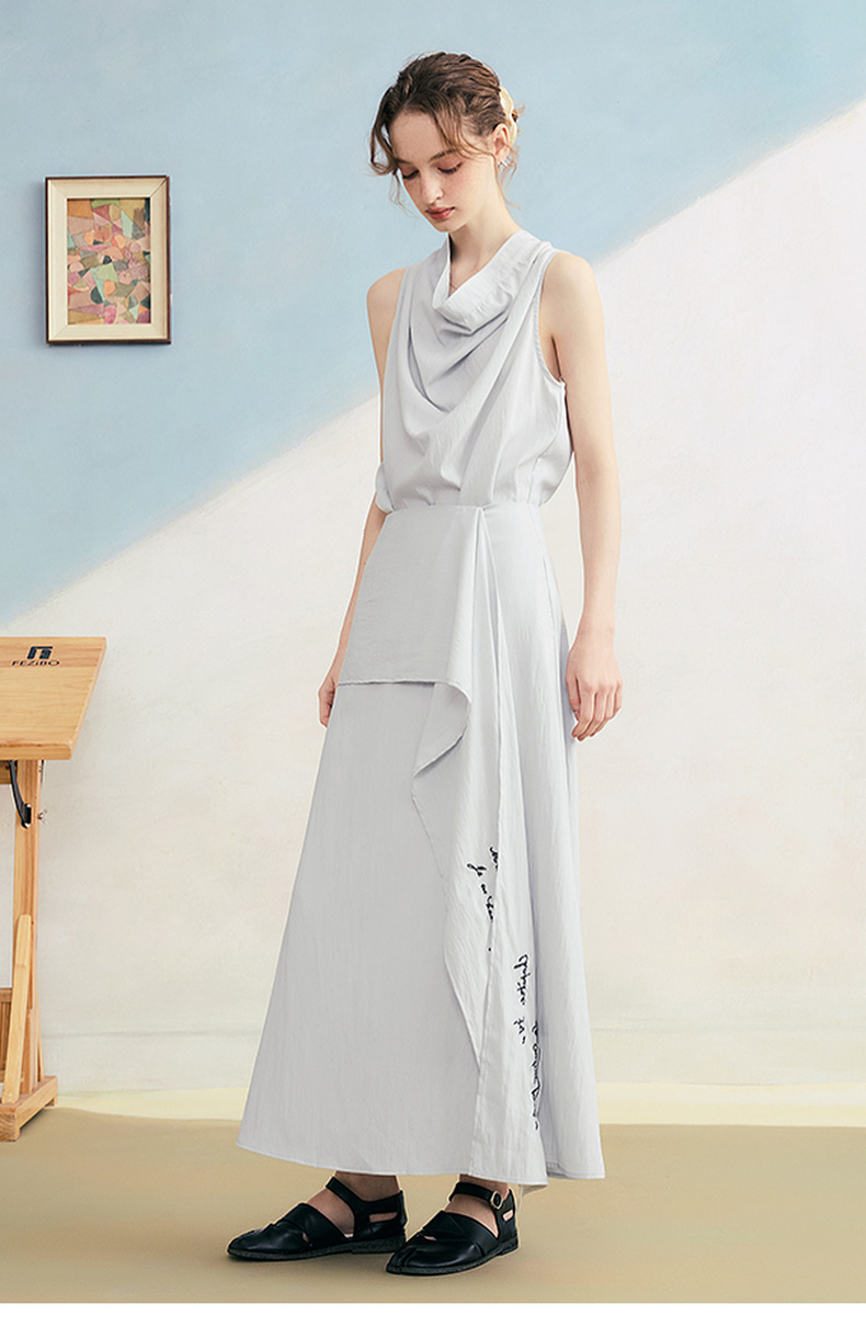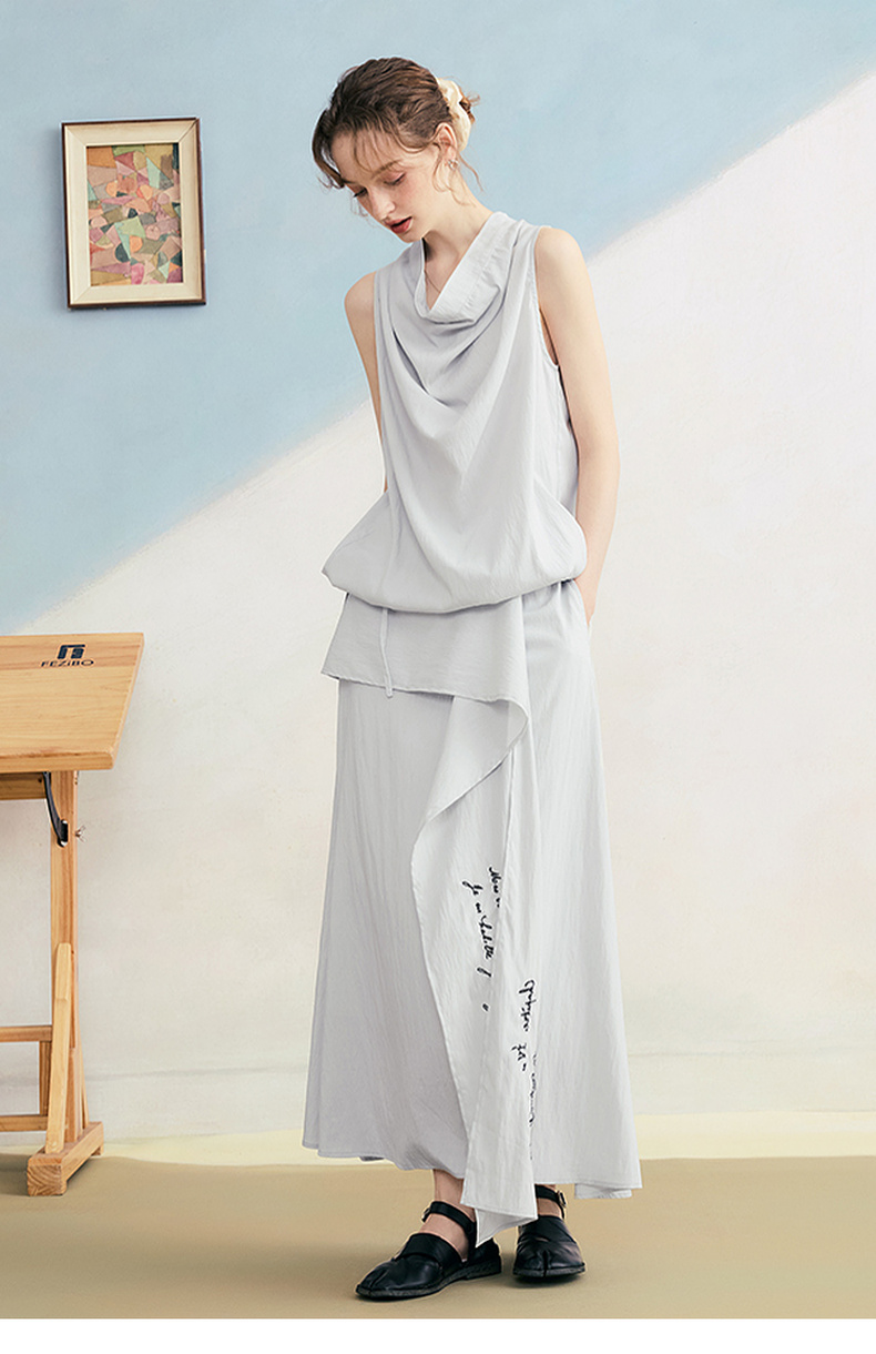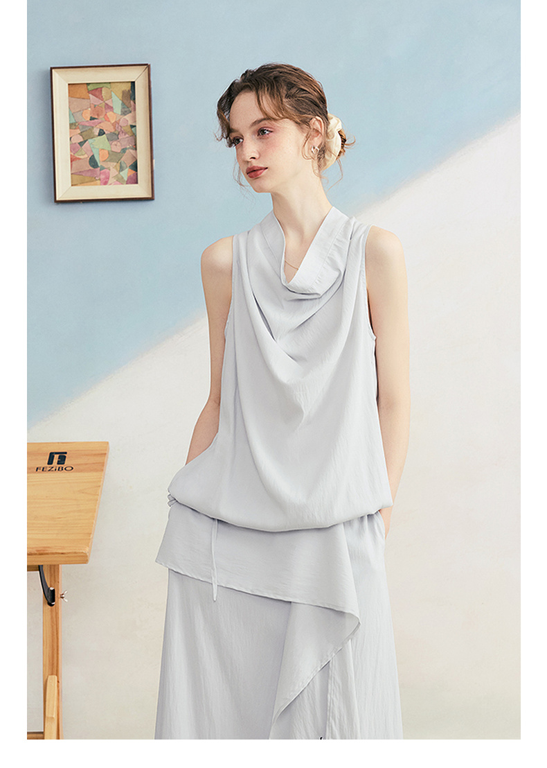 两三事 三维星河 2025夏季新款简约兜兜领下摆抽绳背心女中长款
