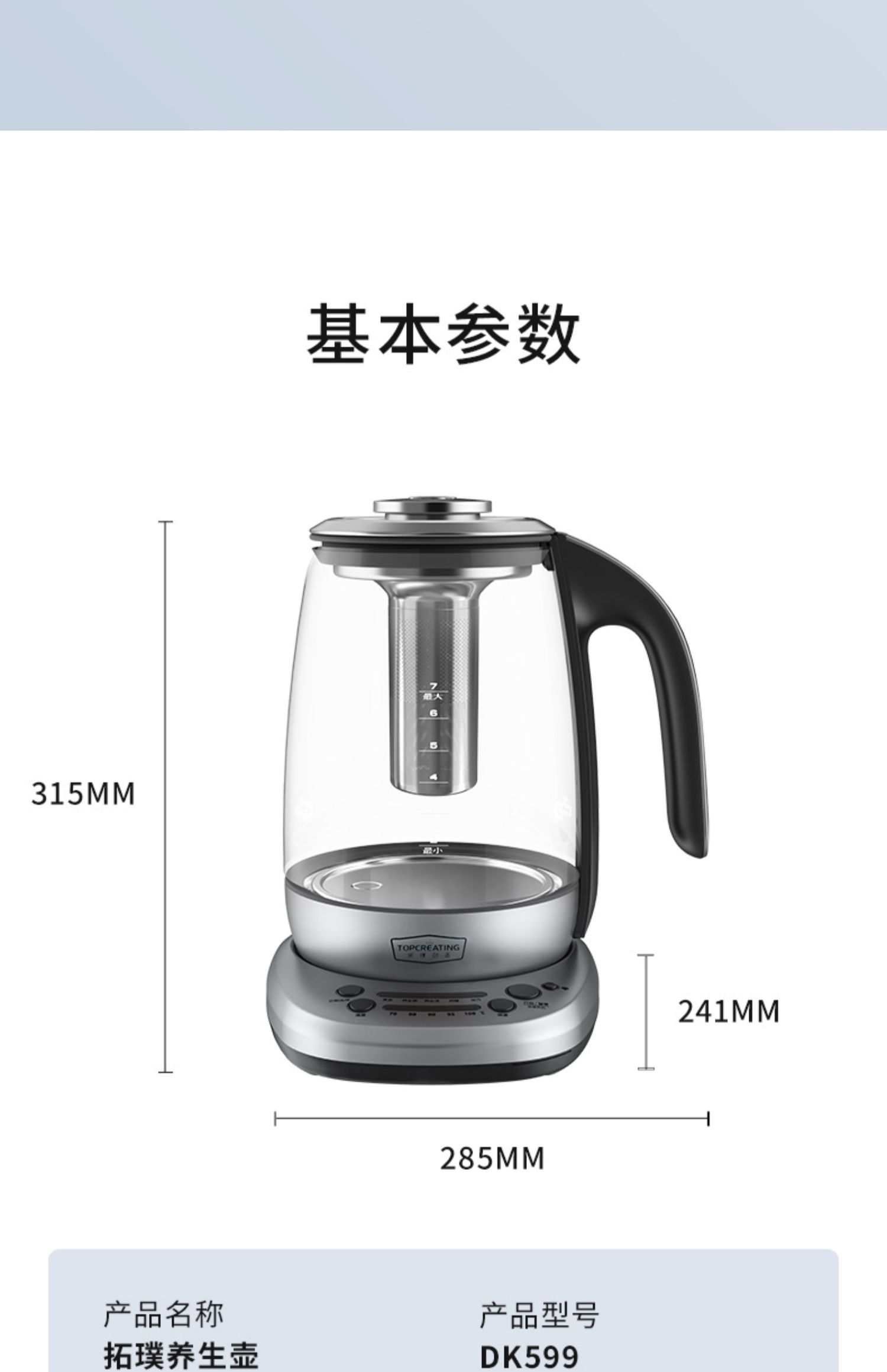 【德国进口玻璃煮茶壶】拓璞养生壶德国进口玻璃恒温保温全自动多功能家用电煮茶壶DK599