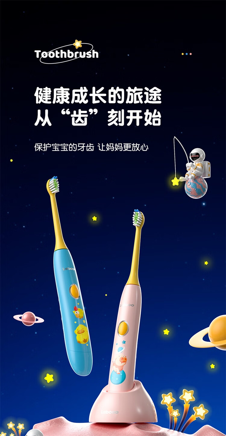 力博得儿童电动牙刷 抑菌柔软刷毛 科学刷牙引导 宝宝礼物 3-15岁适用 YOYO萌趣