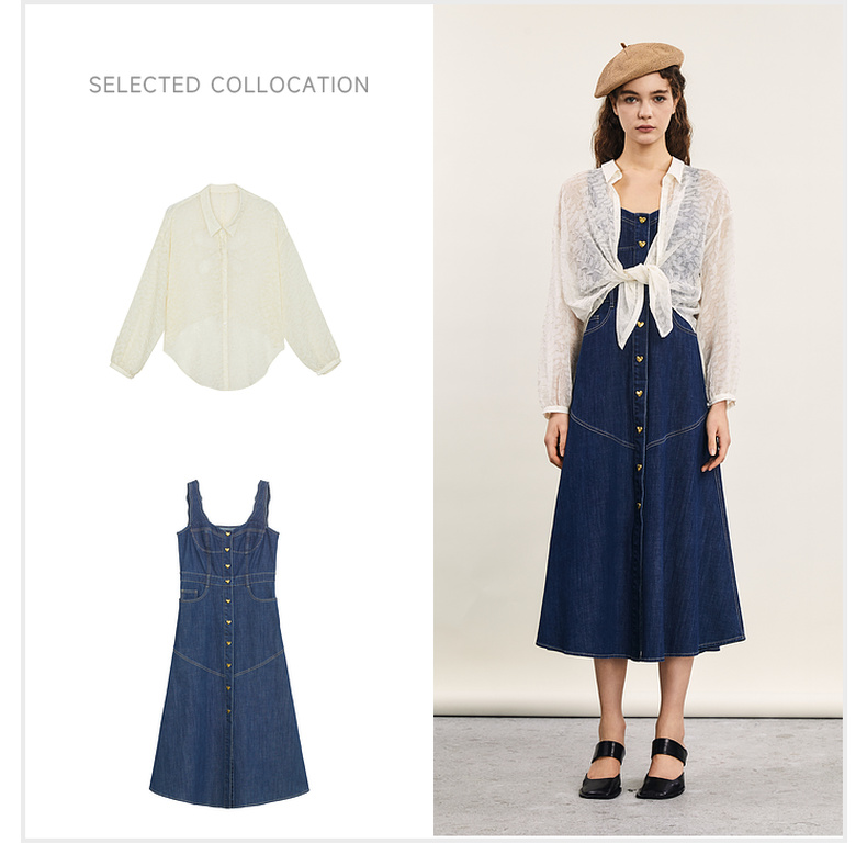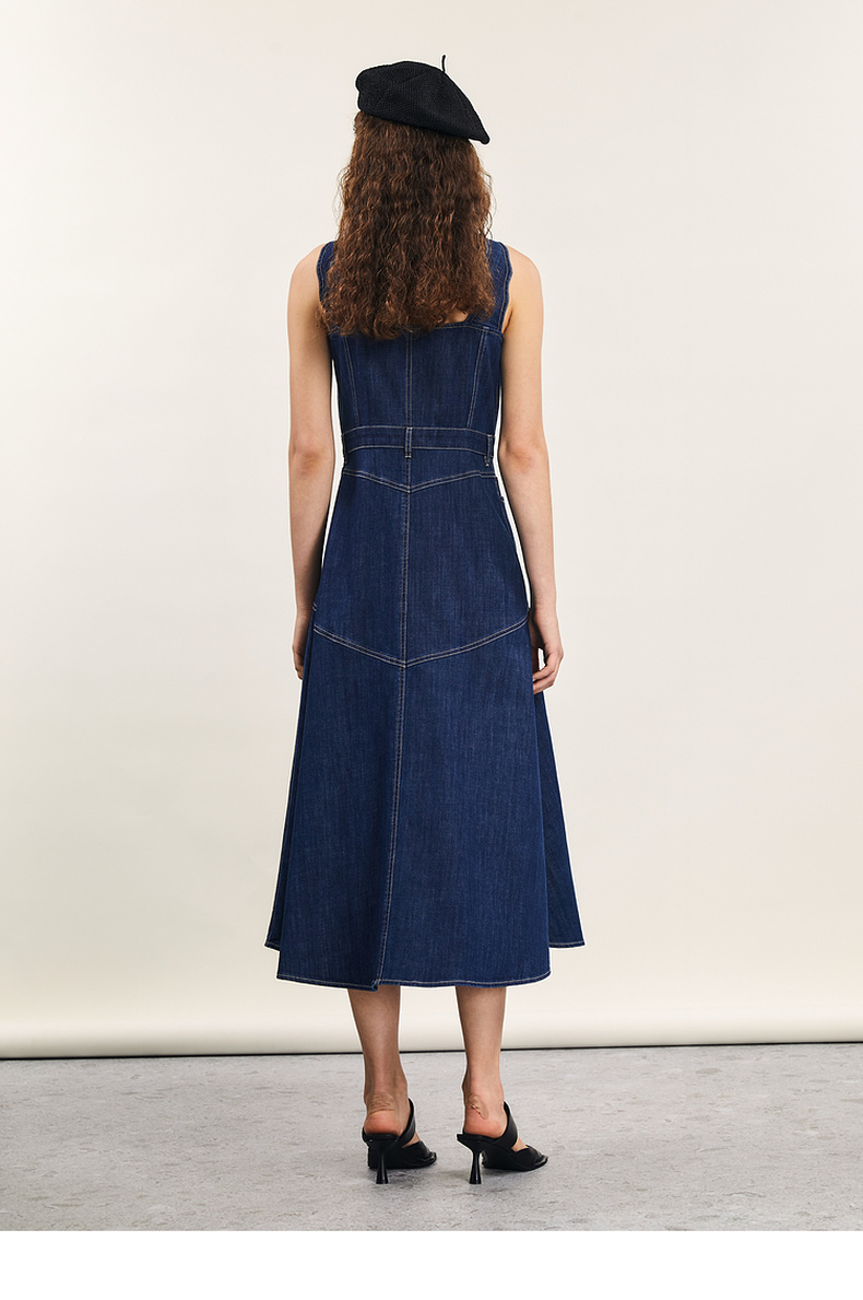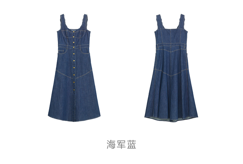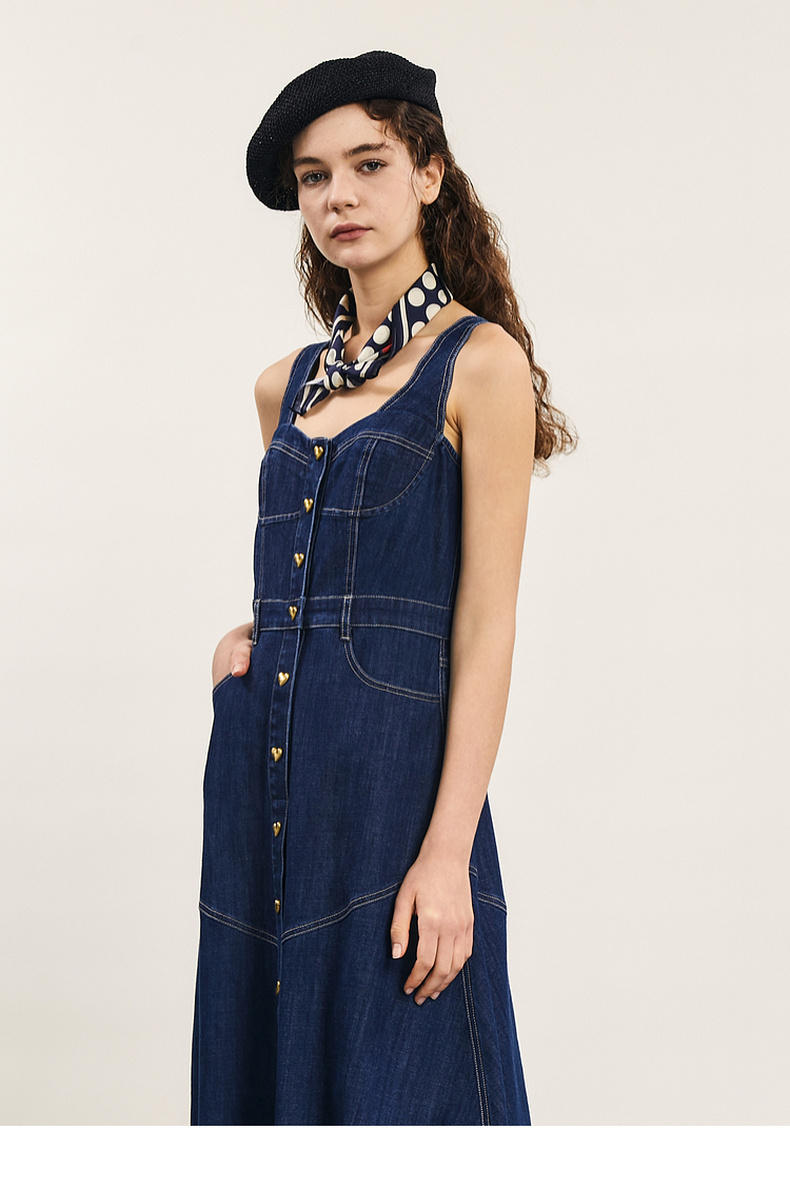 谜底牛仔吊带连衣裙2024年夏季新品复古风修身中长裙子242ML0515