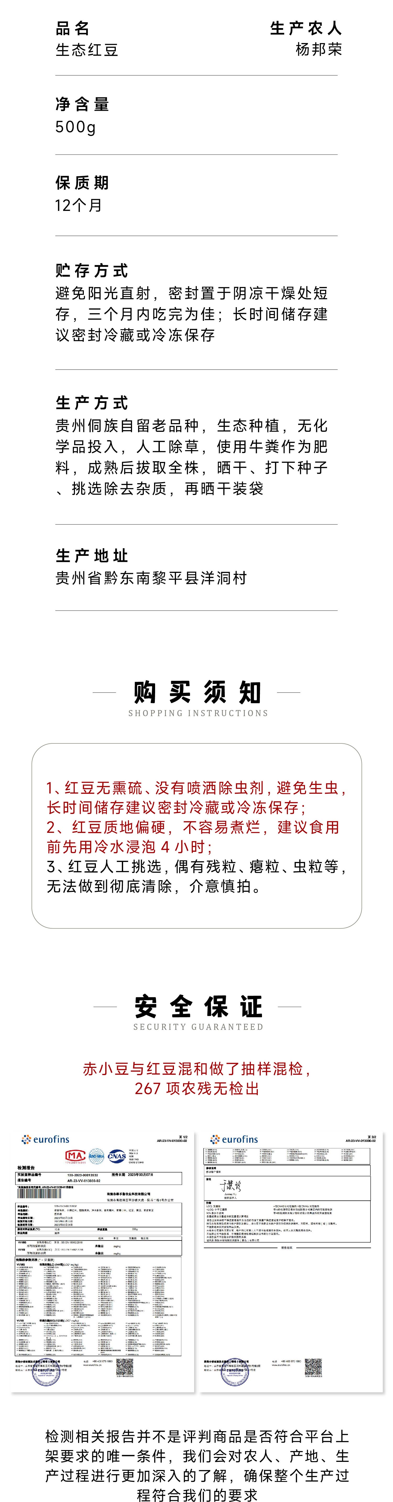 老品种生态红豆 500g/袋 | 合作农友生产,产自贵州侗族,生产者:杨邦荣 &【公平贸易农人定价】