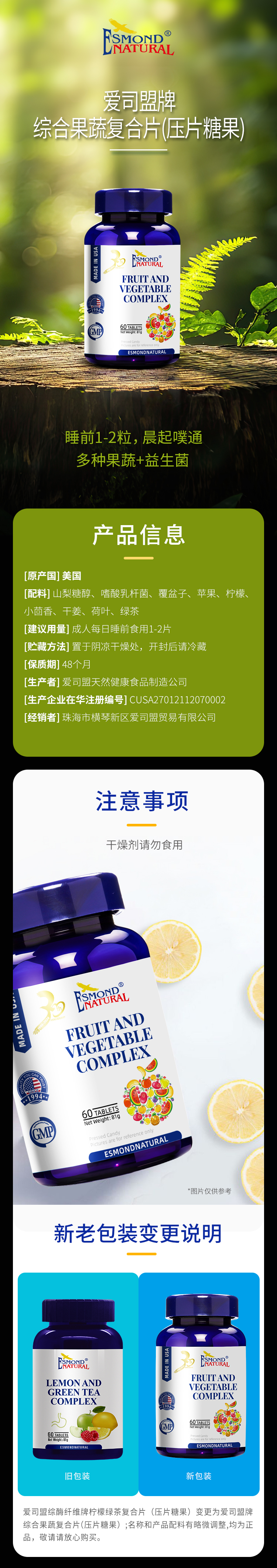 ESMOND 爱司盟 综合果蔬复合片茶复合片 60片/瓶