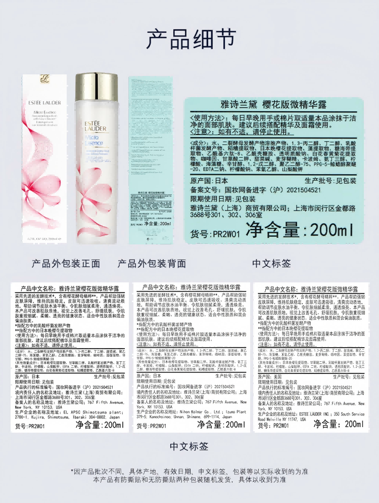 雅诗兰黛樱花微精华露 樱花水400ml精华液