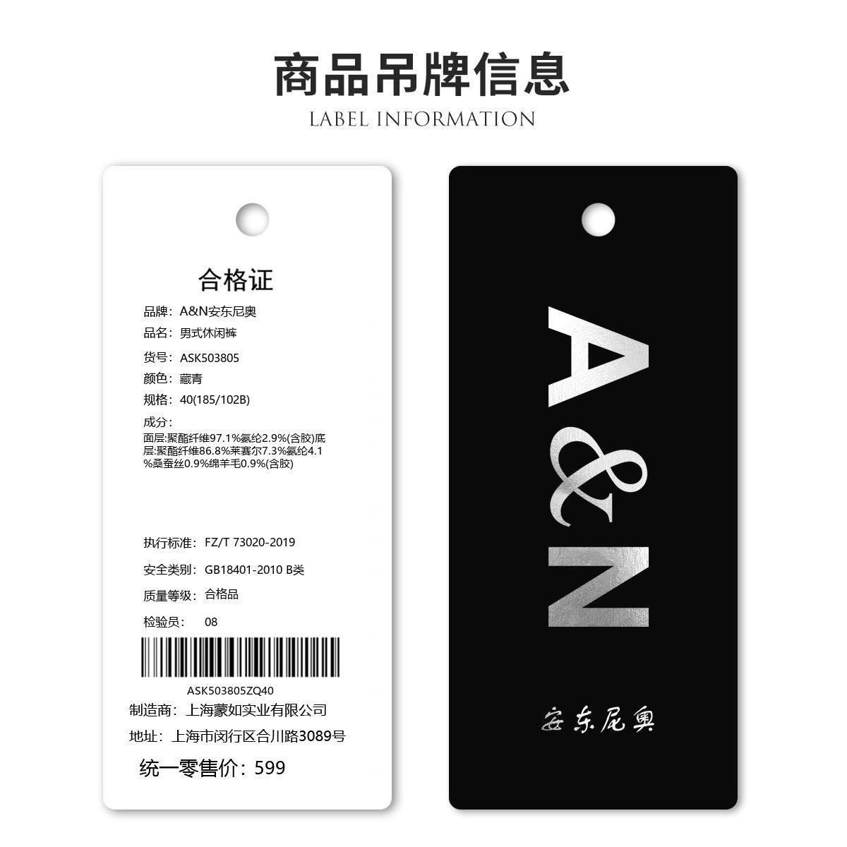 安东尼奥A&N 【含绵羊毛&桑蚕丝】秋季轻奢商务休闲中年男士直筒裤子6546497