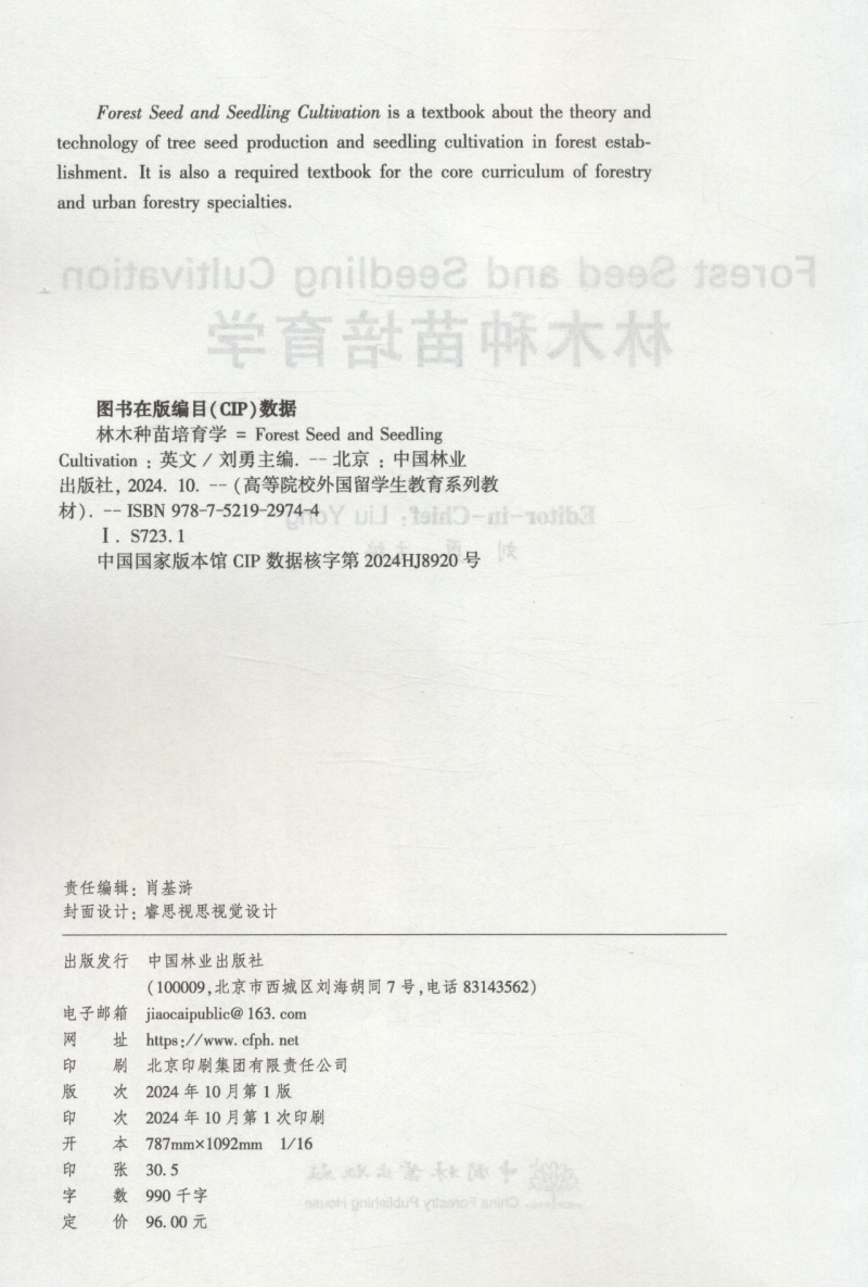E Forest Seed and Seedling Cultivation &2974 (林木种苗培育学(英文版))
